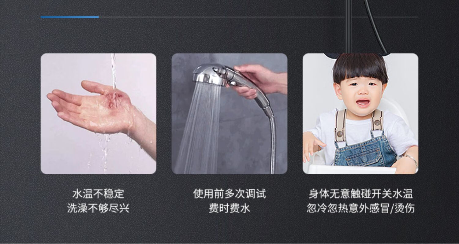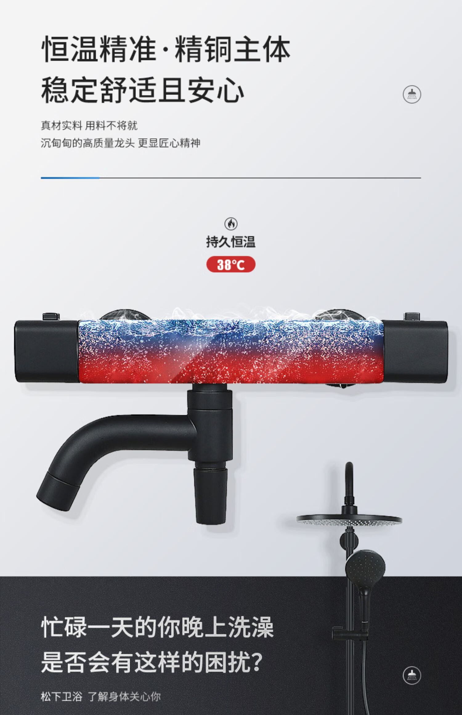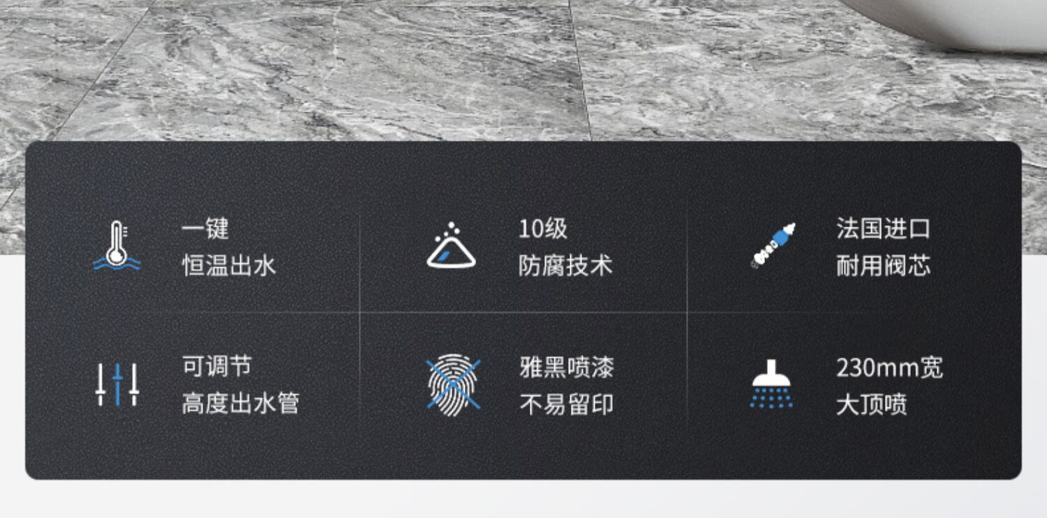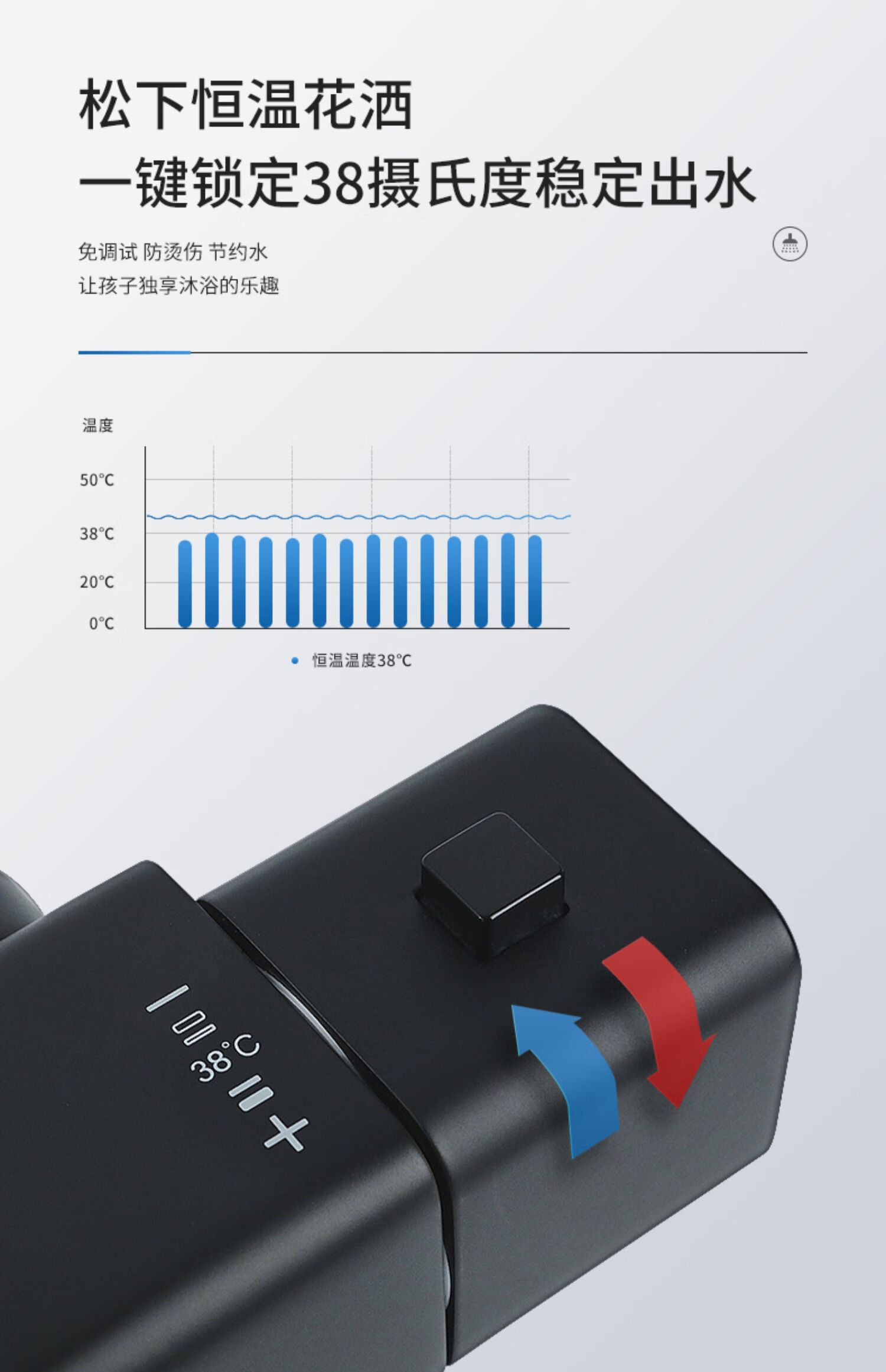 松下恒温花洒套装旋转可升降挂墙式淋浴器浴室家用超强增压191B 不包安装191B-雅黑【三功能恒温淋浴花洒套装】