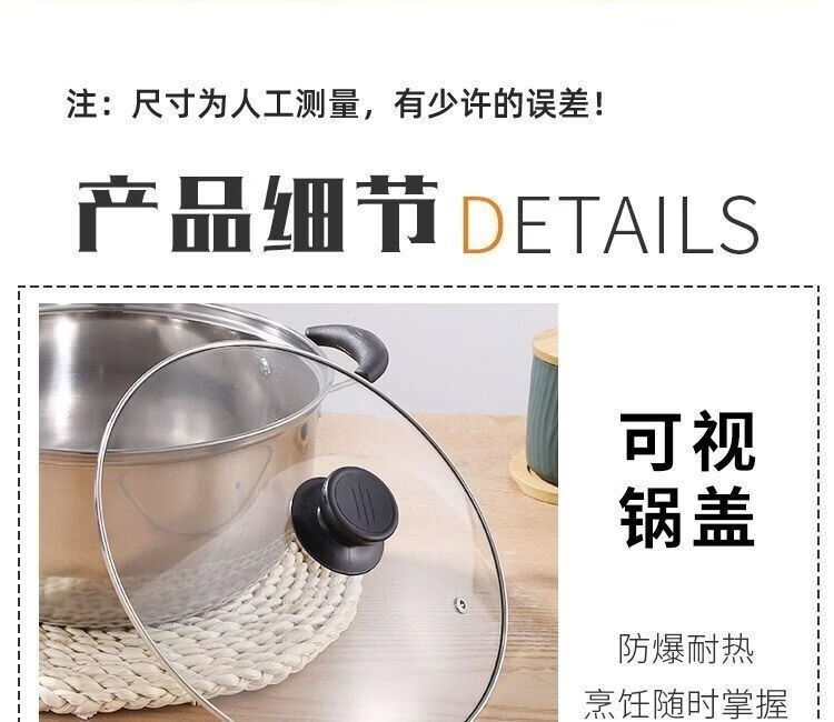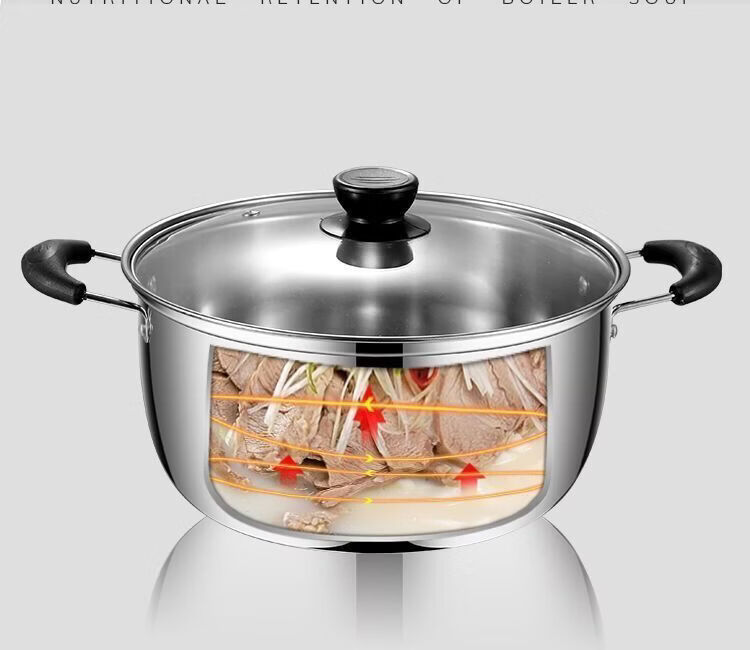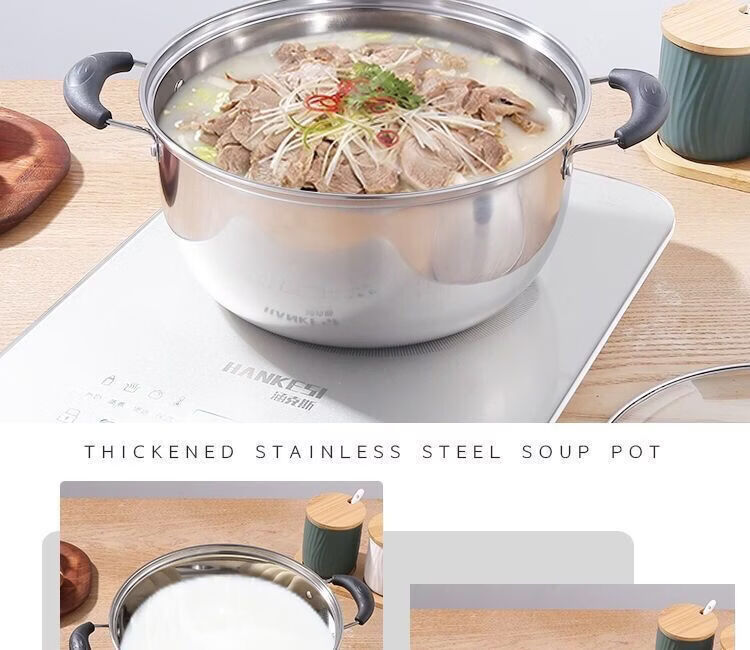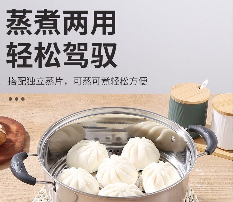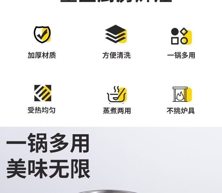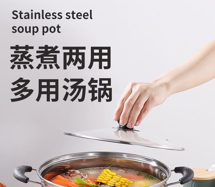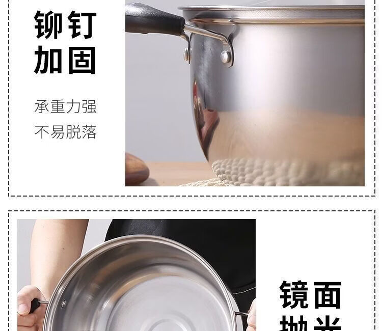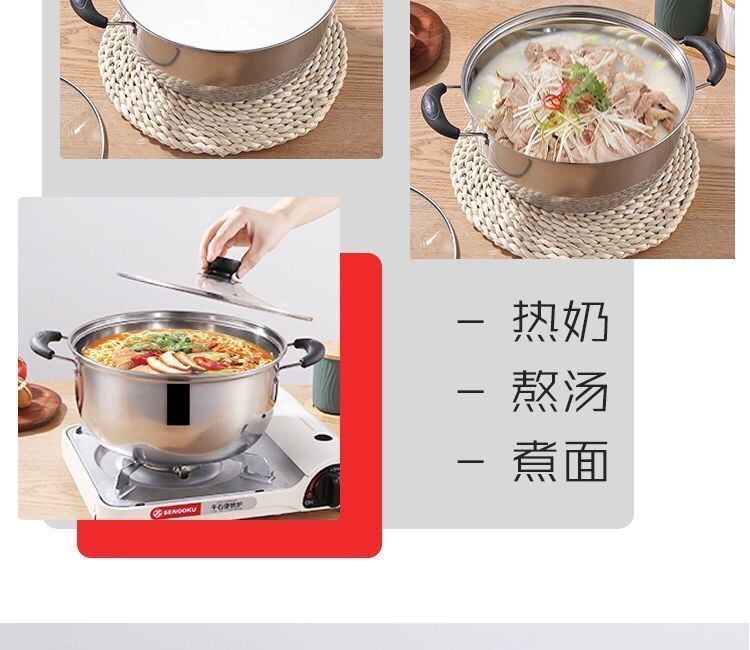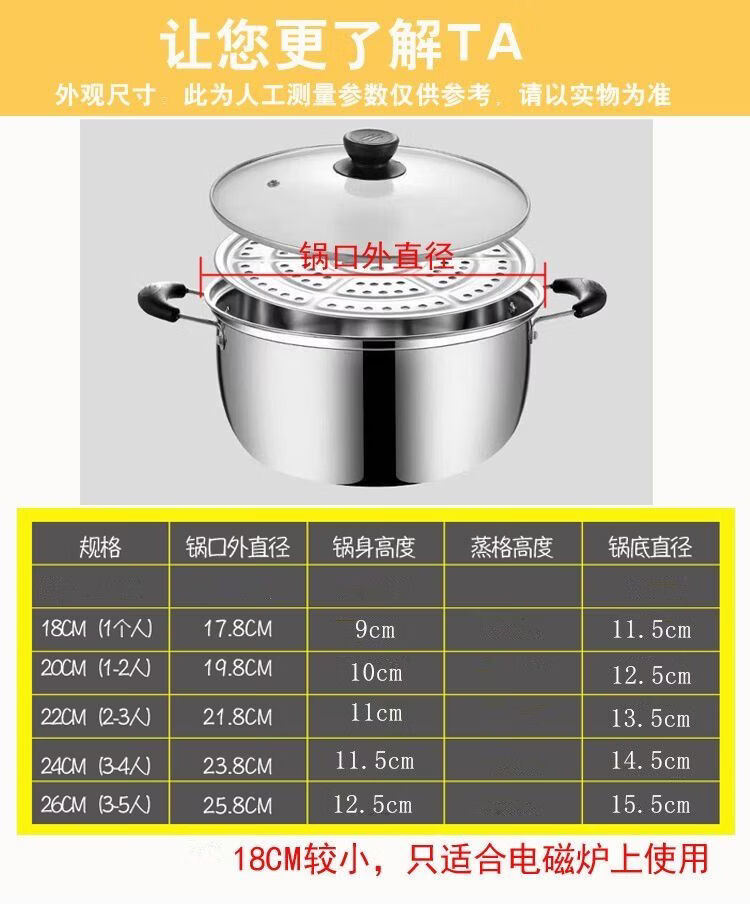 咏夏加厚不锈钢汤锅煲汤锅奶锅小火锅煤气炉电磁炉多功能锅具清仓露营 18CM加厚款(送蒸片) 0英寸
