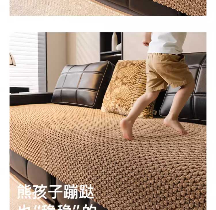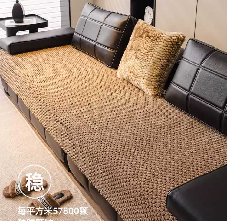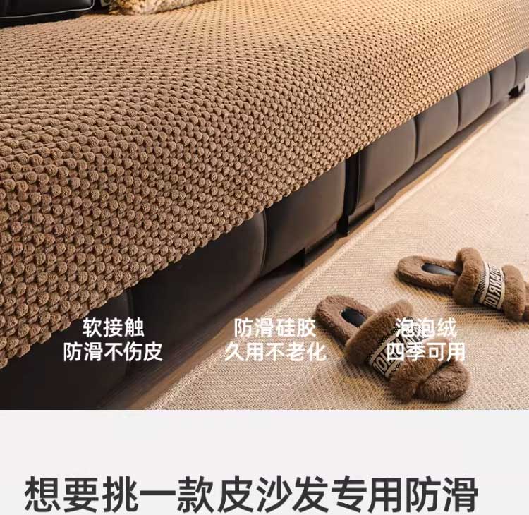 无印良品中式皮沙发坐垫固定防滑2025新款加厚保暖泡泡绒毛绒沙发坐垫秋冬 泡泡粒-深灰【劳伦斯专用防滑沙发垫】 70*210cm【适合长度180-210cm的沙发】