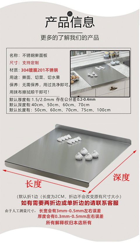 溥畔不锈钢砧板面板大号揉面案板加厚和面板擀面板厨房切菜板 定制改价链接联系客服再拍