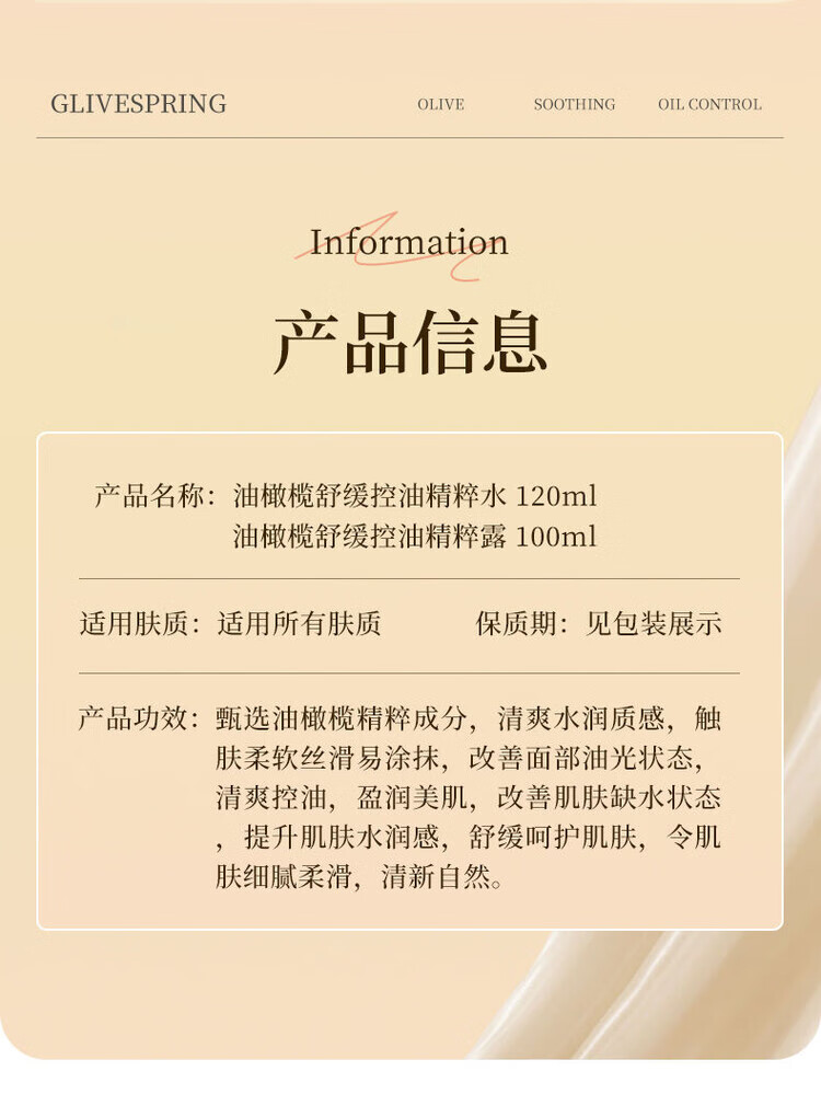油橄榄水乳护肤控油清爽保湿温和补水保湿提亮不刺激水润 精粹水