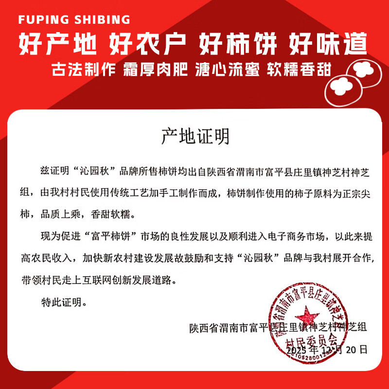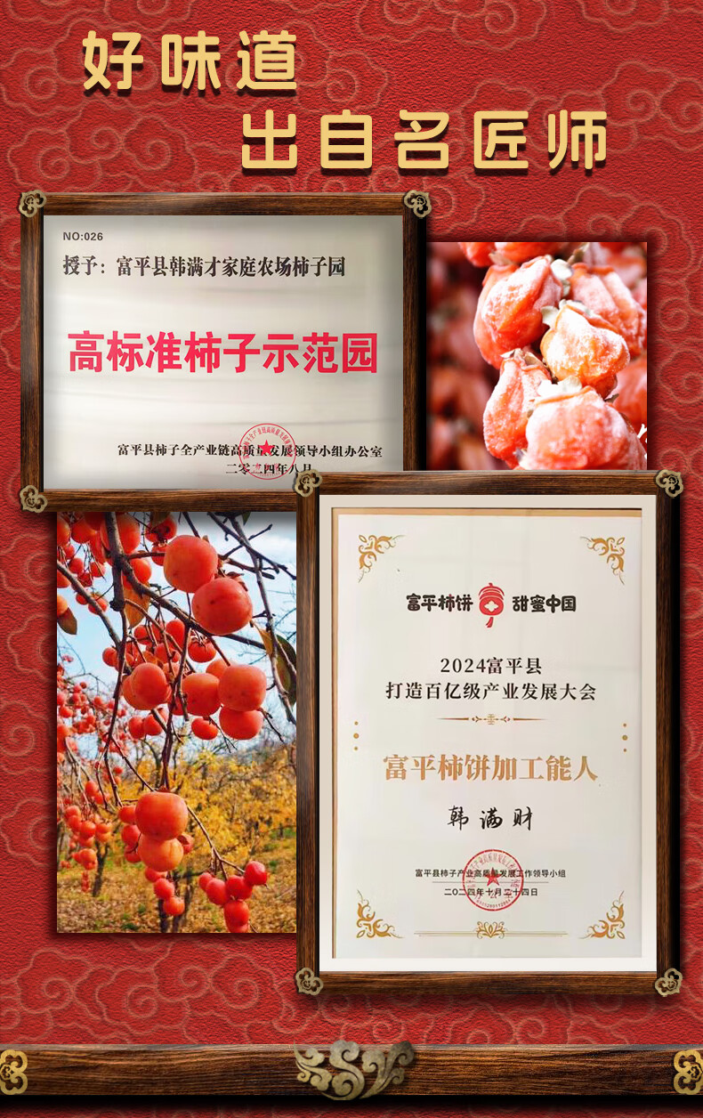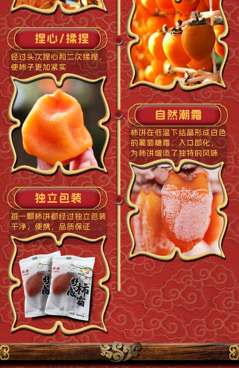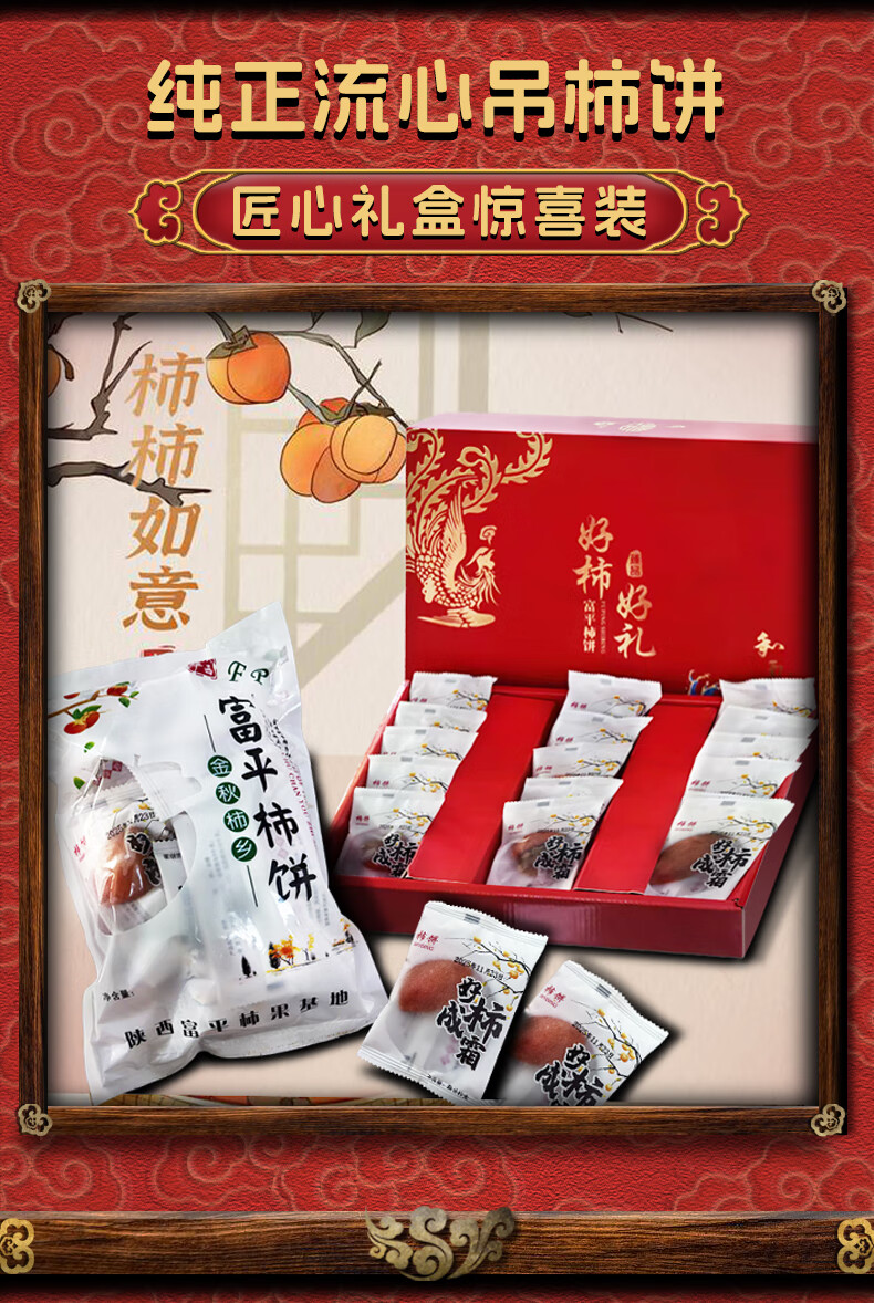 沁园秋陕西富平柿饼【25年新果】柿子饼霜降流心吊柿饼尖柿饼可年货礼盒 【独立袋装】富平柿饼6枚(单枚27g+)