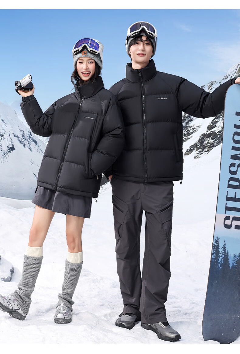 罗蒙【充绒高达200g】短款立领加厚羽绒服男冬季中青年保暖宽松面包服 5Y010806Y黑色 【立领高充绒】 L 175 【建议120-135斤】