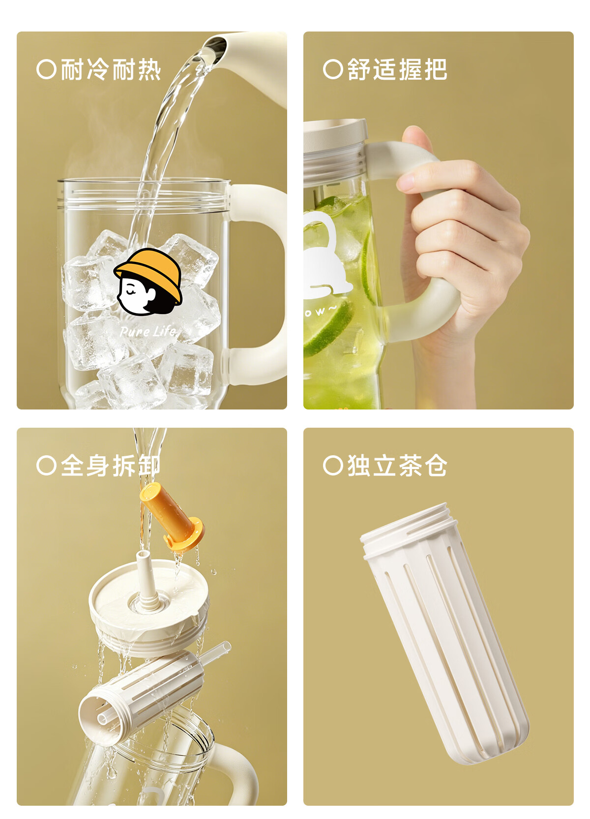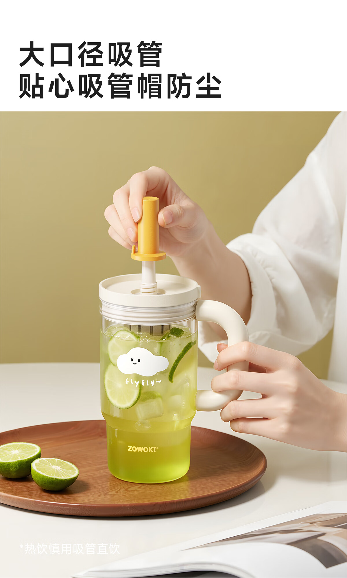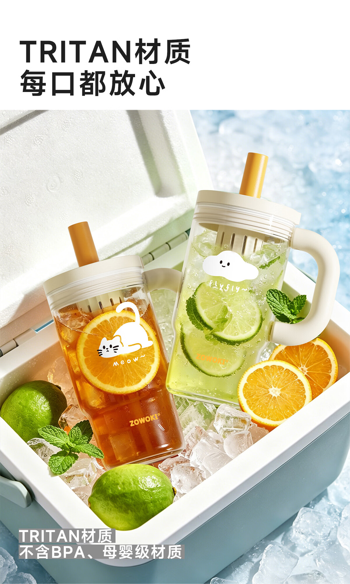造物集塑料冰霸杯巨无霸吸管杯女士2026新款高颜值水杯茶水分离杯子 夏日布丁-氧气云【母婴级Tritan】