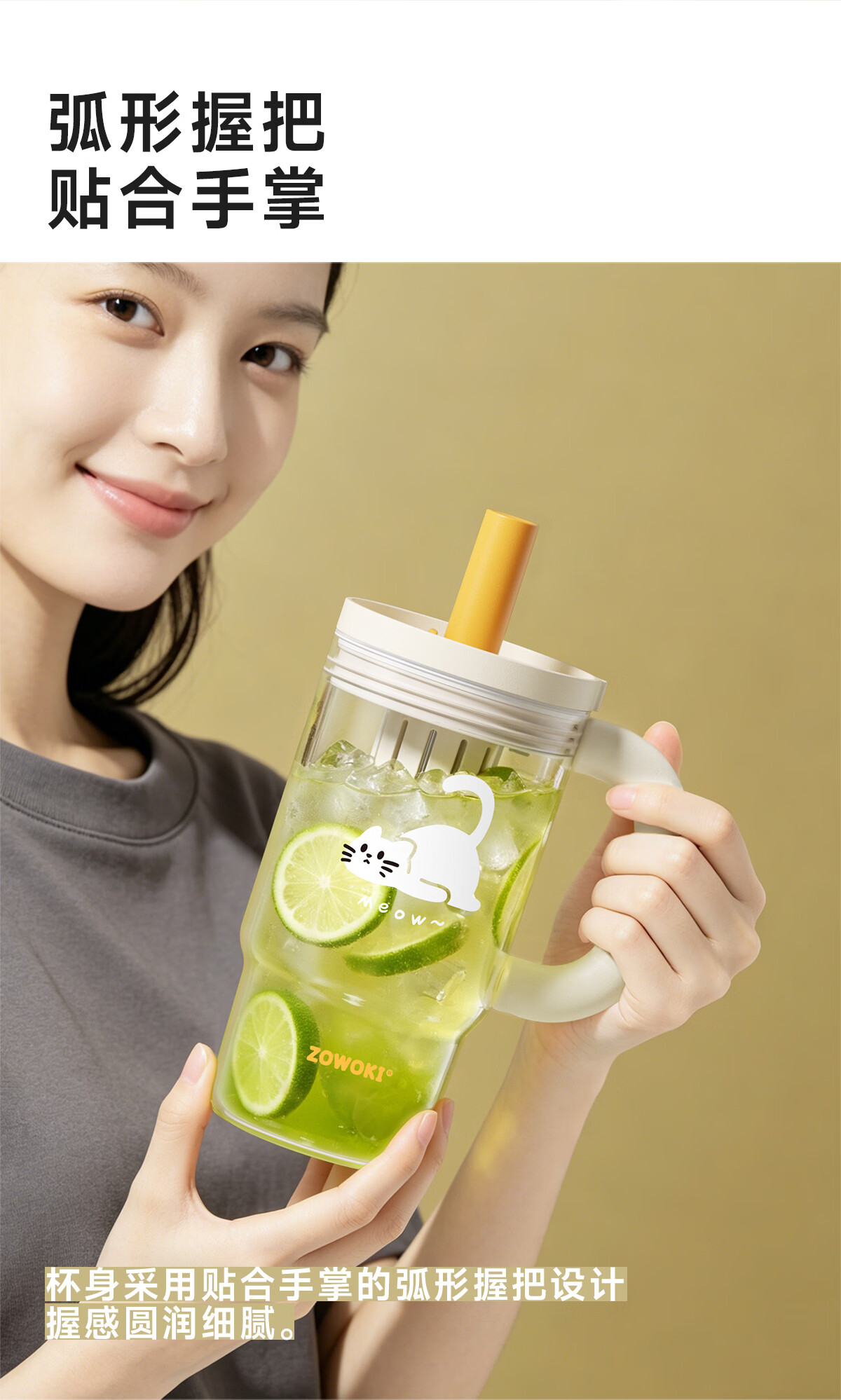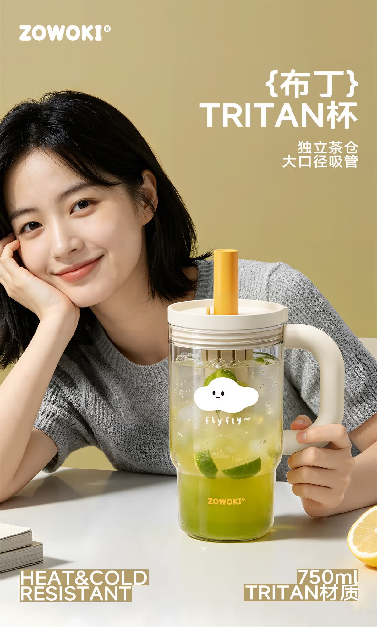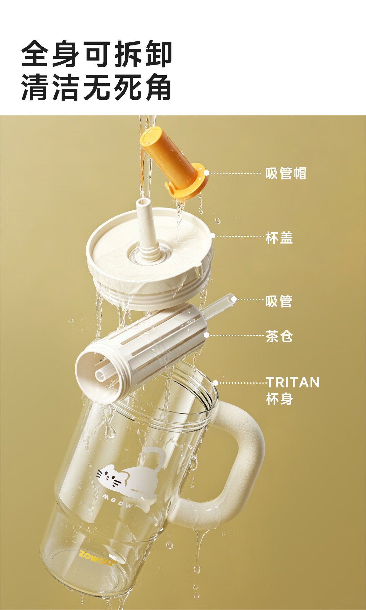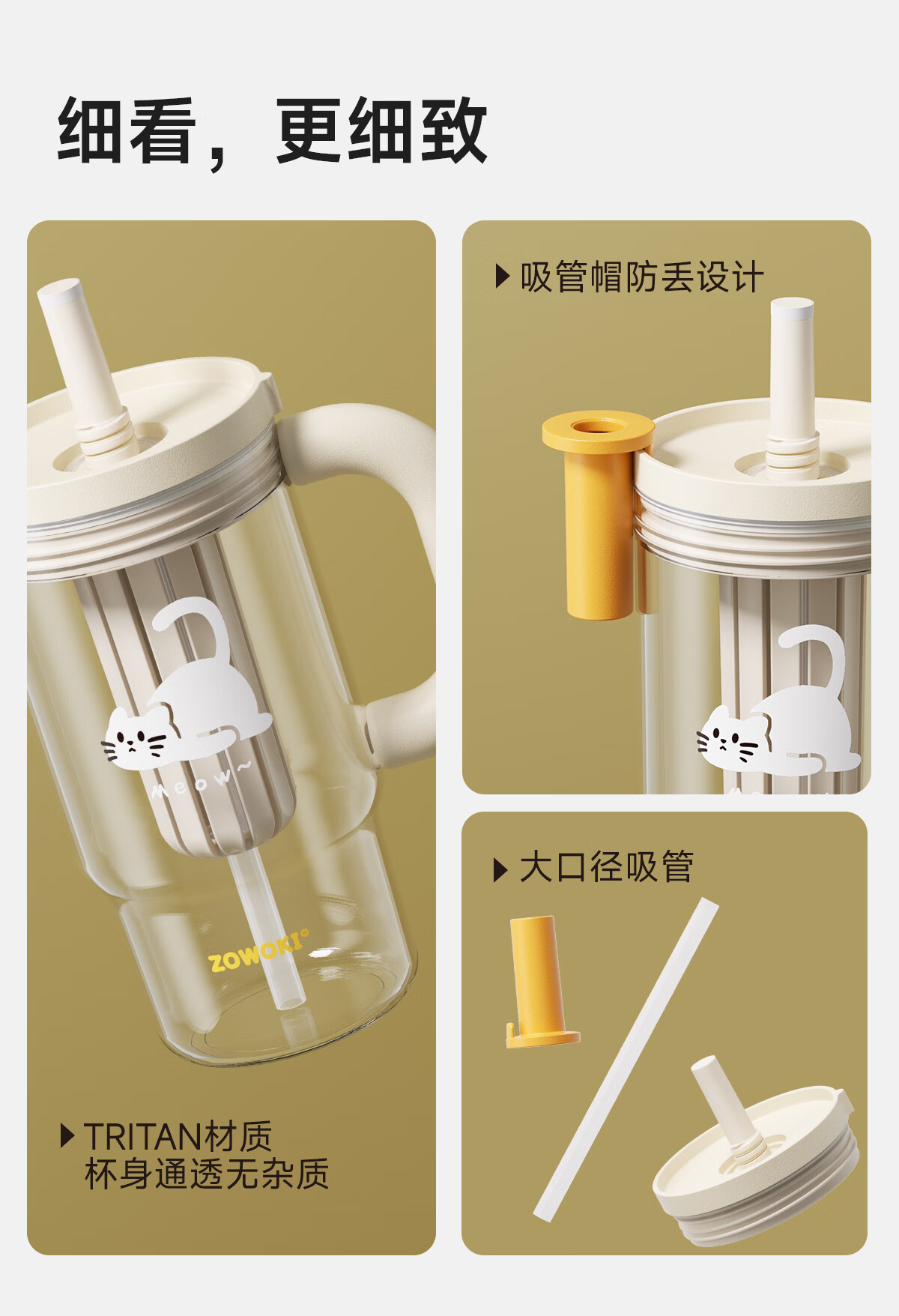 造物集塑料冰霸杯巨无霸吸管杯女士2026新款高颜值水杯茶水分离杯子 夏日布丁-氧气云【母婴级Tritan】