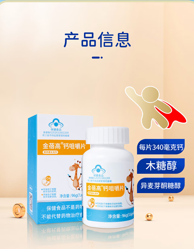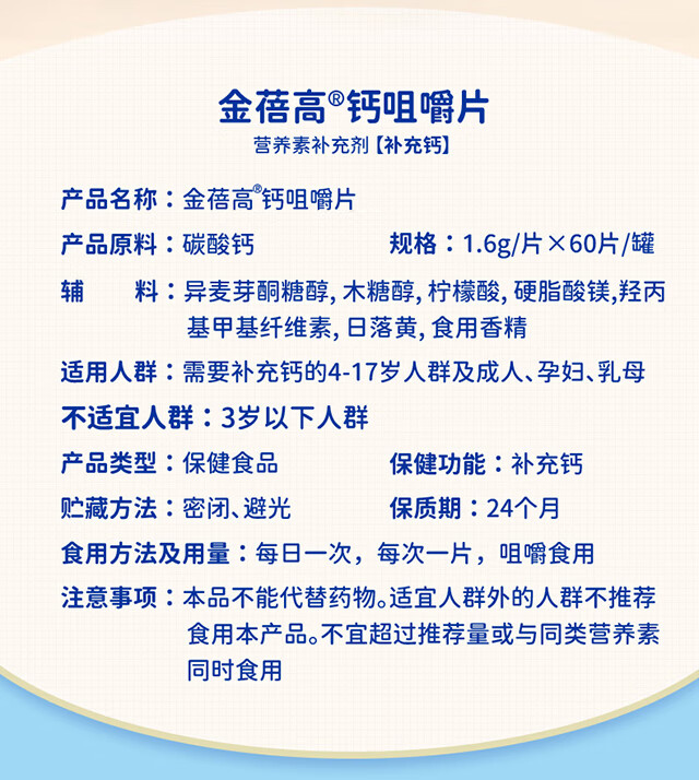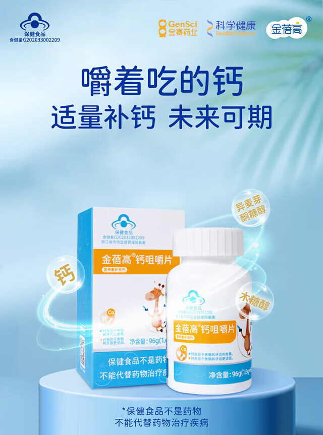 金蓓高钙咀嚼片维D蓝帽保健食品哈密瓜味60片 【2盒装】钙咀嚼片 60粒*2瓶