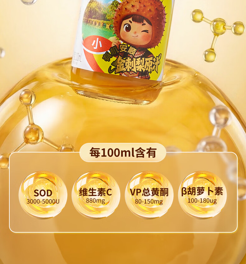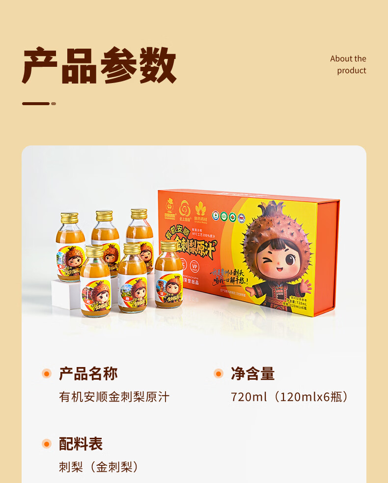 云上蔷薇小刺头金刺梨100%原汁原浆原液贵州富含VC果汁饮品120ml*6瓶 小刺头限量包装120ml*6瓶【店长主推】