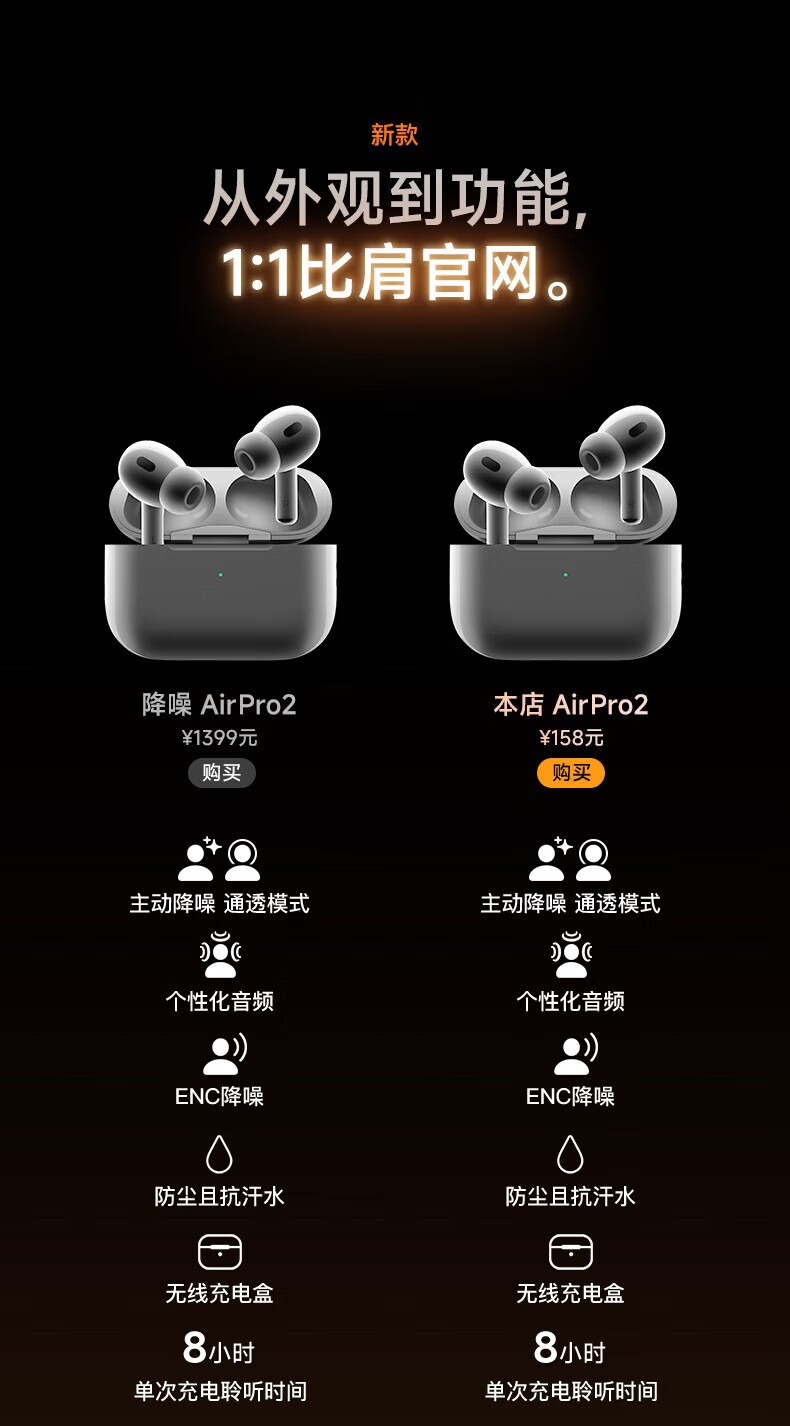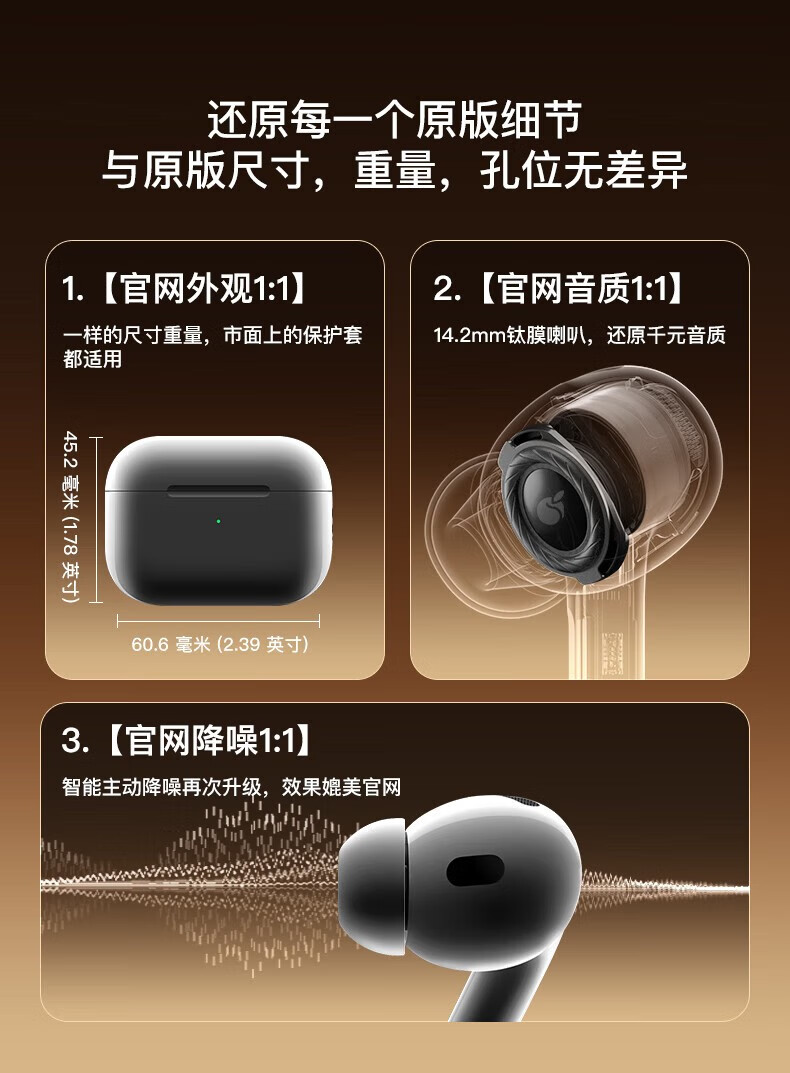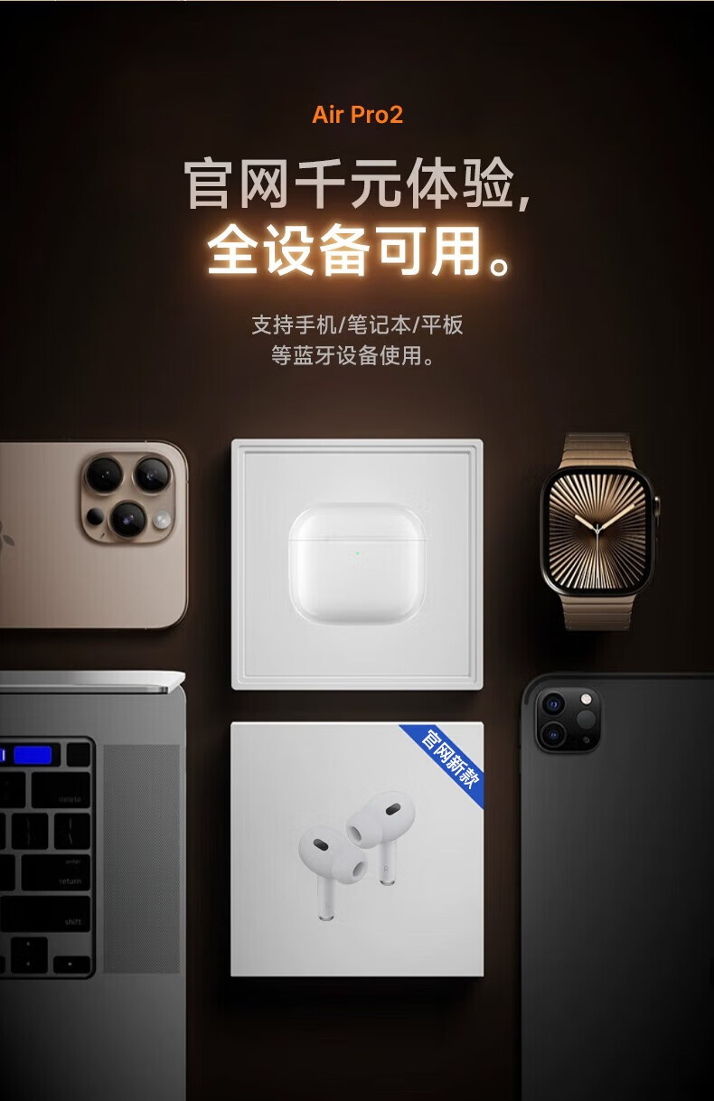 【原装正品pro2】华强北2025新款 顶配款无线适配苹果蓝牙耳机 iphone16手机15无线入耳式 2025新款 ANC主动降噪+电量显示 出口俄罗斯100W
