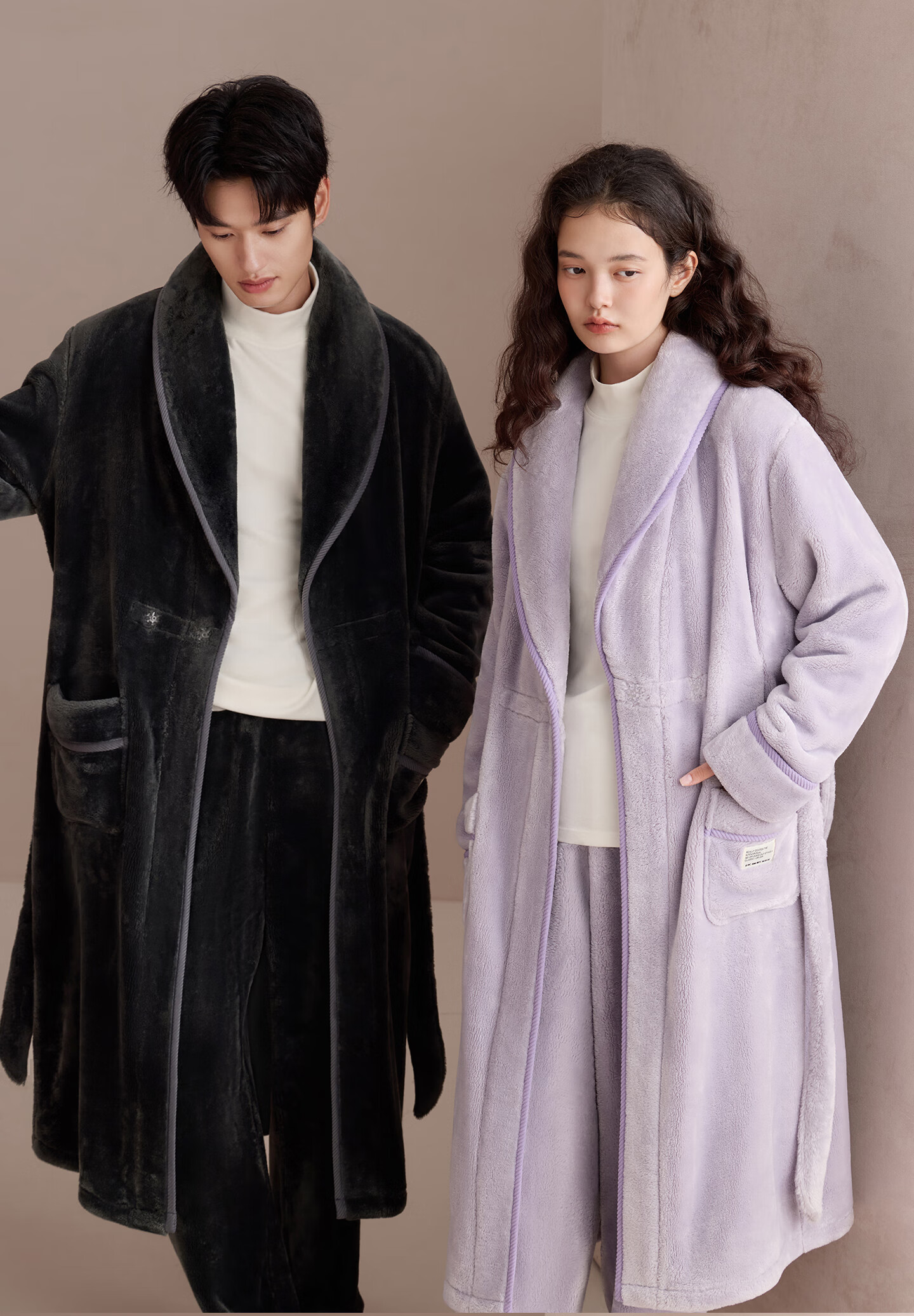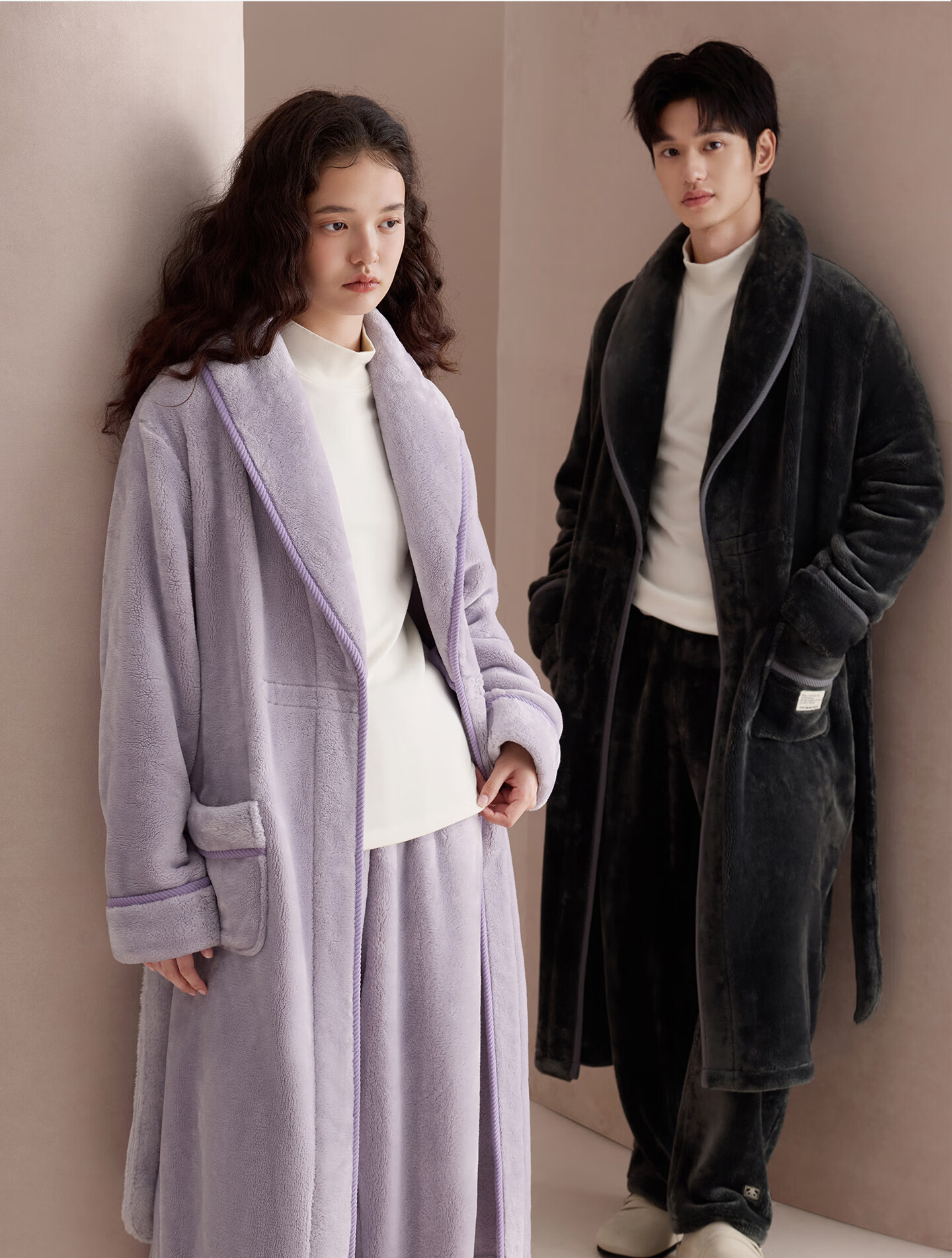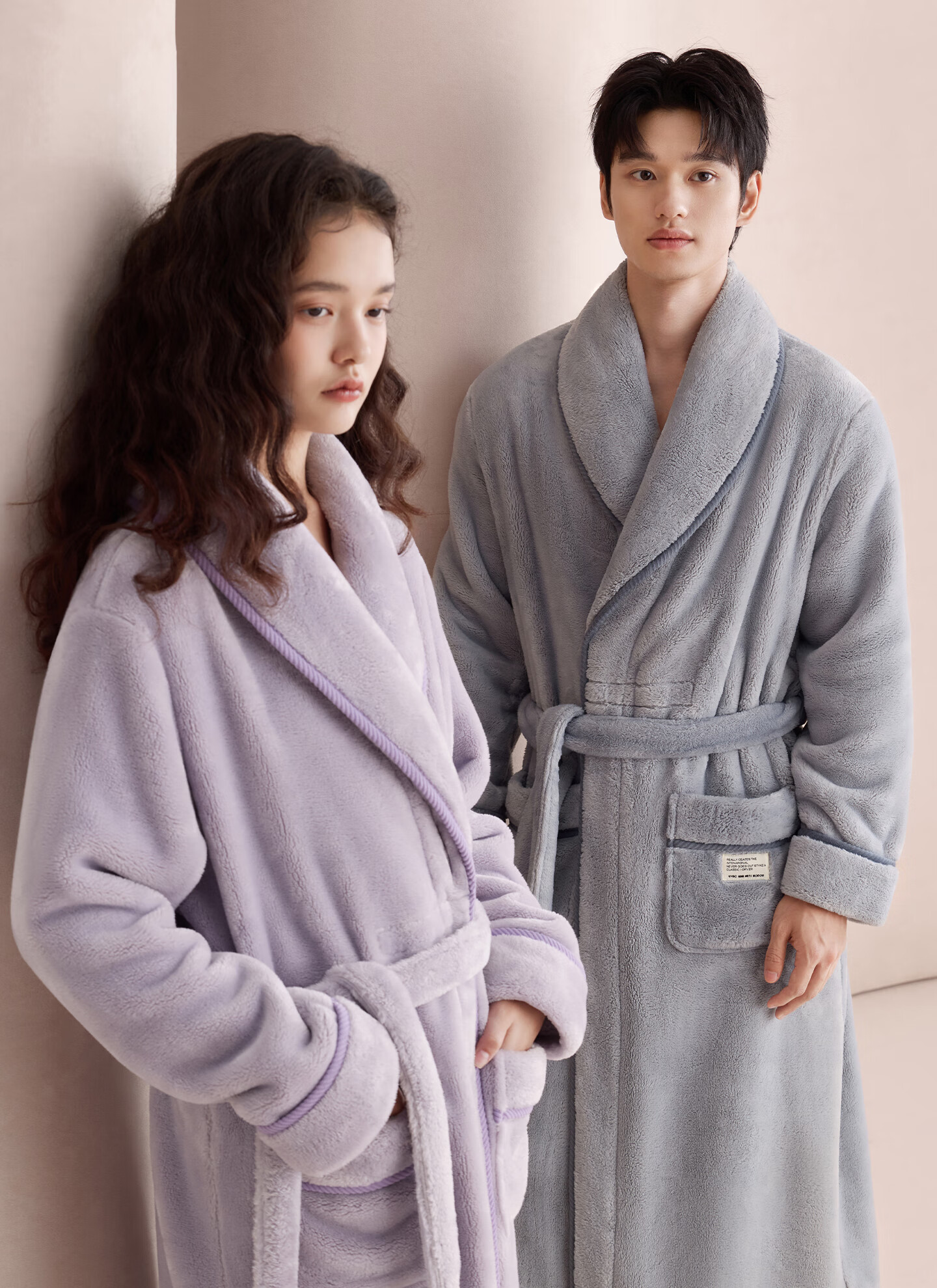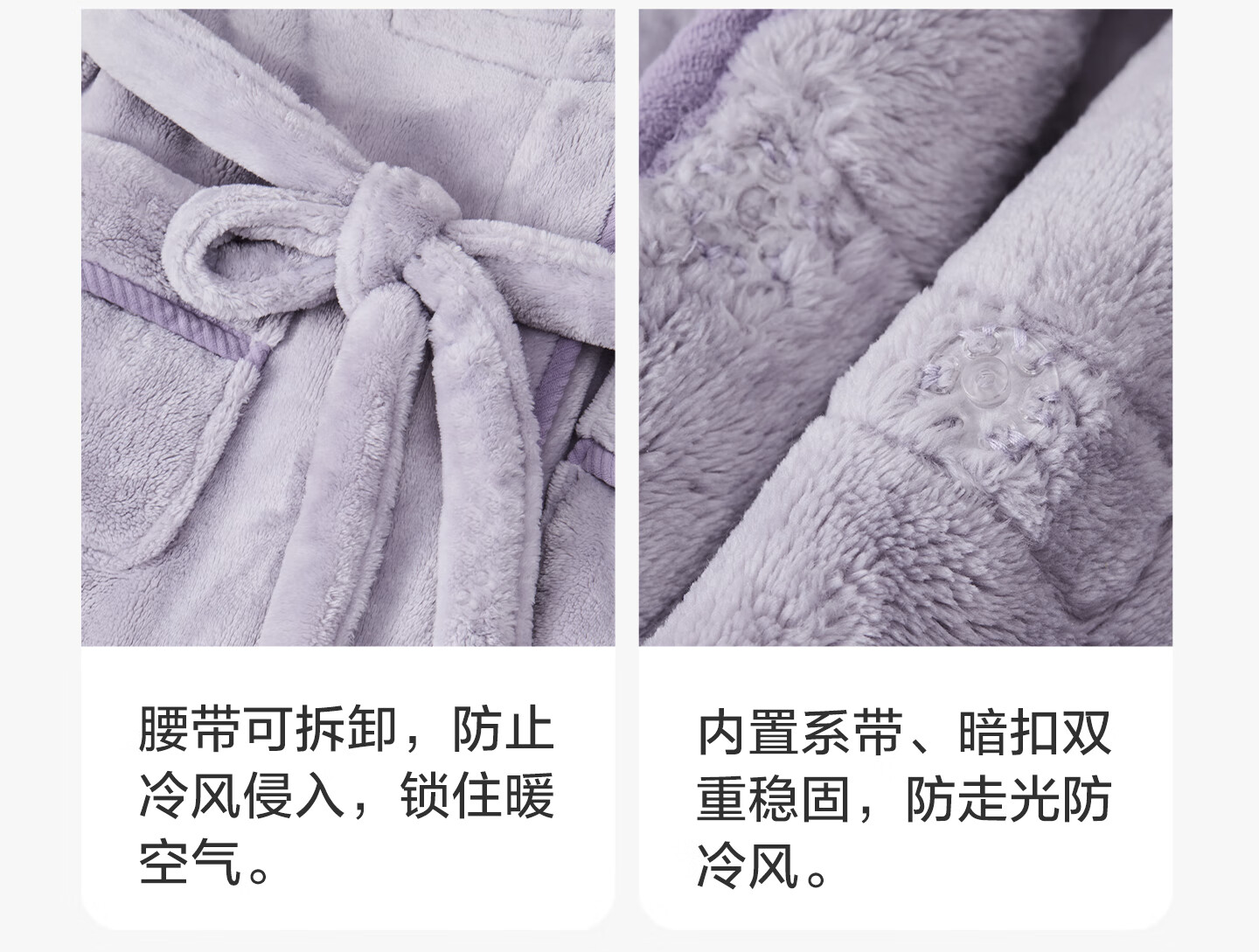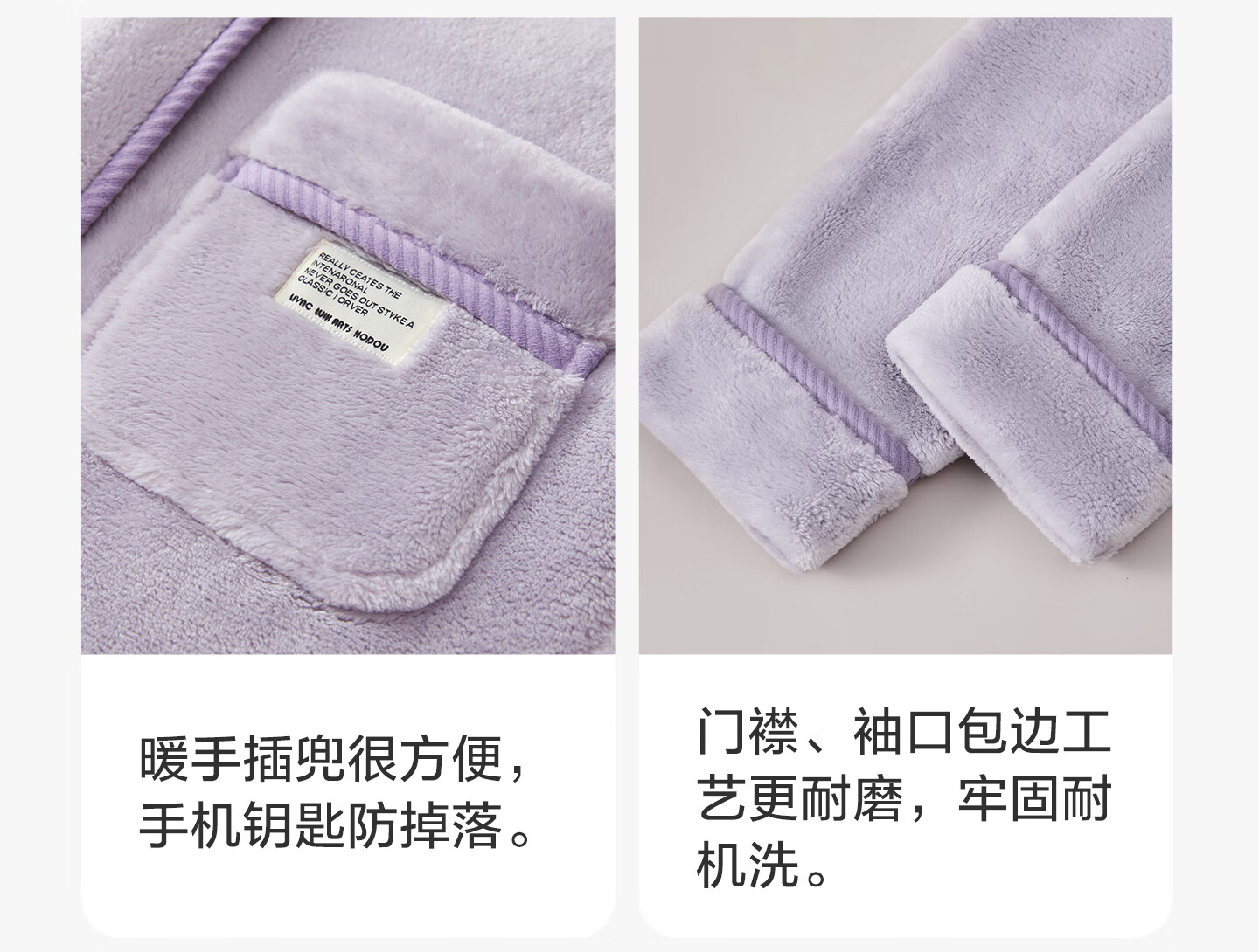 红豆(Hodo)情侣抗静电睡袍女珊瑚绒长款睡衣睡裤加厚法兰绒保暖居家服浴袍男 女士迷雾紫 M (160) 女士