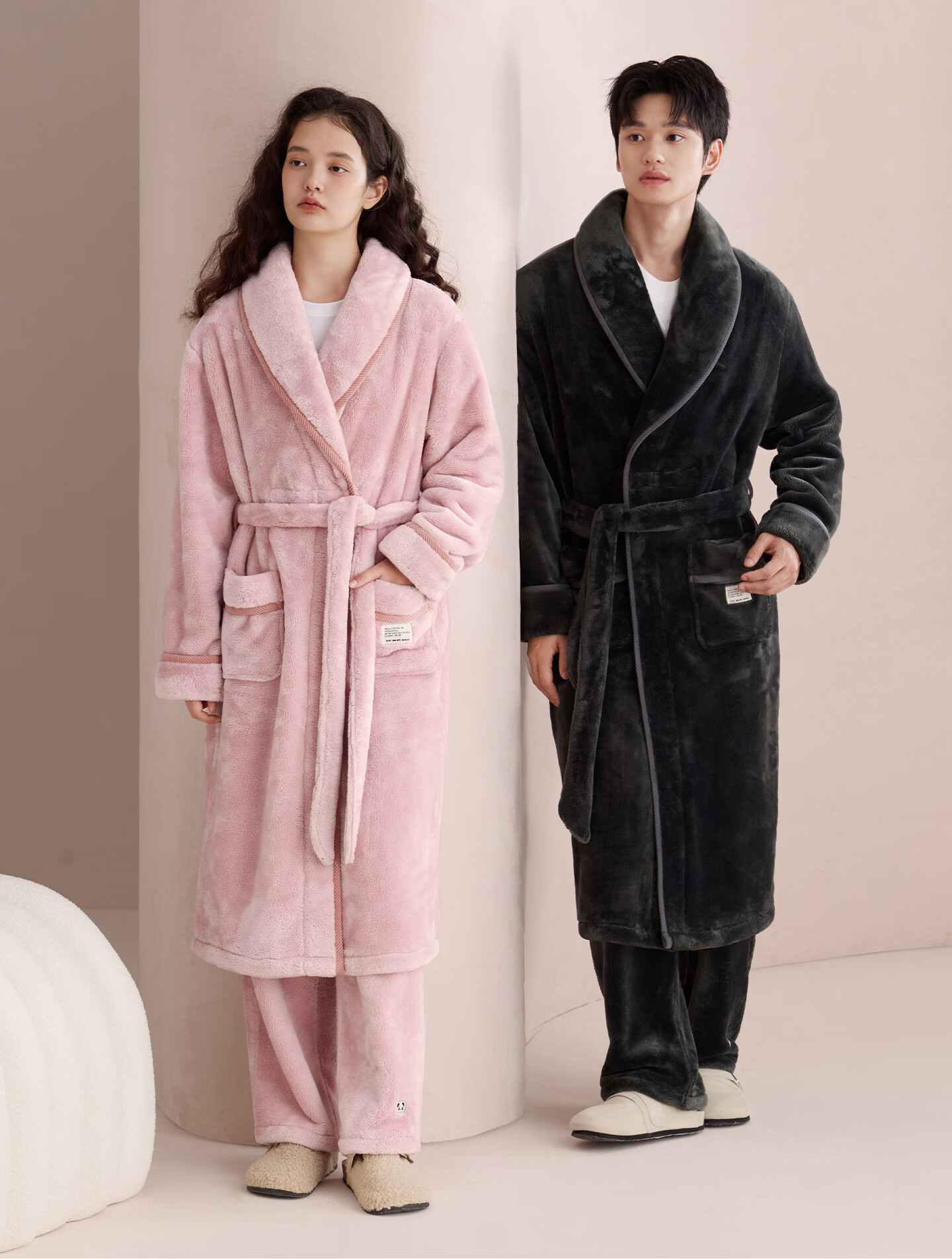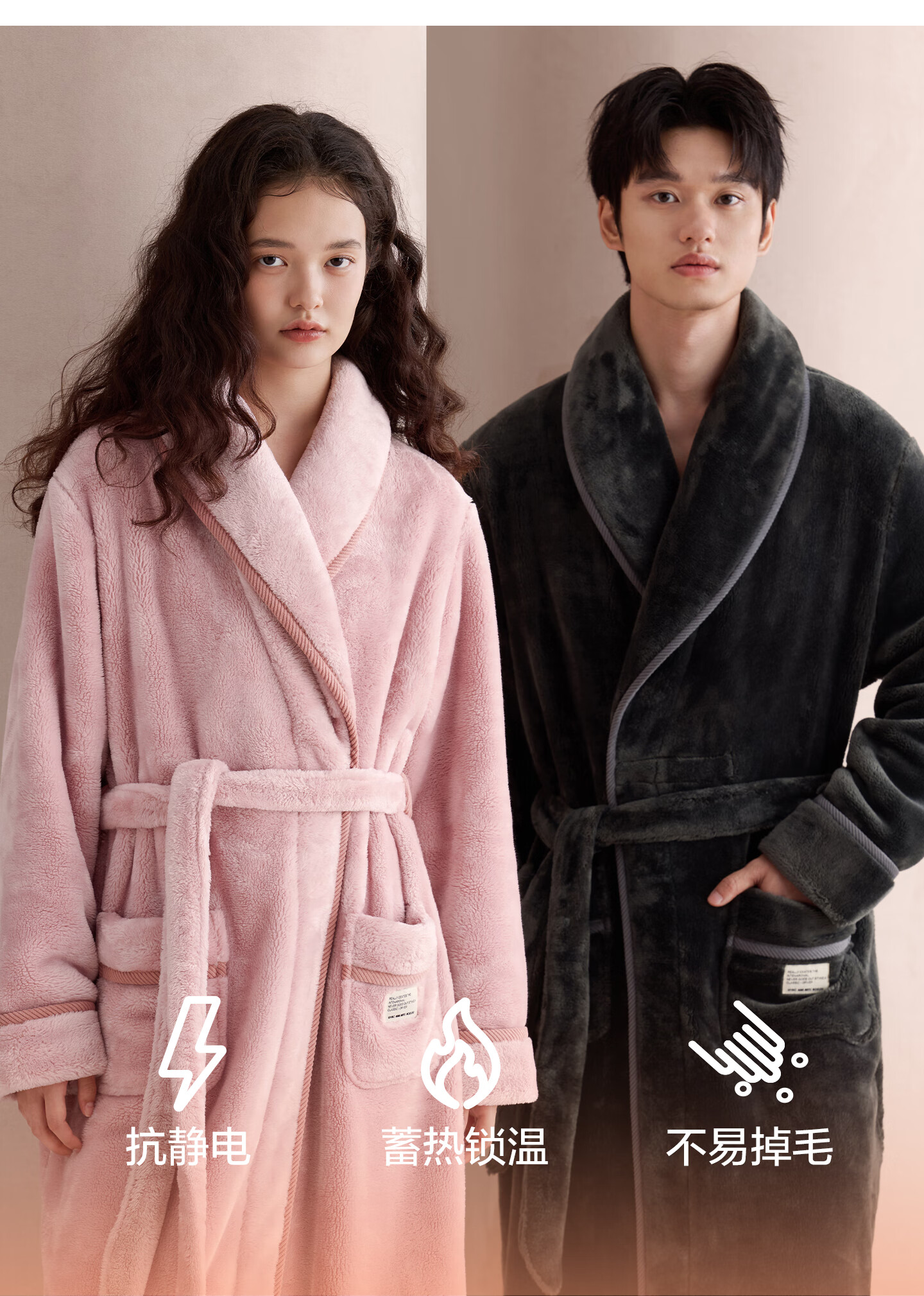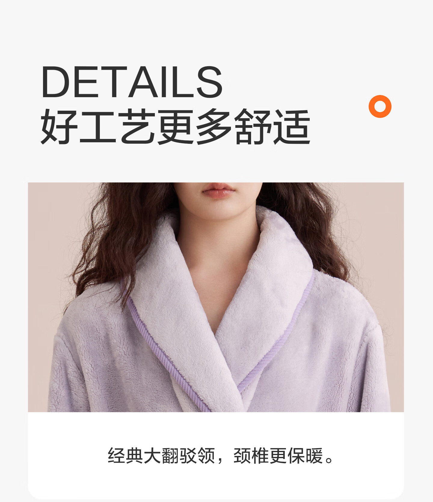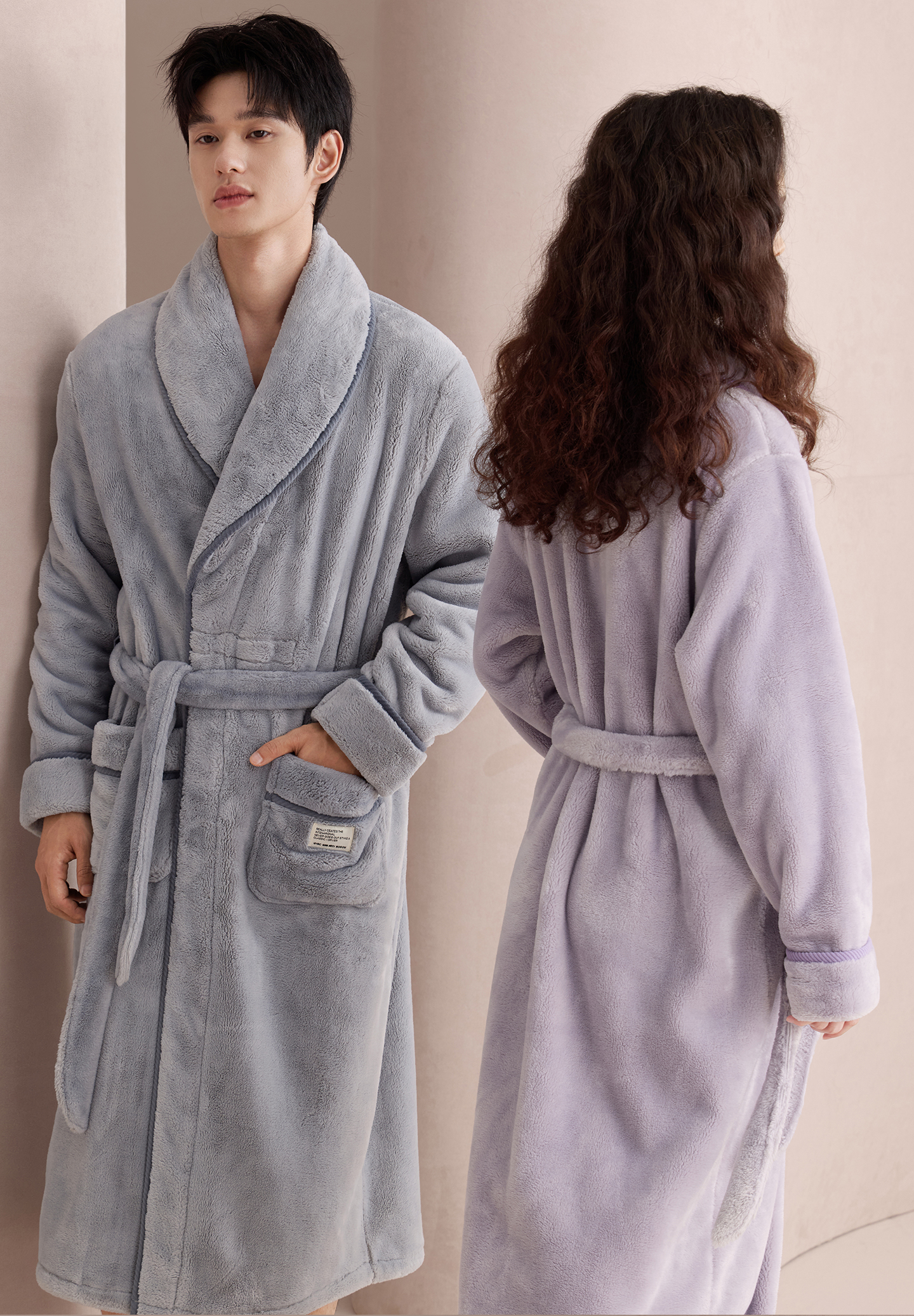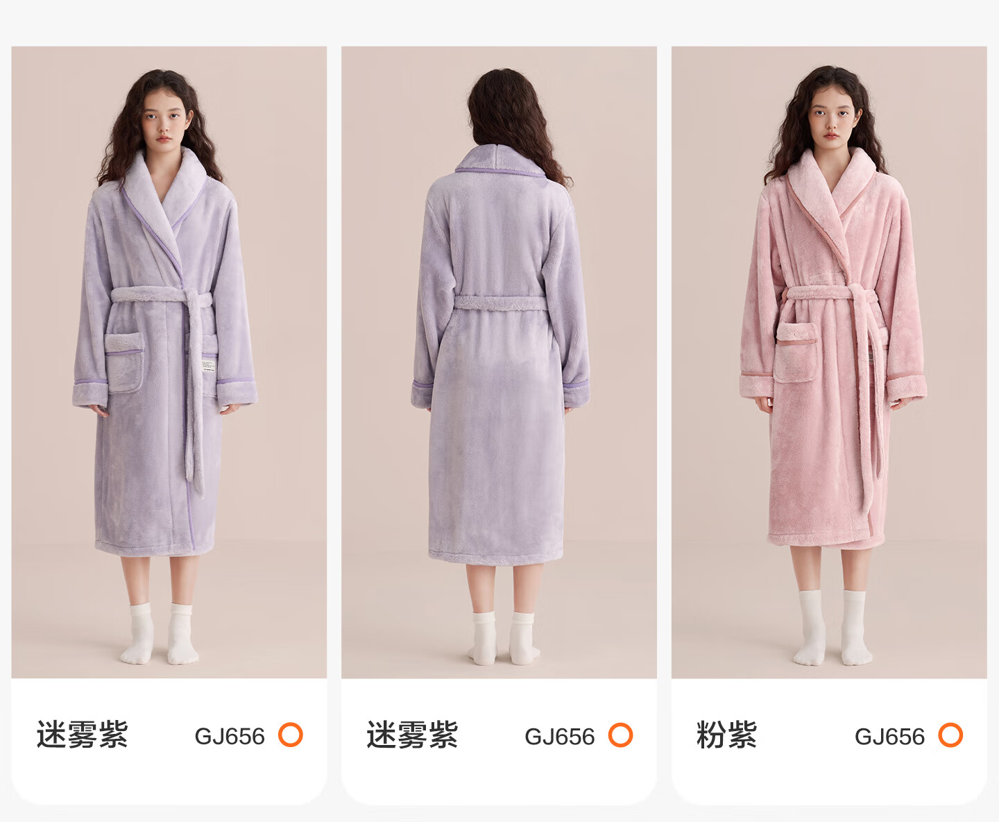 红豆(Hodo)情侣抗静电睡袍女珊瑚绒长款睡衣睡裤加厚法兰绒保暖居家服浴袍男 女士迷雾紫 M (160) 女士