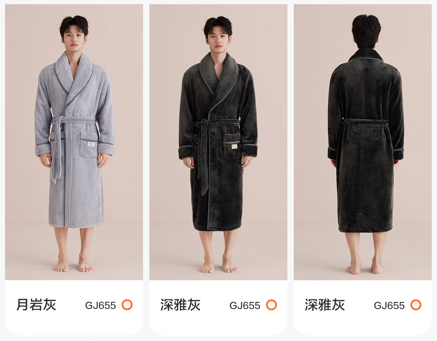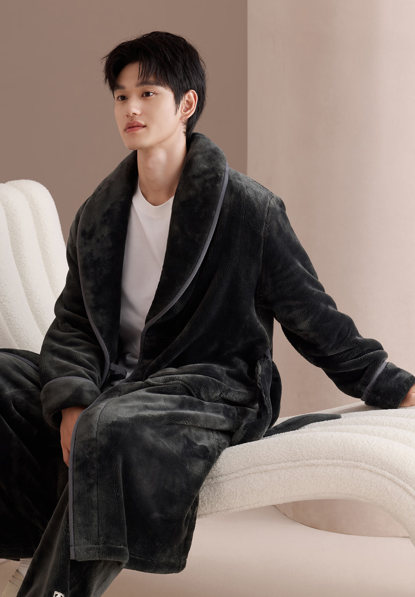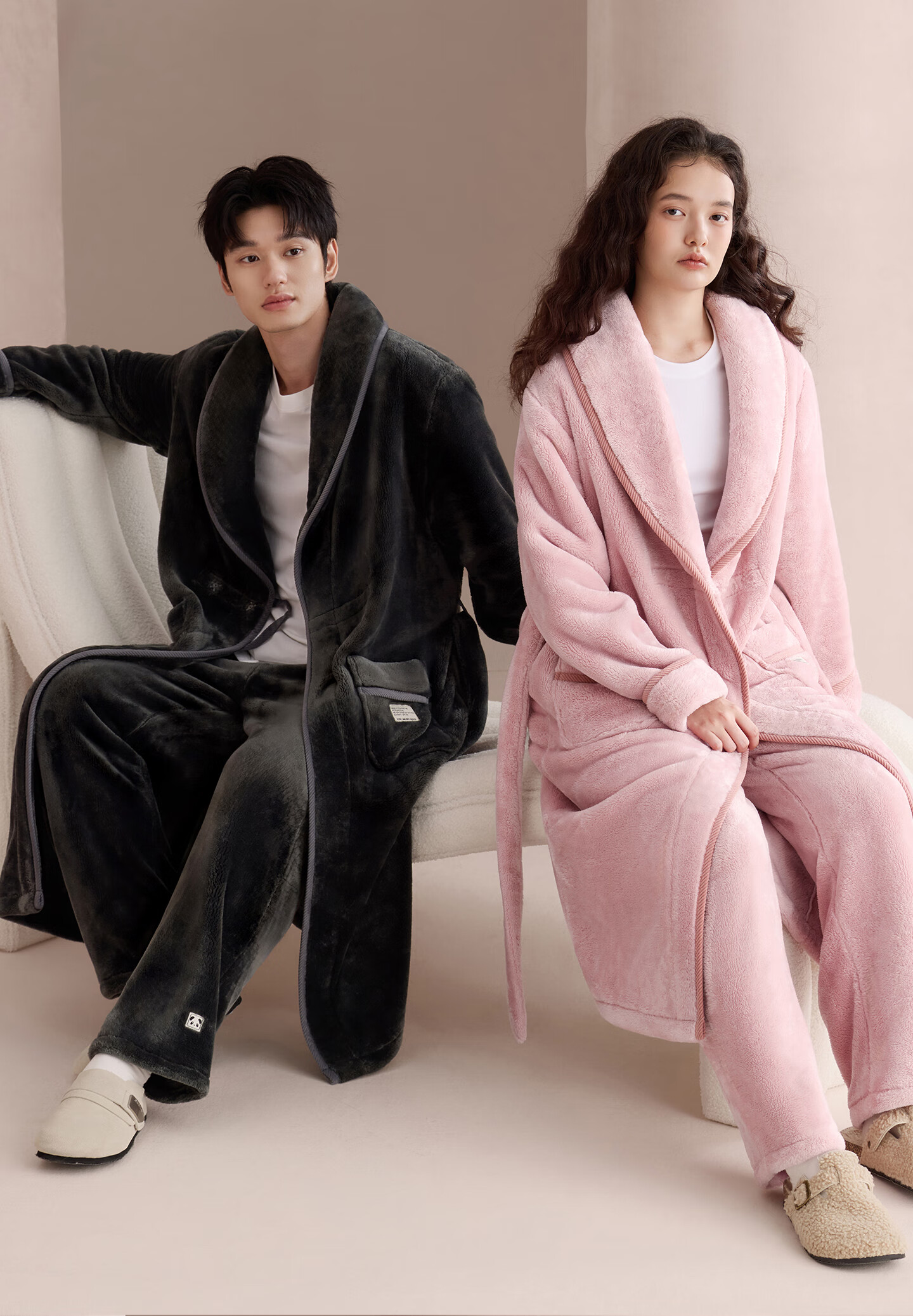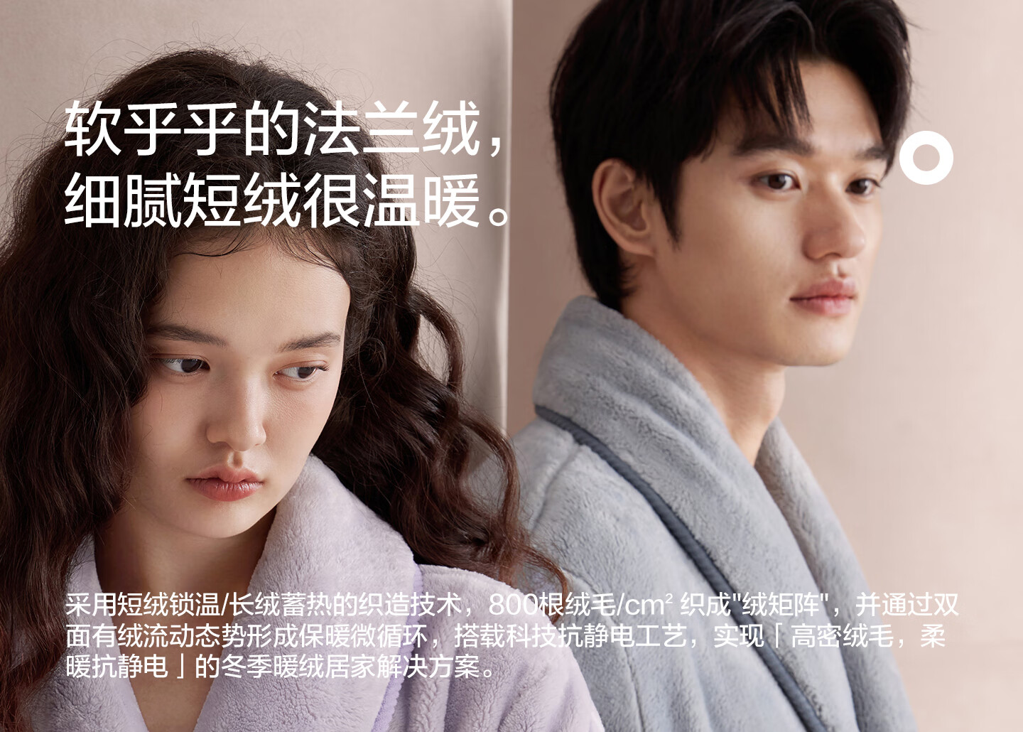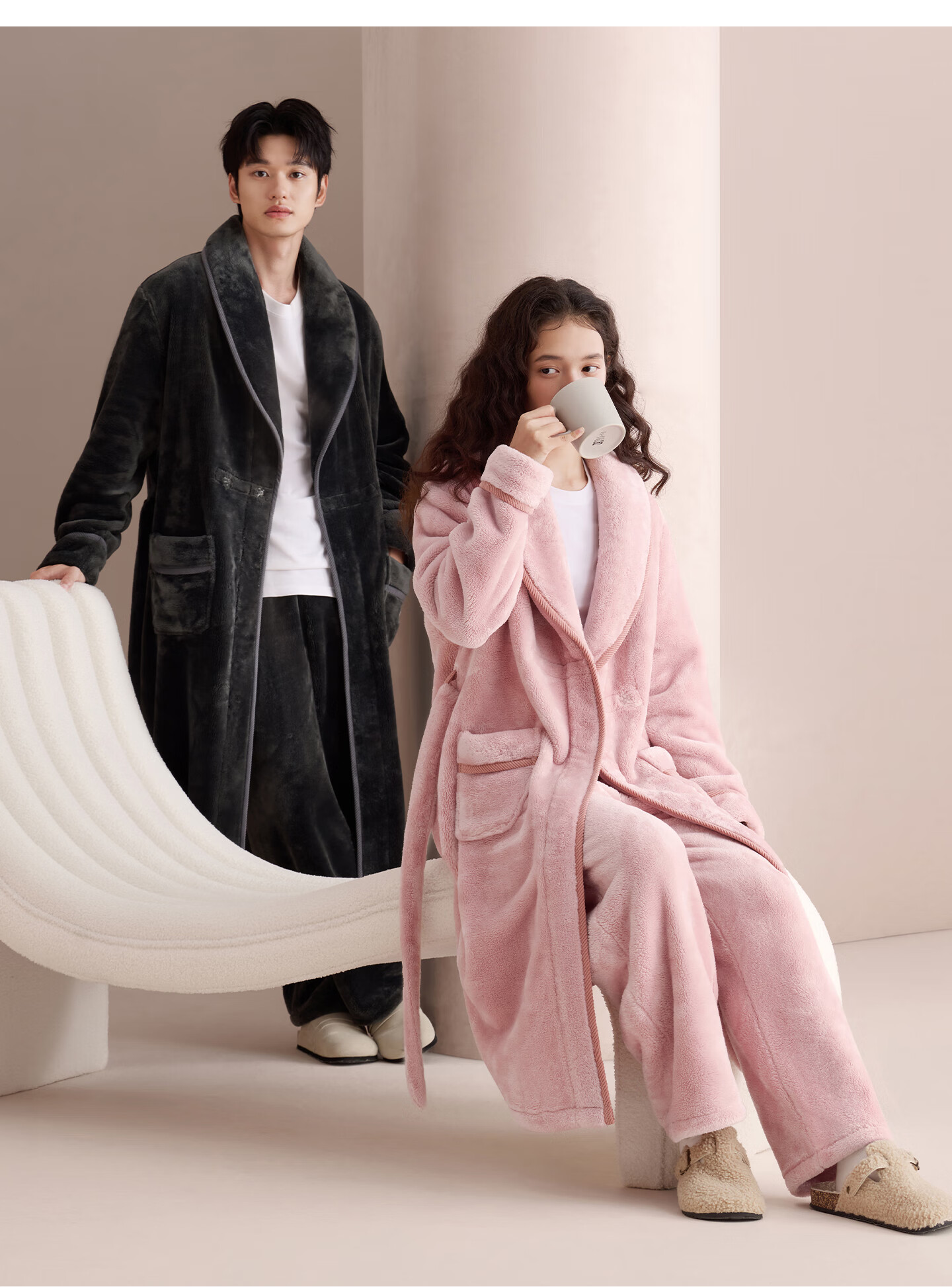 红豆(Hodo)情侣抗静电睡袍女珊瑚绒长款睡衣睡裤加厚法兰绒保暖居家服浴袍男 女士迷雾紫 M (160) 女士