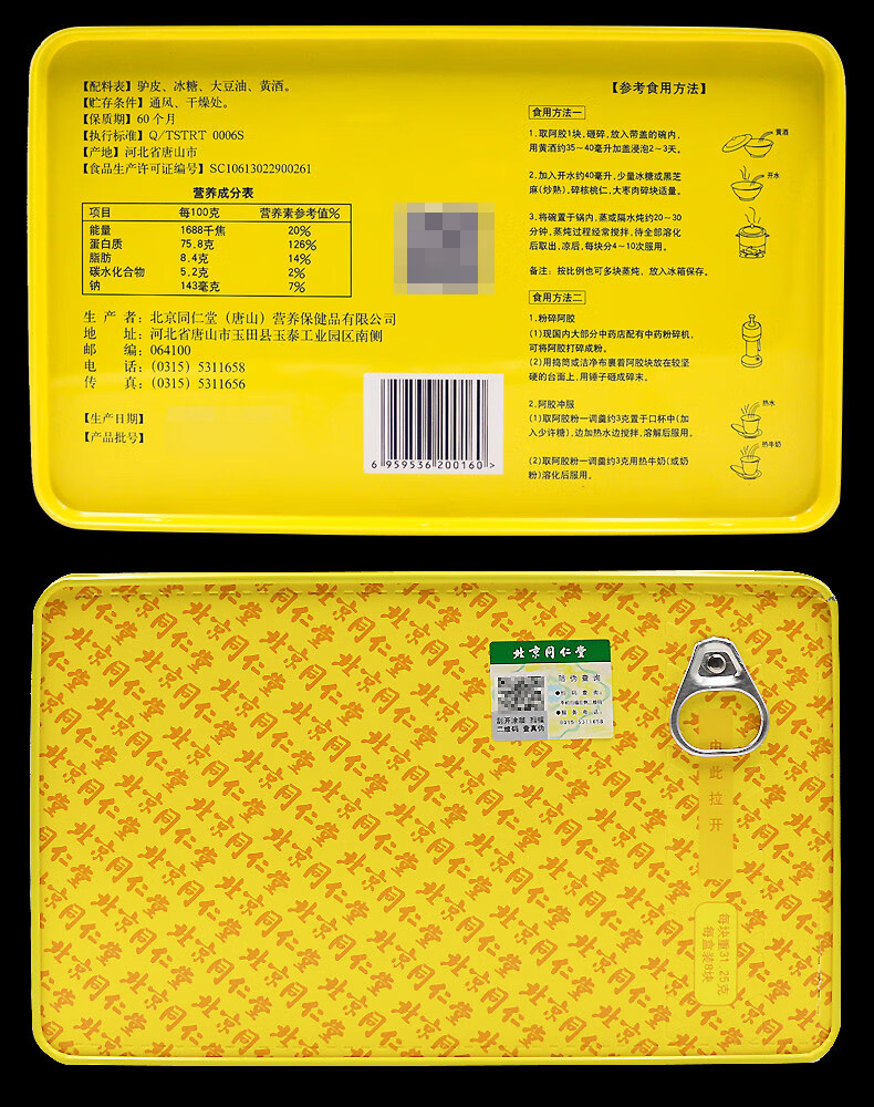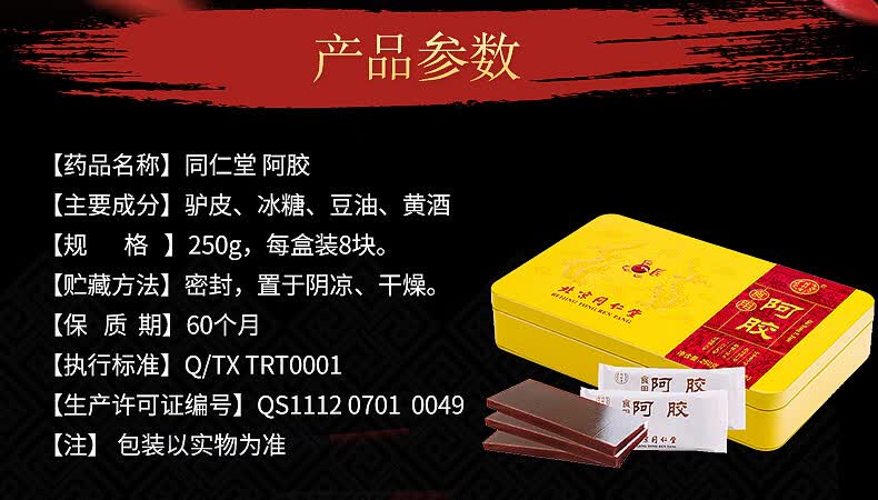 同仁堂山东正宗阿胶250克阿胶块原块食用阿胶片阿胶高品质阿胶送礼佳品 1盒(认准正宗同仁堂纯驴皮阿胶块) 250g*2盒 过春节年货礼盒送礼高档送老婆送长辈见父母家长领导
