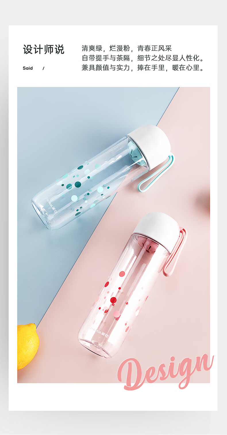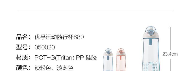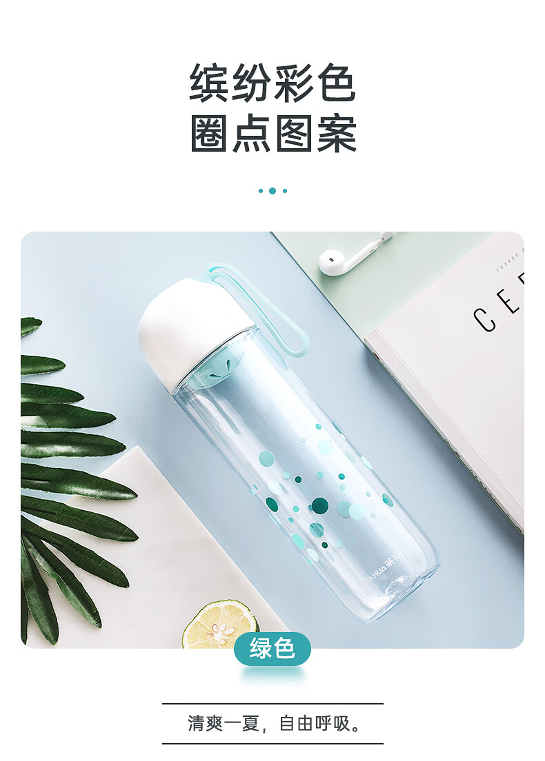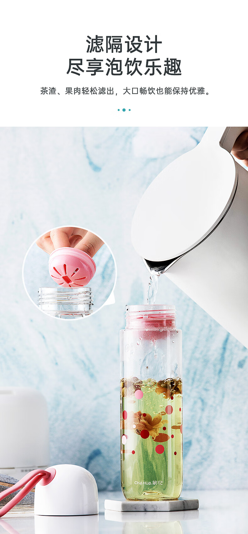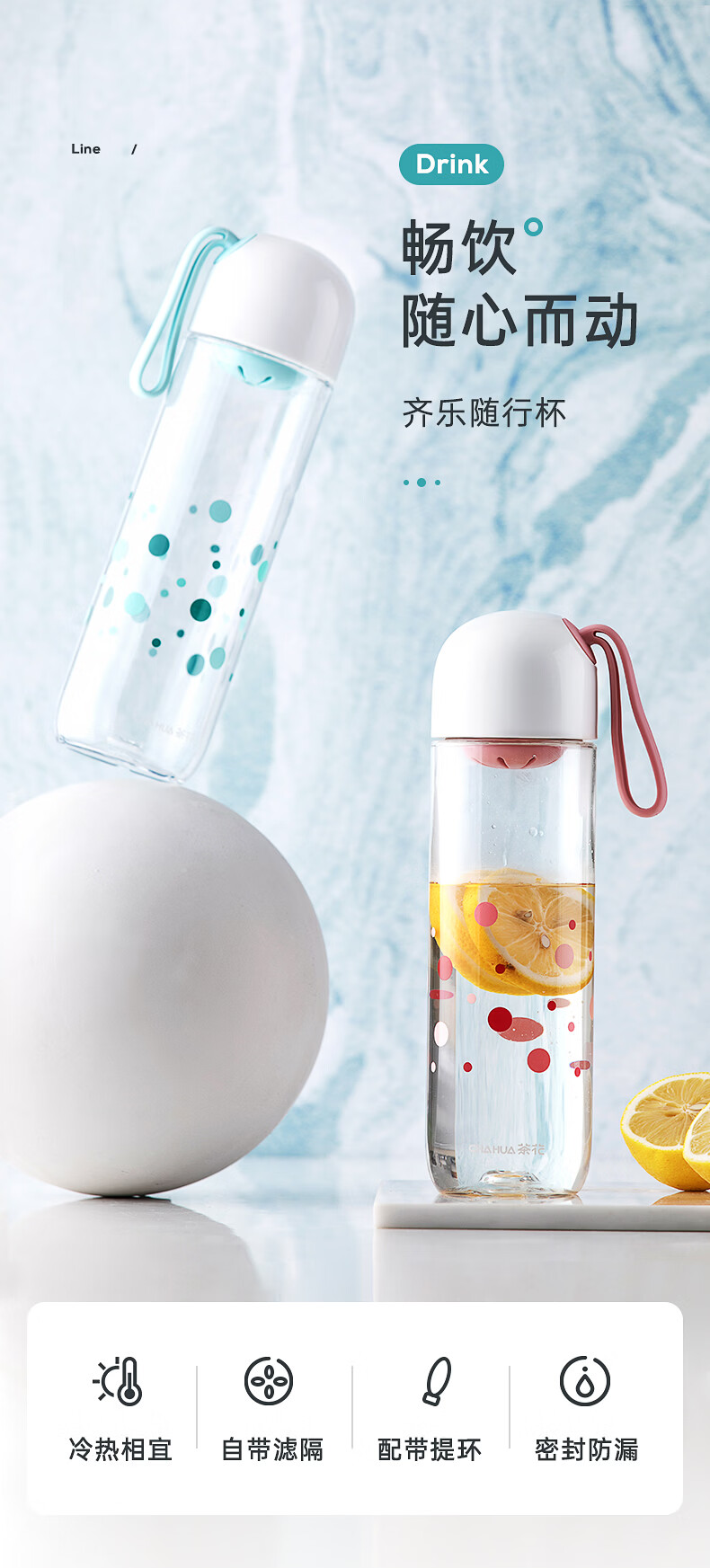 茶花(CHAHUA)tritan水杯男女运动水壶塑料耐高温夏学生儿童学校便携随手杯 海盐蓝 680ml 【有提绳 硅胶吸嘴】