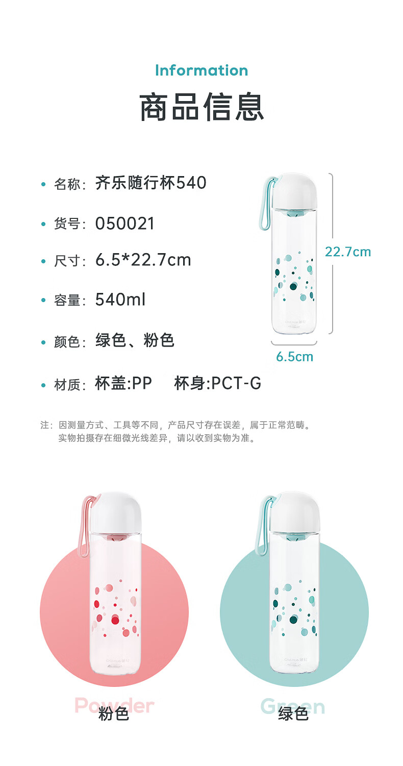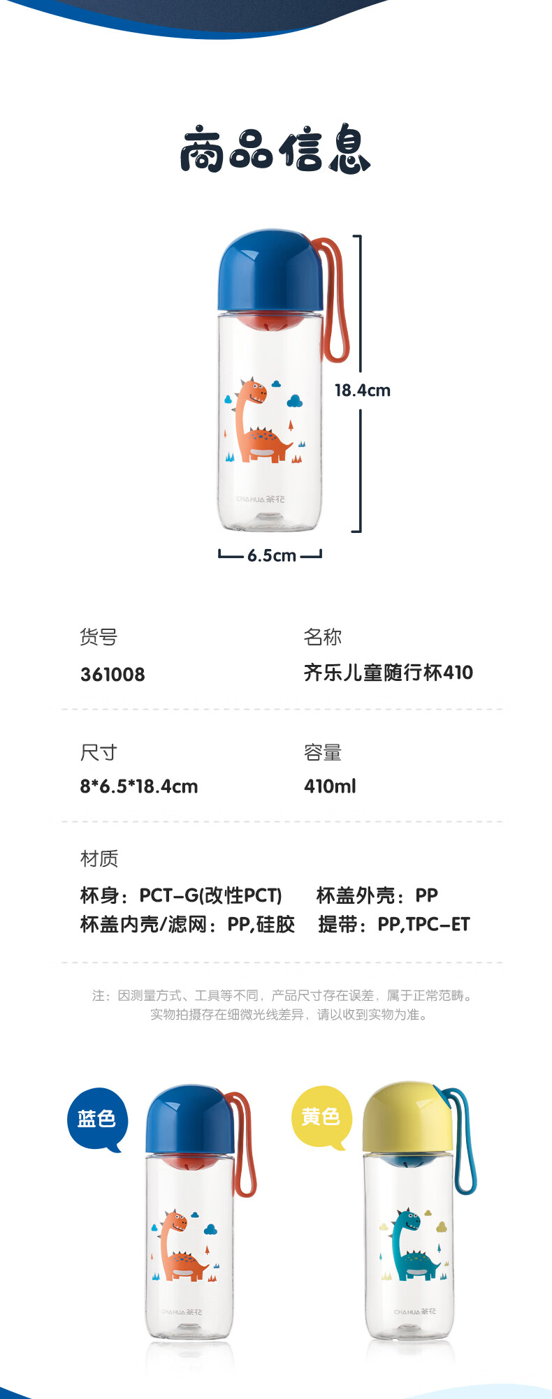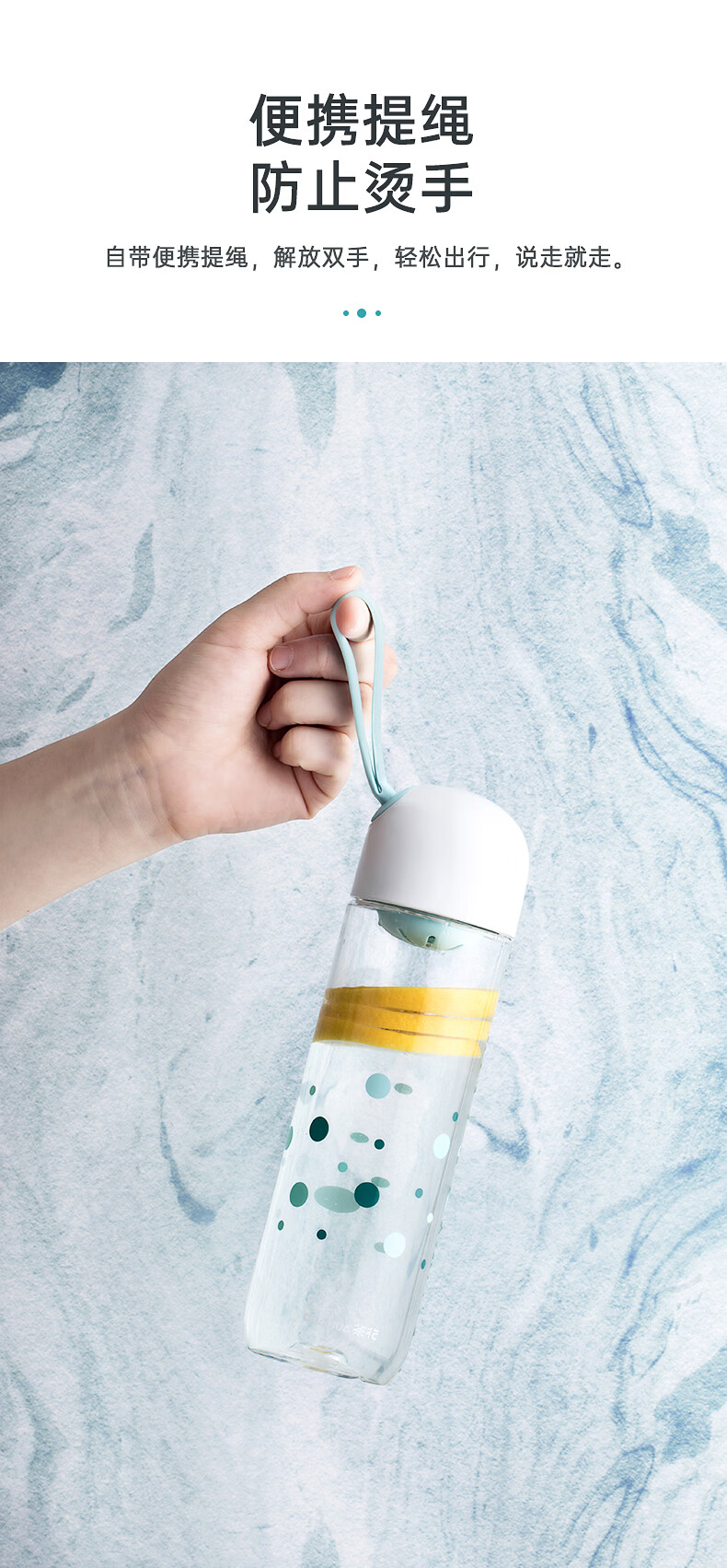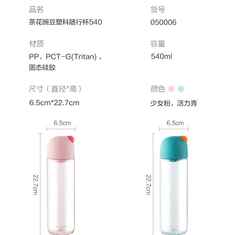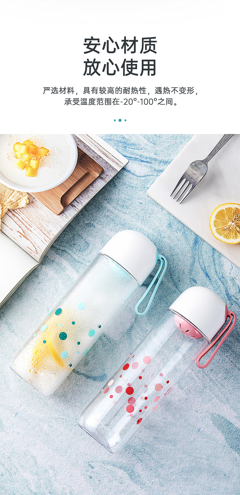 茶花(CHAHUA)tritan水杯男女运动水壶塑料耐高温夏学生儿童学校便携随手杯 海盐蓝 680ml 【有提绳 硅胶吸嘴】