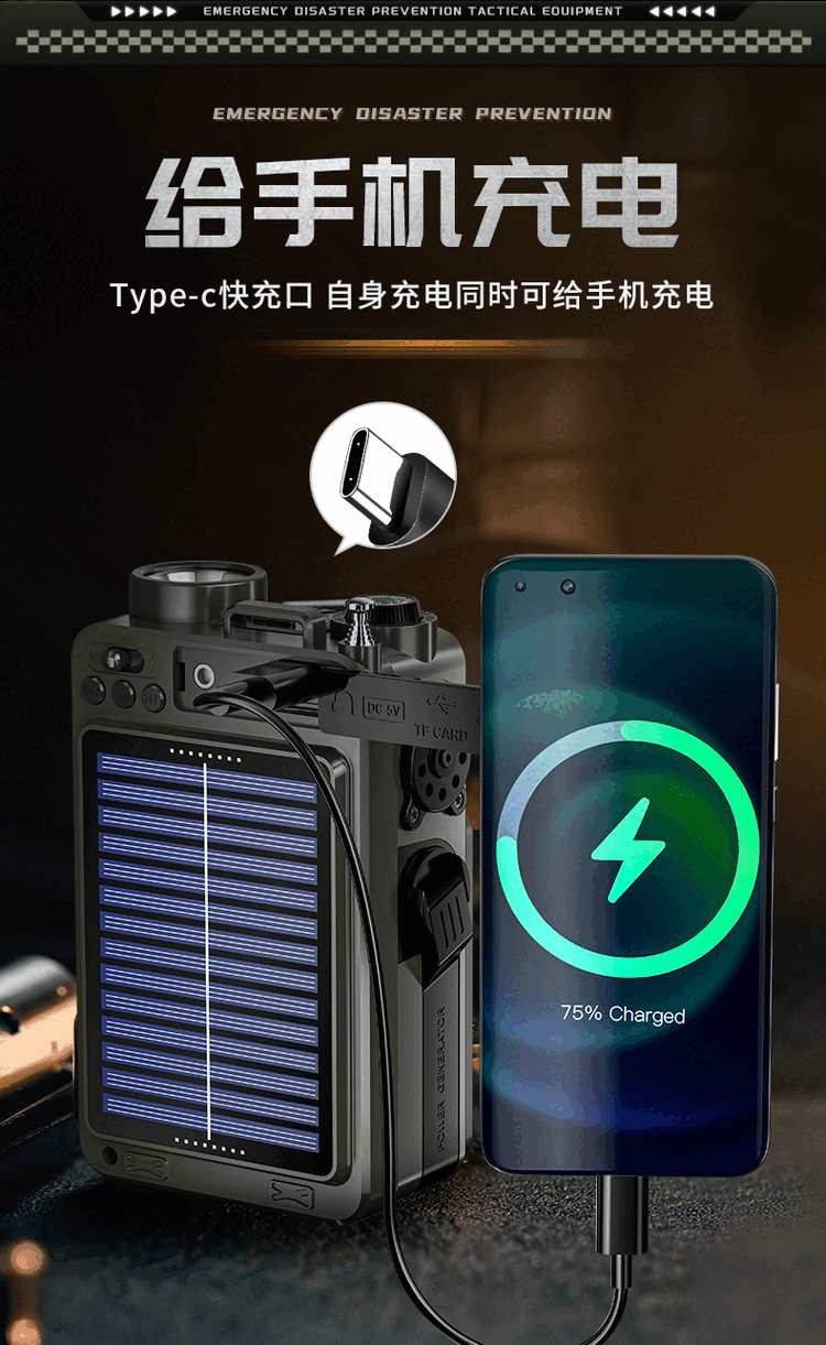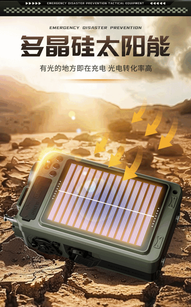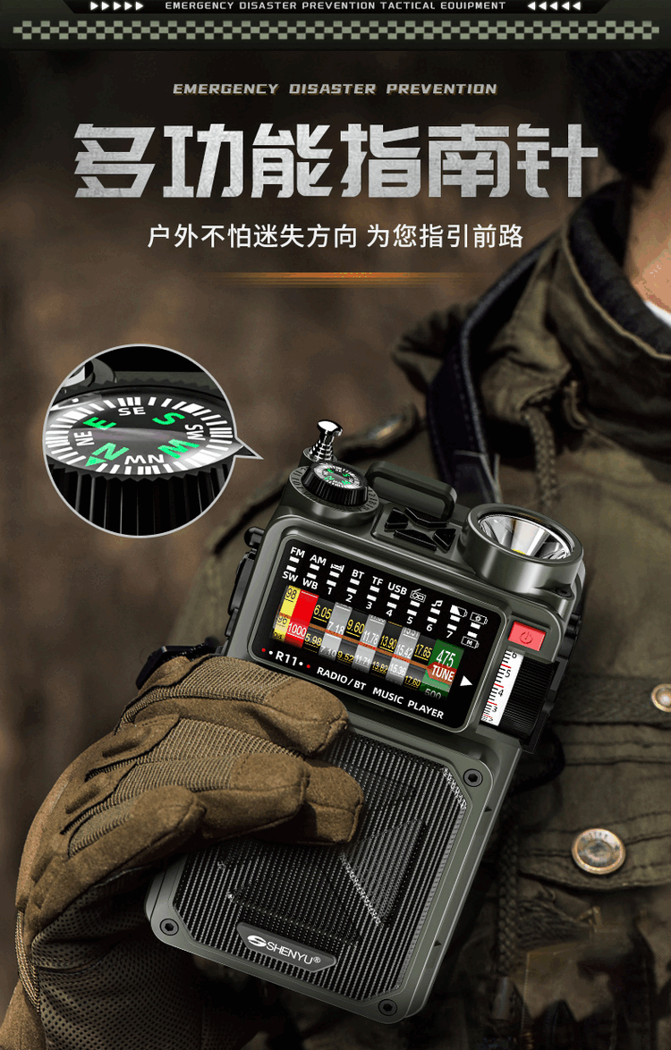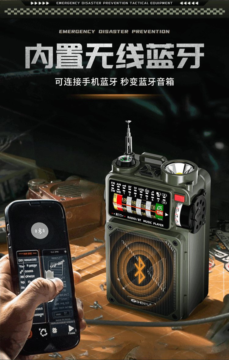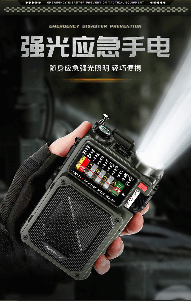 煦凛【德国】手摇发电收音机手电筒防震减灾应急多功能太阳能强光超亮 【顶配】蓝牙+指南针+SOS+可插U盘