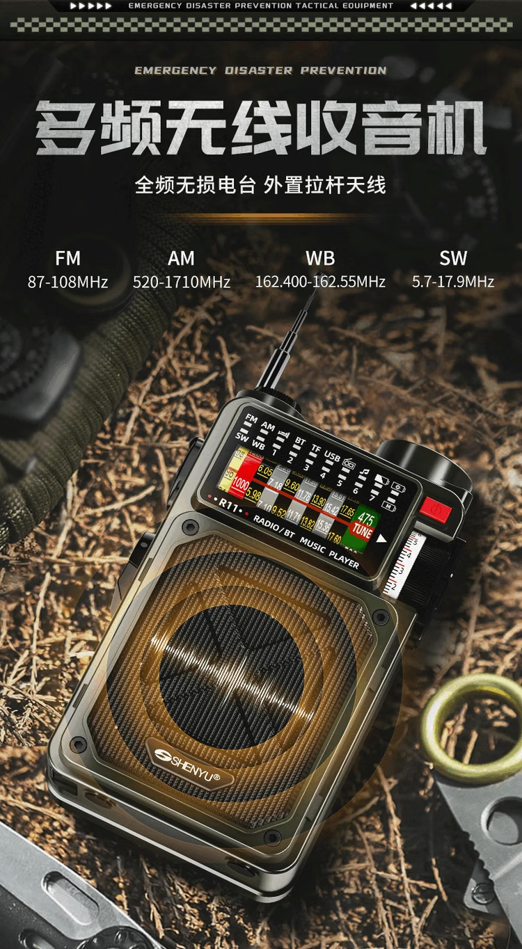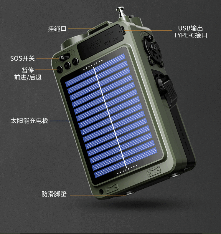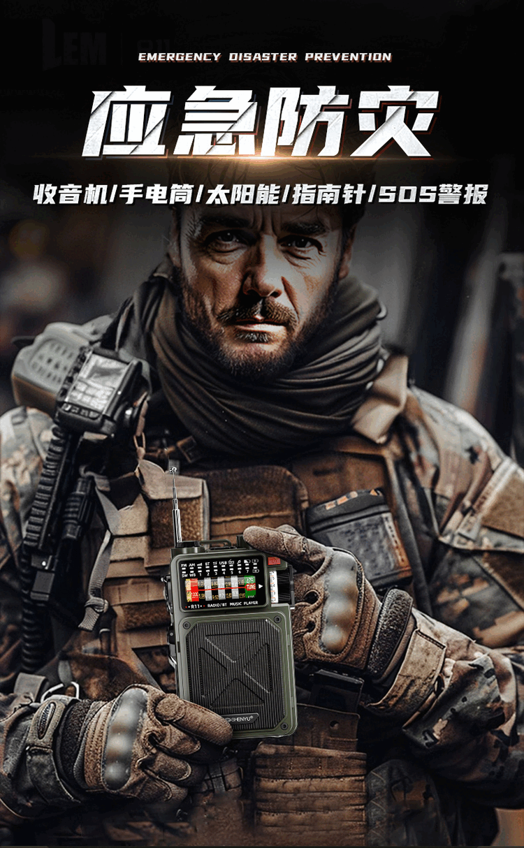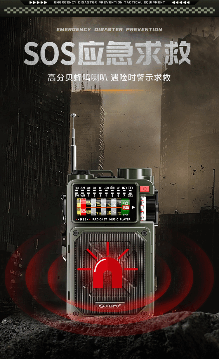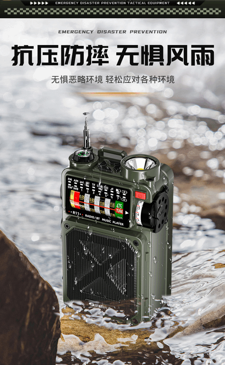 煦凛【德国】手摇发电收音机手电筒防震减灾应急多功能太阳能强光超亮 【顶配】蓝牙+指南针+SOS+可插U盘