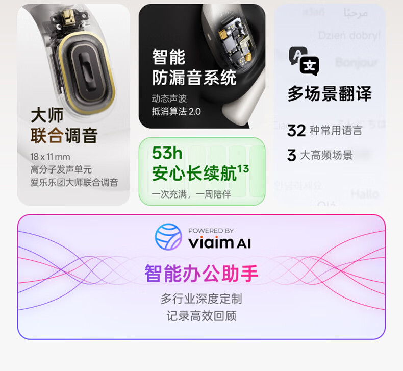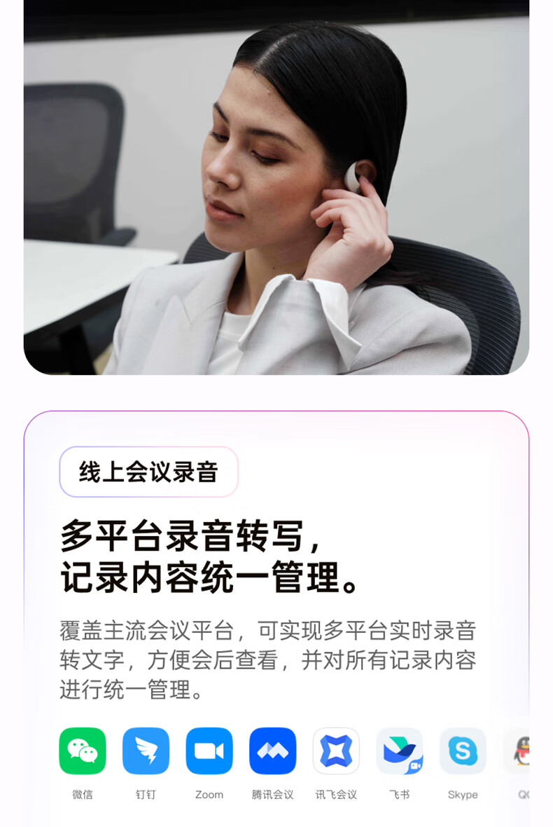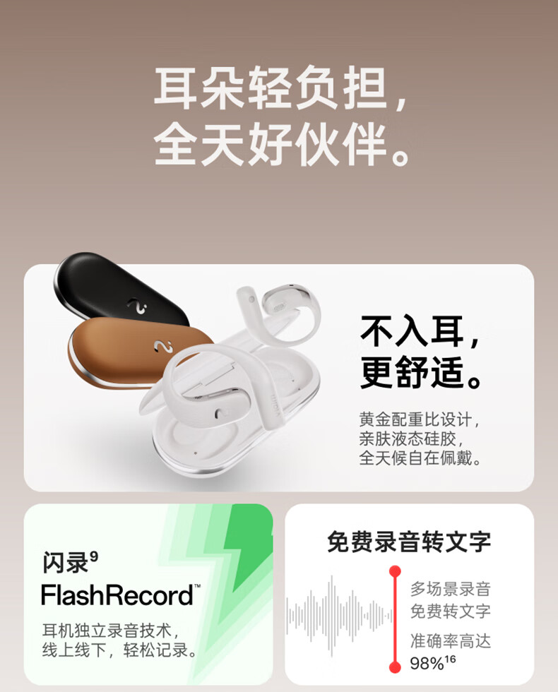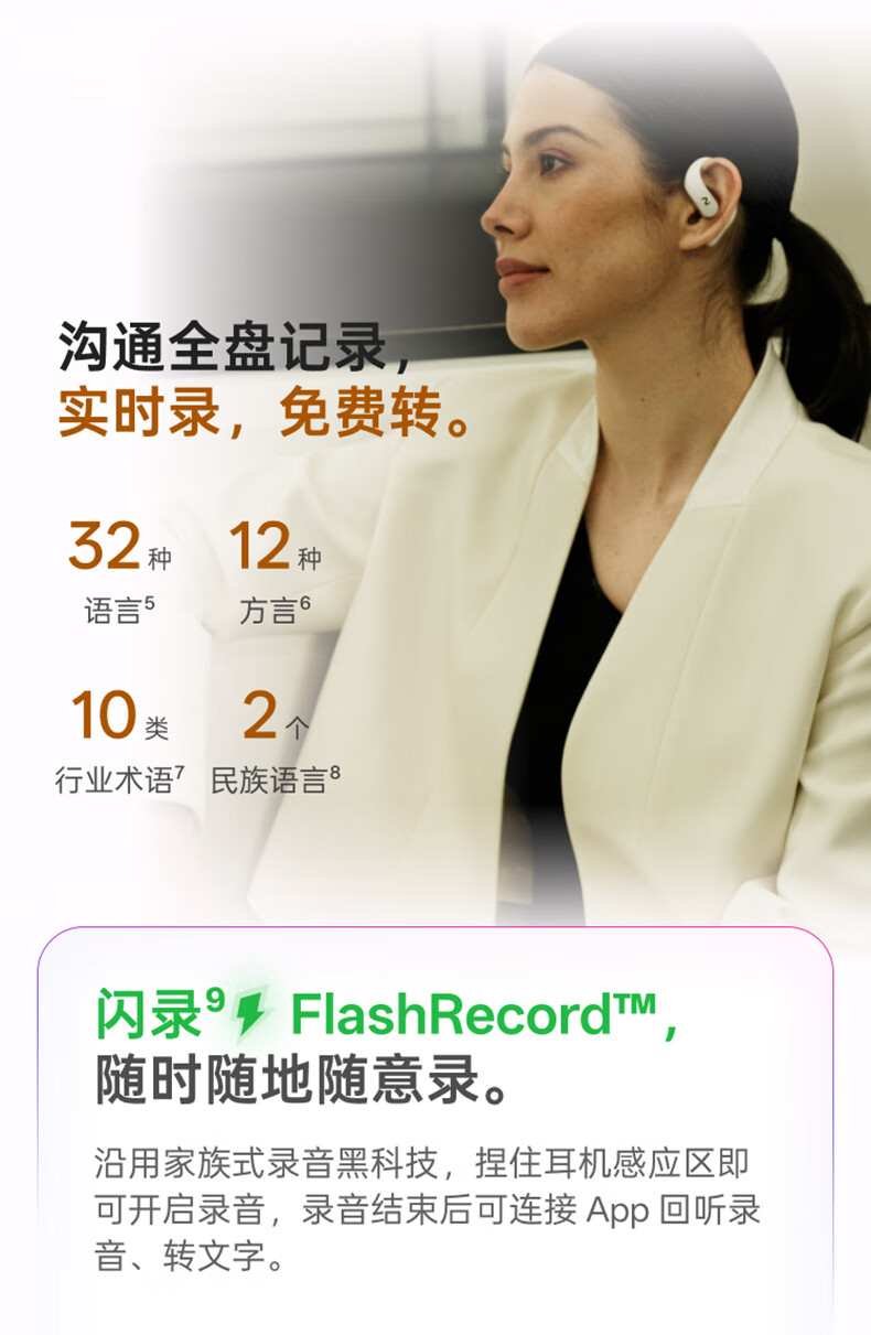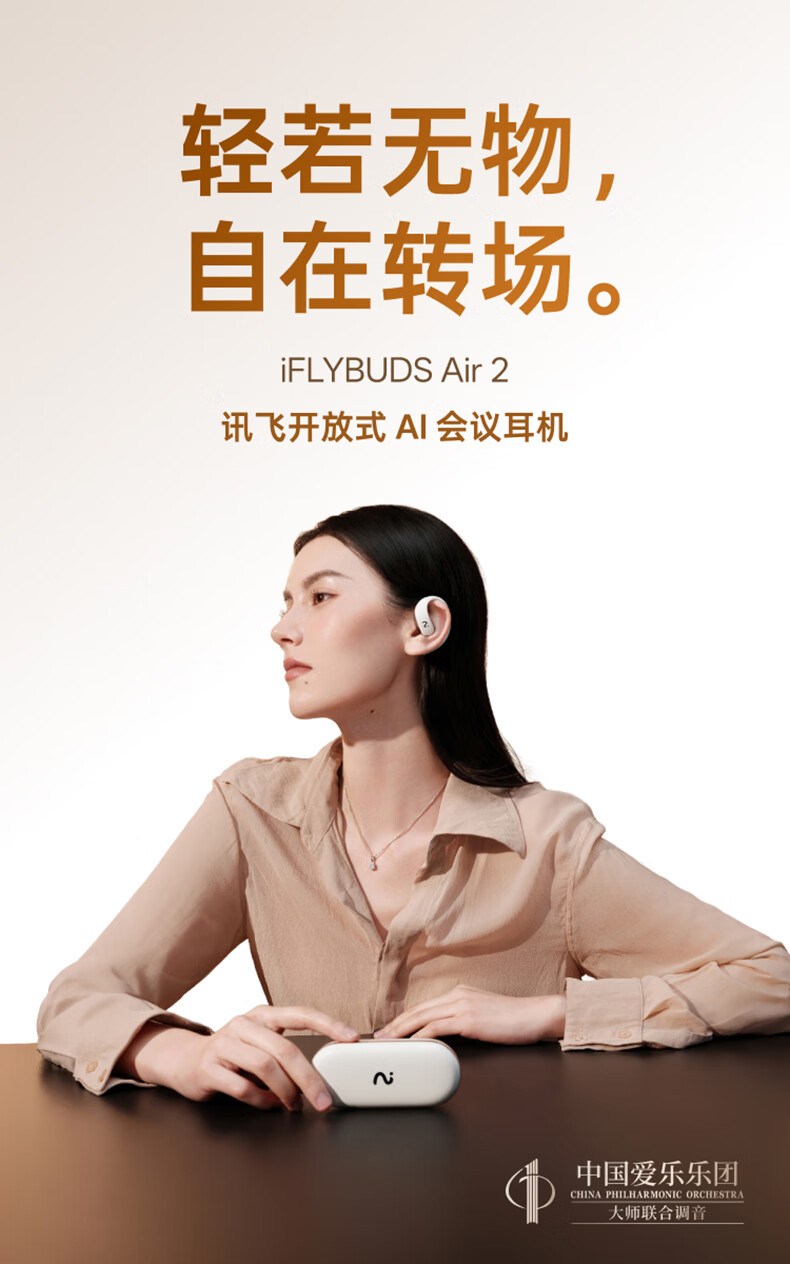 科大讯飞【国家补贴】开放式AI挂耳无线蓝牙耳机Air 2 雾黑 运动智能翻译降噪超长续航 适配苹果华为小米