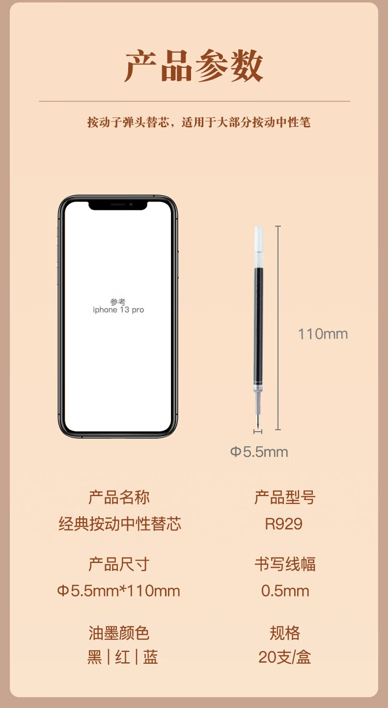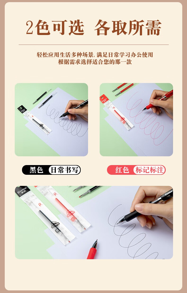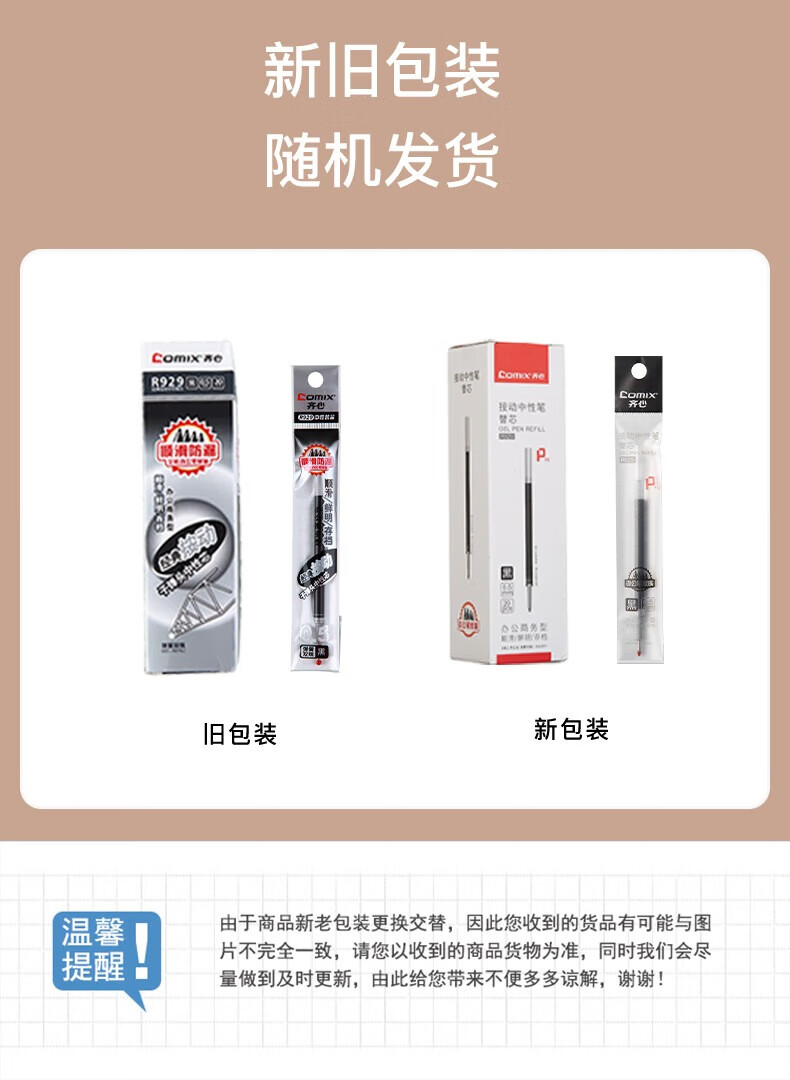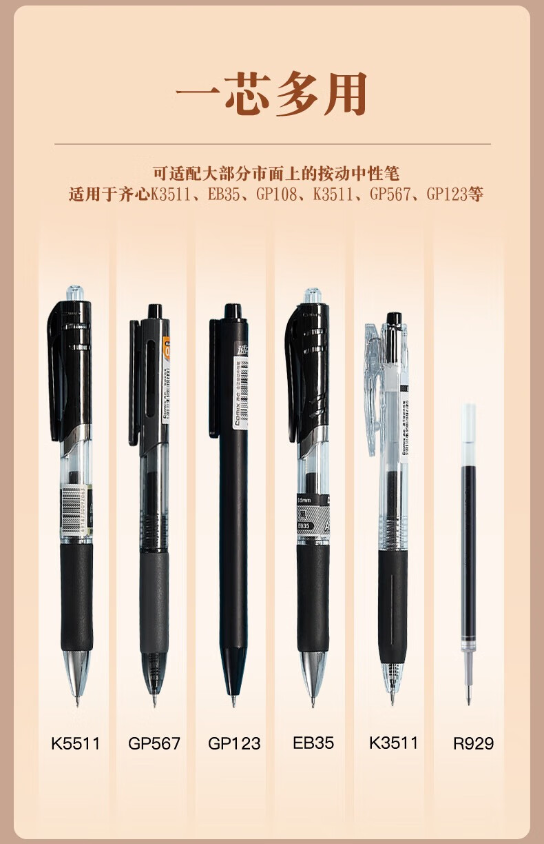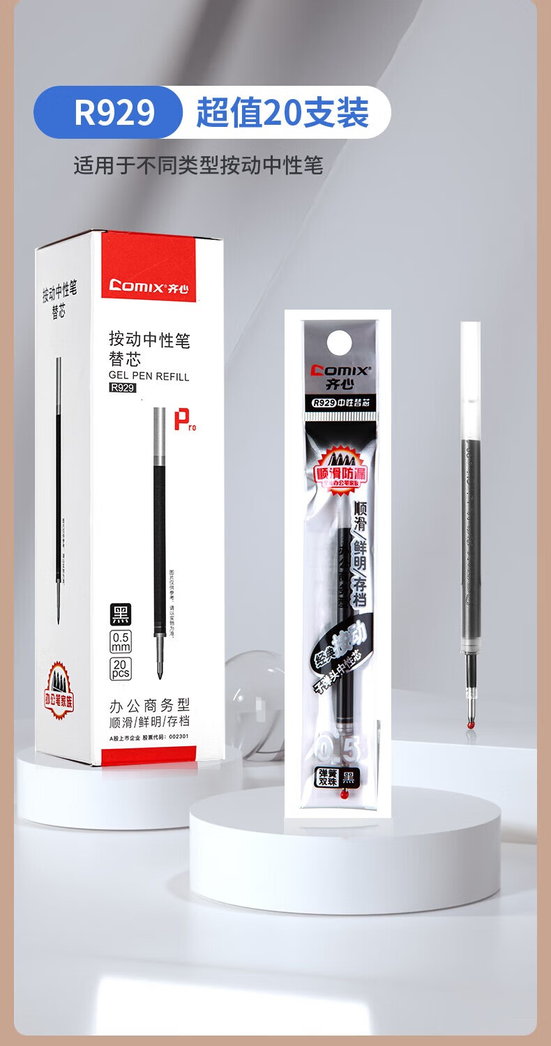 齐心(Comix)0.5mm黑色子弹头按动中性笔芯 适用K35/GP108/EB35/S01 水笔签字笔替芯 20支/盒 ER932