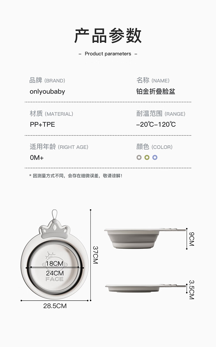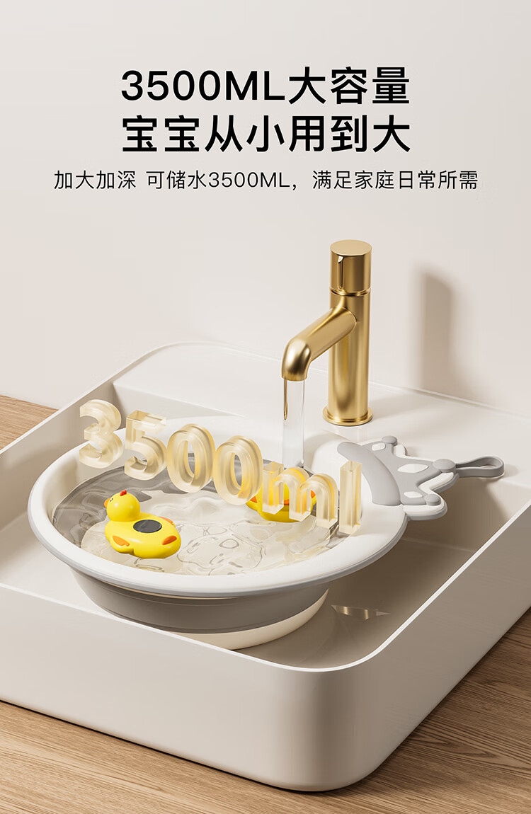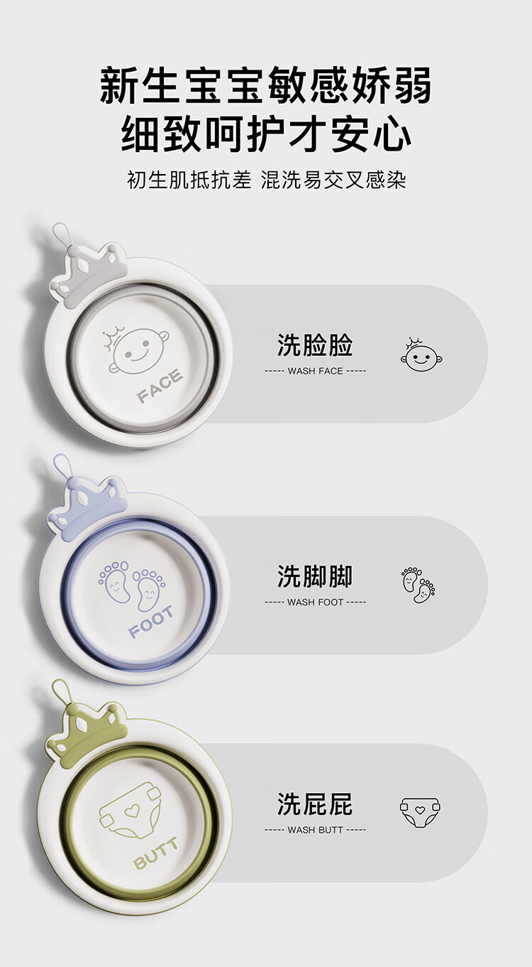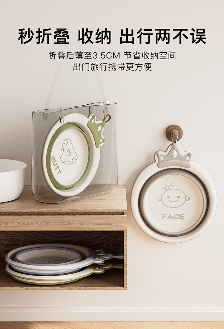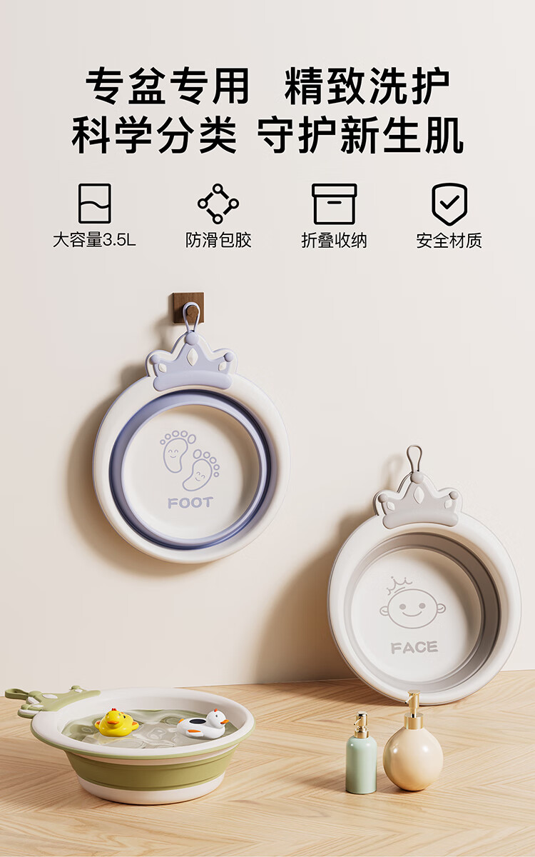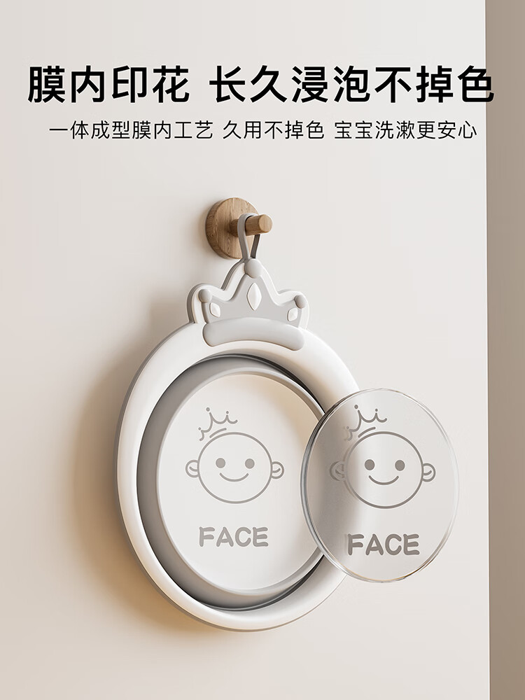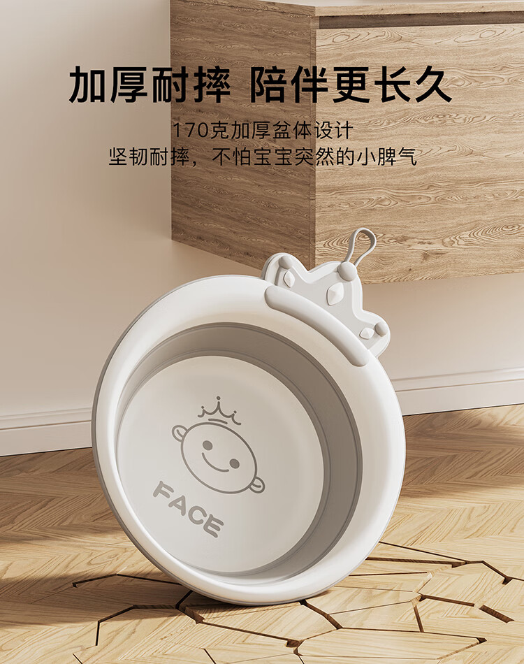 新生婴儿可折叠悬挂脸盆儿童专用卡通洗脸盆初生宝宝洗屁屁洗脚盆 灰色-洗脸脸