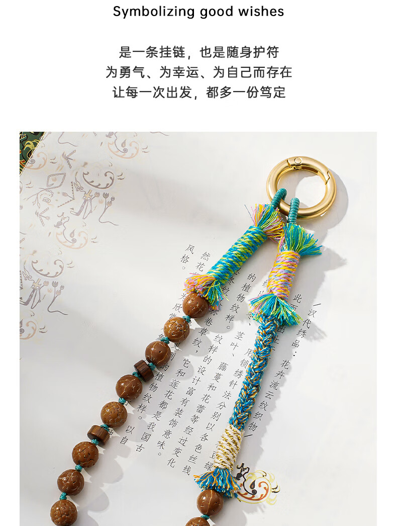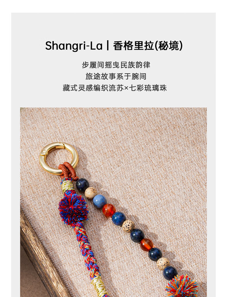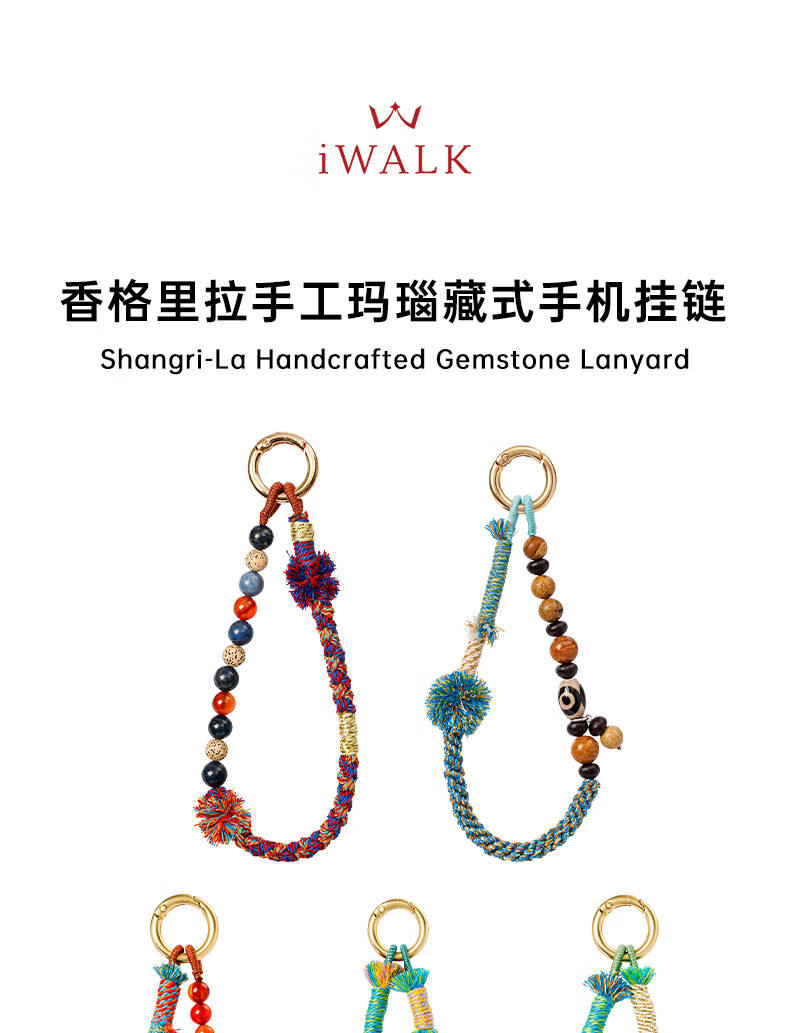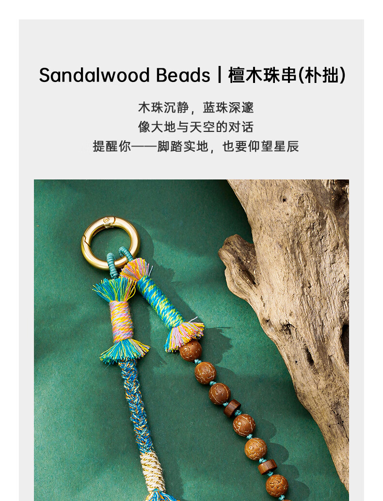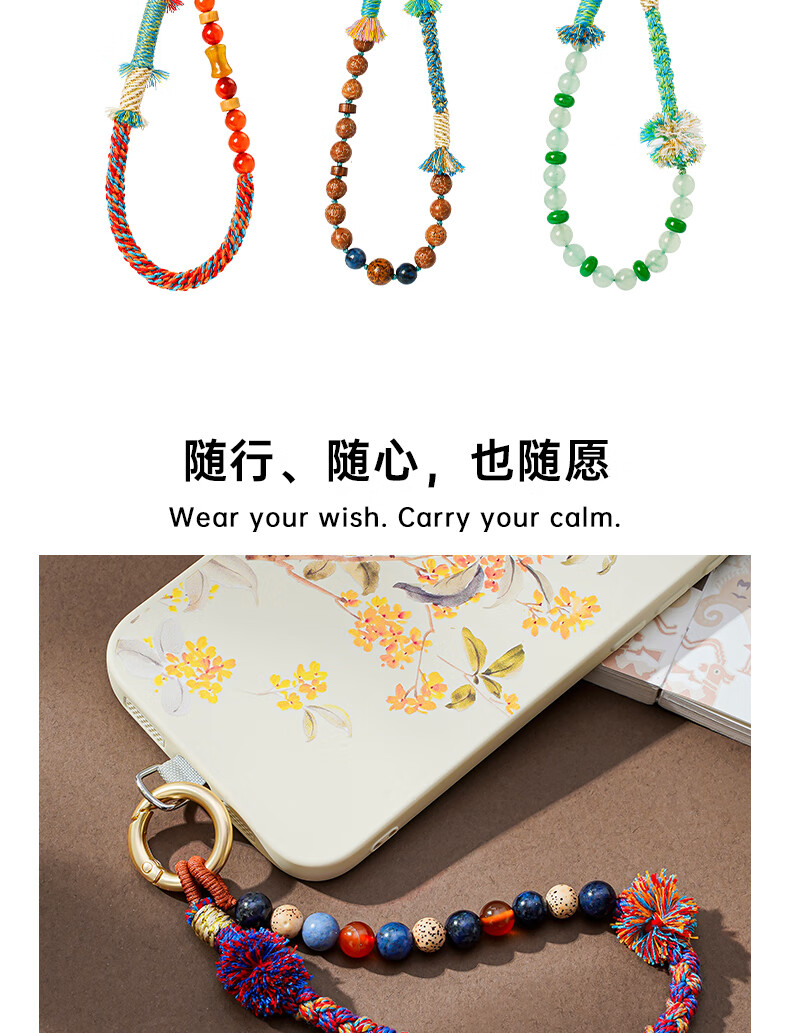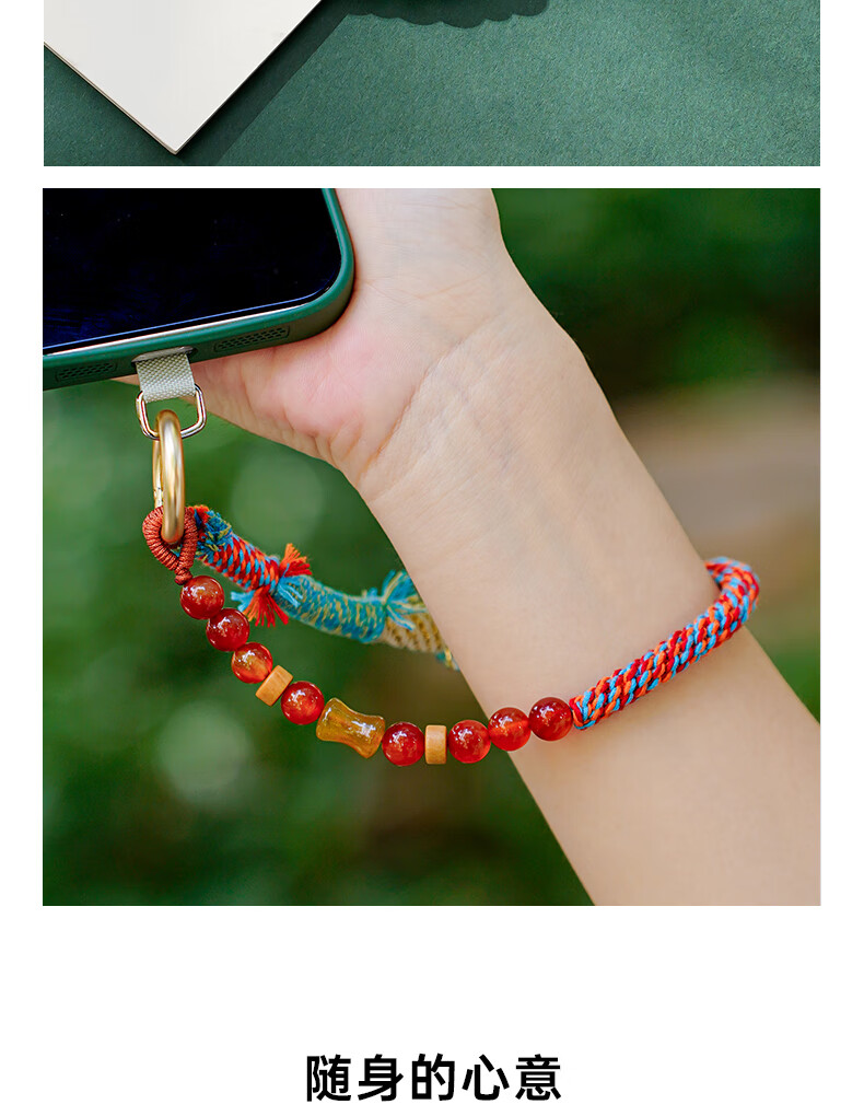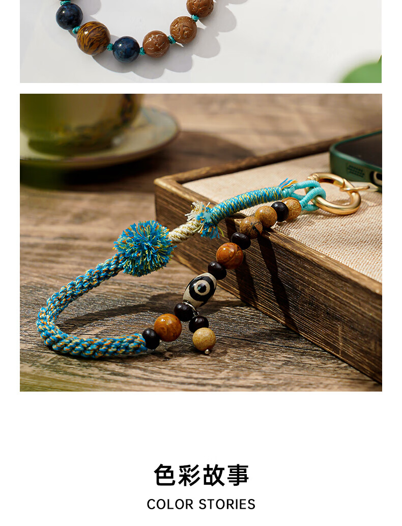 爱沃可(iWALK)圣诞礼物香格里拉手工玛瑙藏式手机挂链名族风编织檀木串珠绒花球手机腕链设计感短手机链挂绳 【檀木串珠】藏缘串珠绒花球手工编织手机挂链+金属片