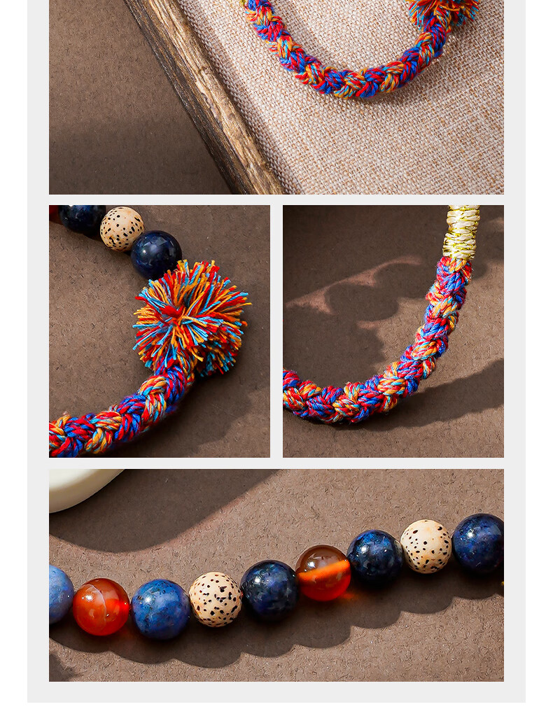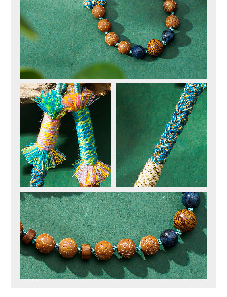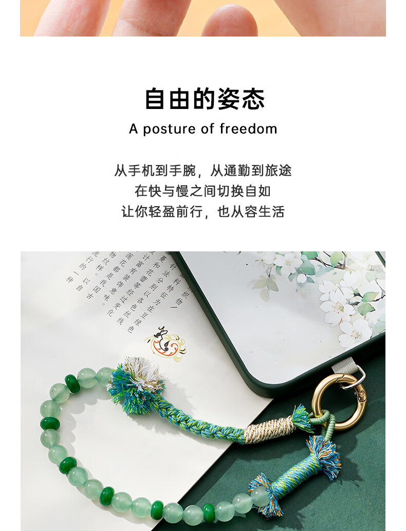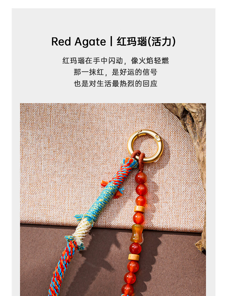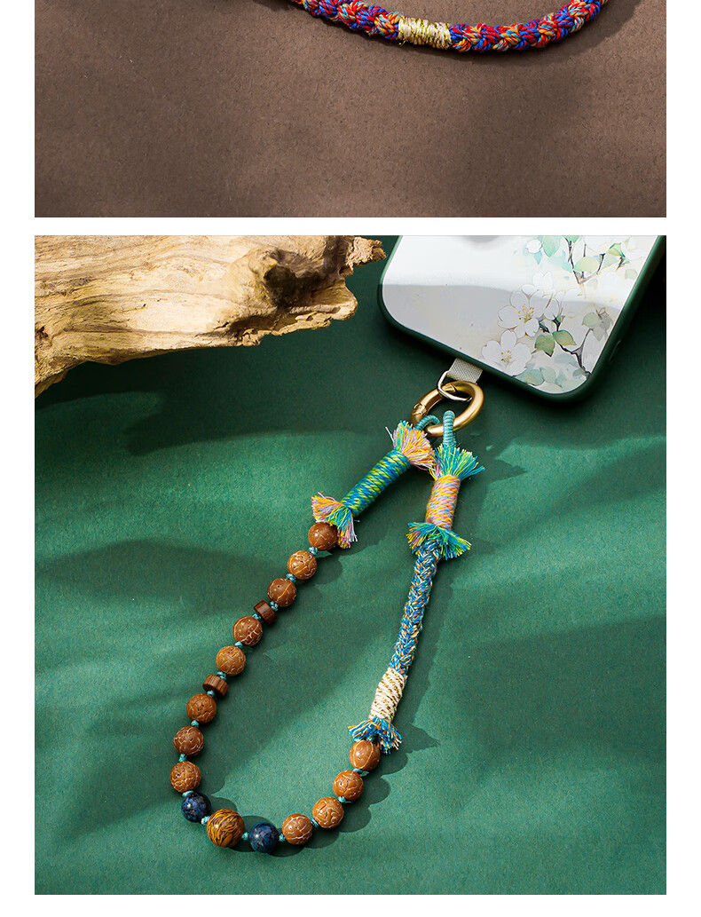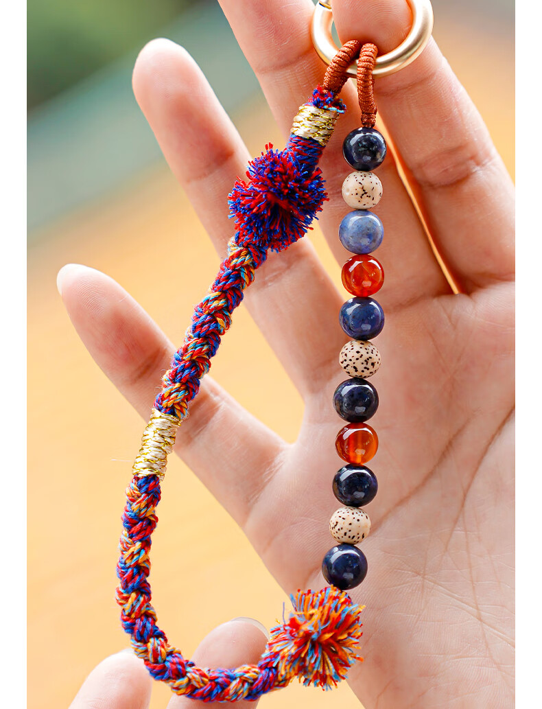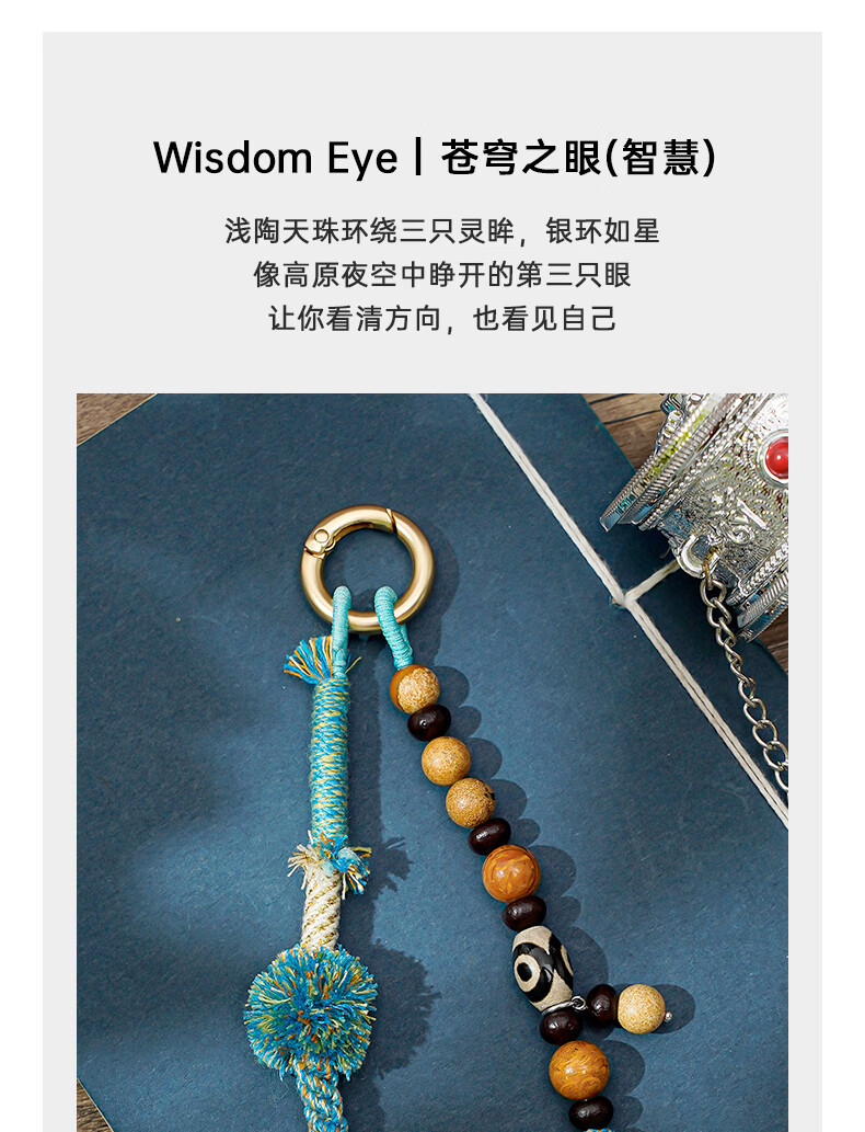 爱沃可(iWALK)圣诞礼物香格里拉手工玛瑙藏式手机挂链名族风编织檀木串珠绒花球手机腕链设计感短手机链挂绳 【檀木串珠】藏缘串珠绒花球手工编织手机挂链+金属片