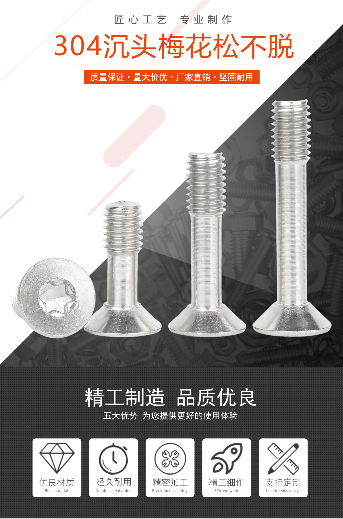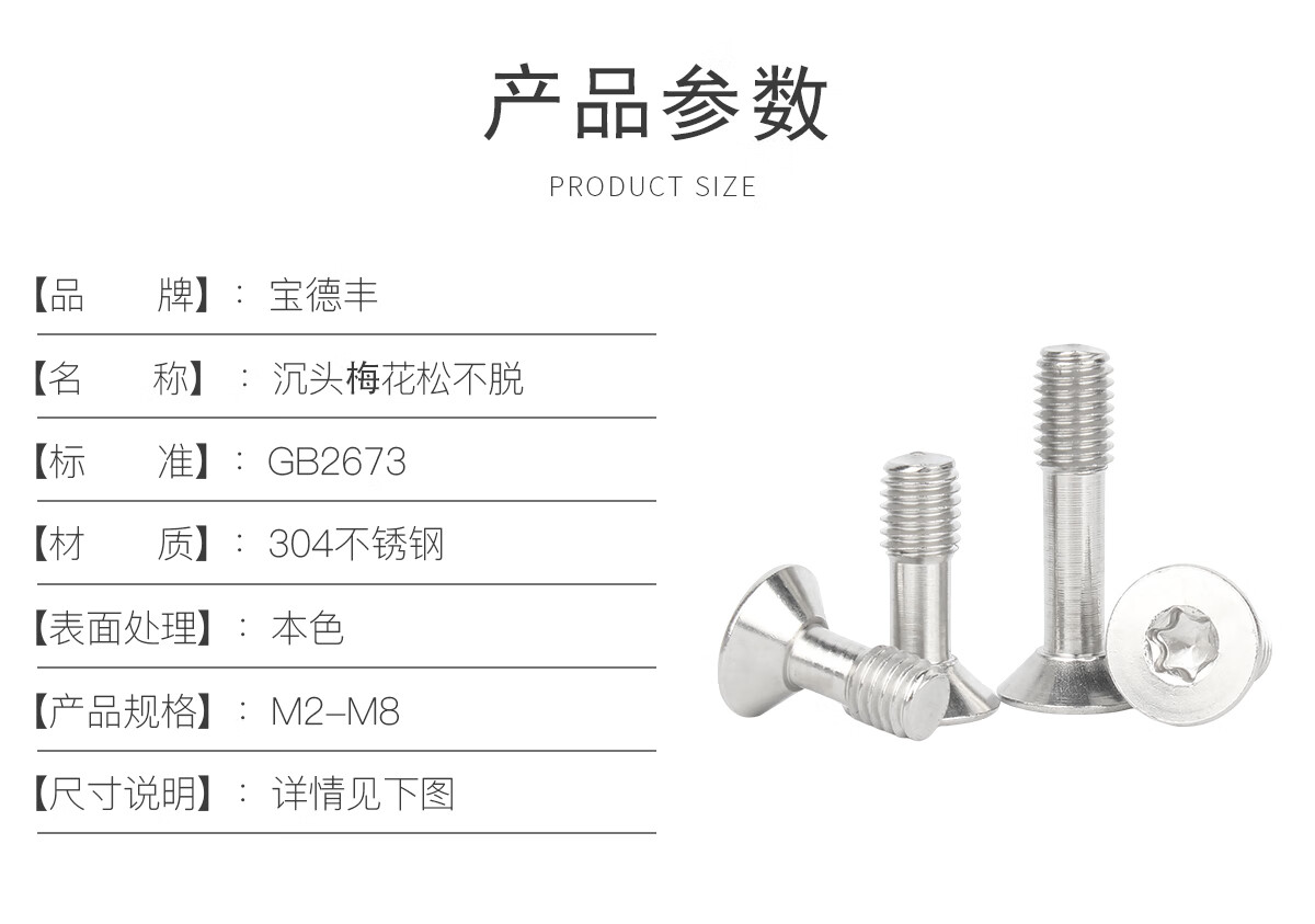 宝德丰304不锈钢GB2673松不脱沉头梅花不脱出螺钉防脱半牙螺丝M2-M10 M2x6(20只)