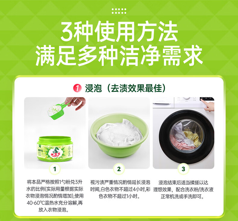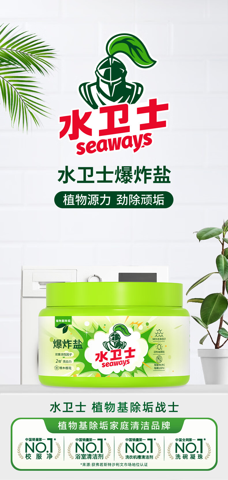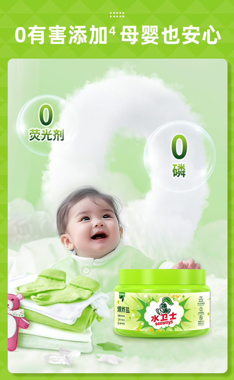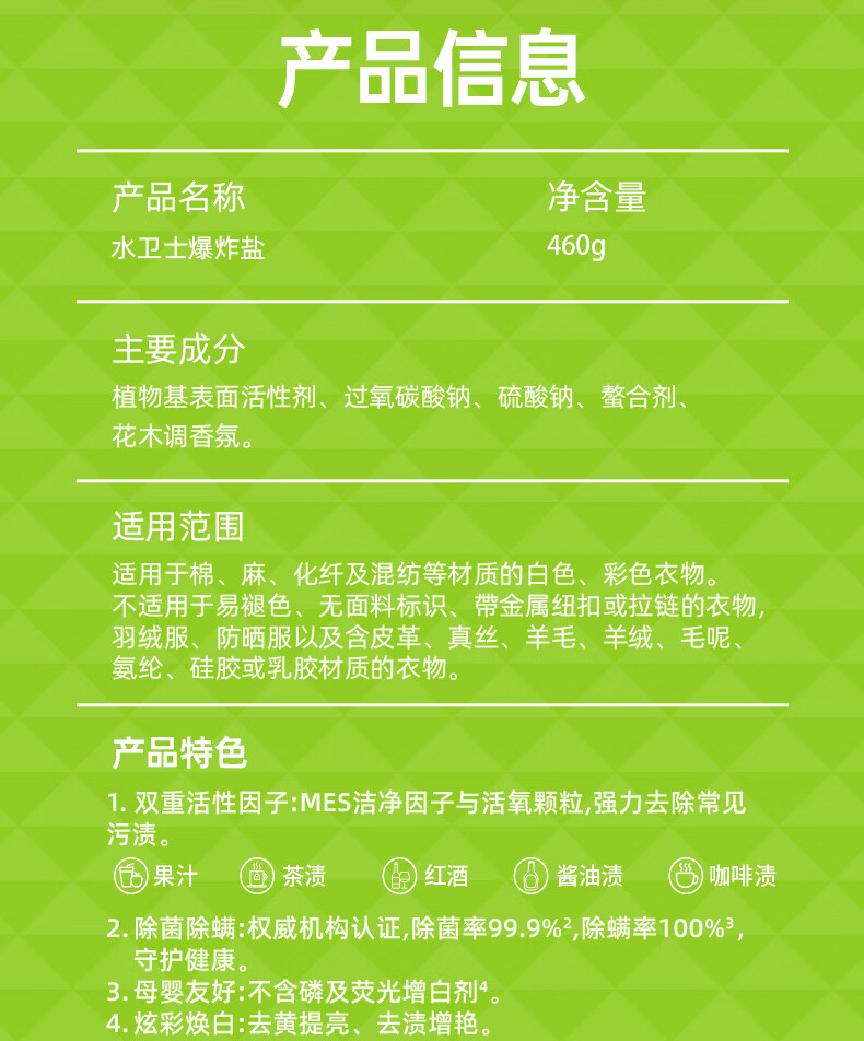 水卫士爆炸盐460g漂白粉婴儿可用除菌除螨彩漂粉白衣去渍去黄增白 【增艳亮白】爆炸盐460g*2瓶