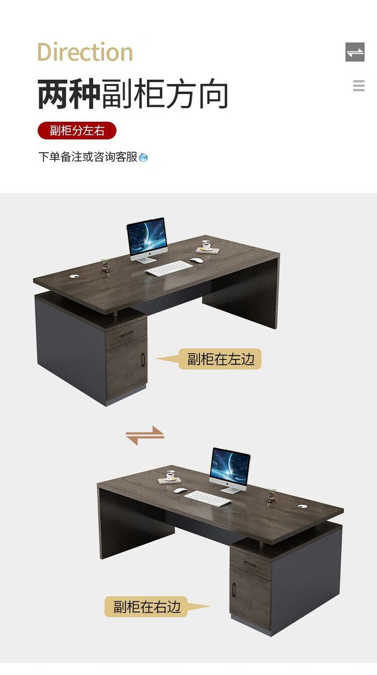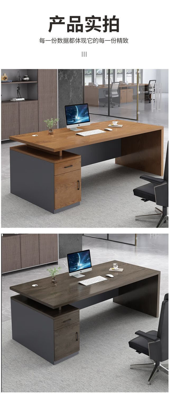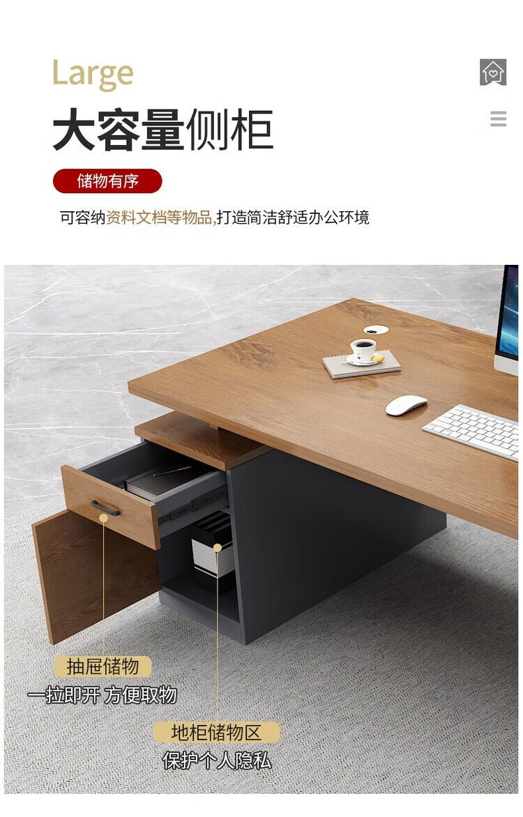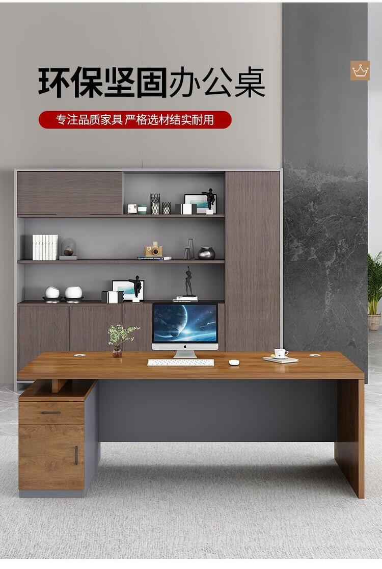弘星隆办公桌简约现代办公室家具老板桌桌椅组合经理总裁单人桌子大班台 【现货速发】 【拿铁咖色】抽屉侧柜-长120宽60高75