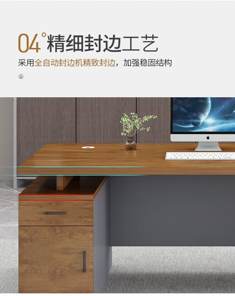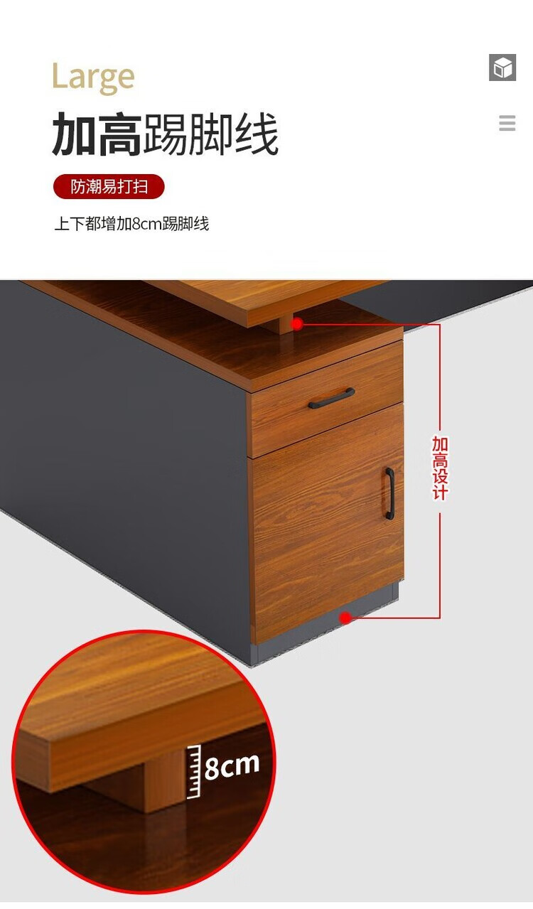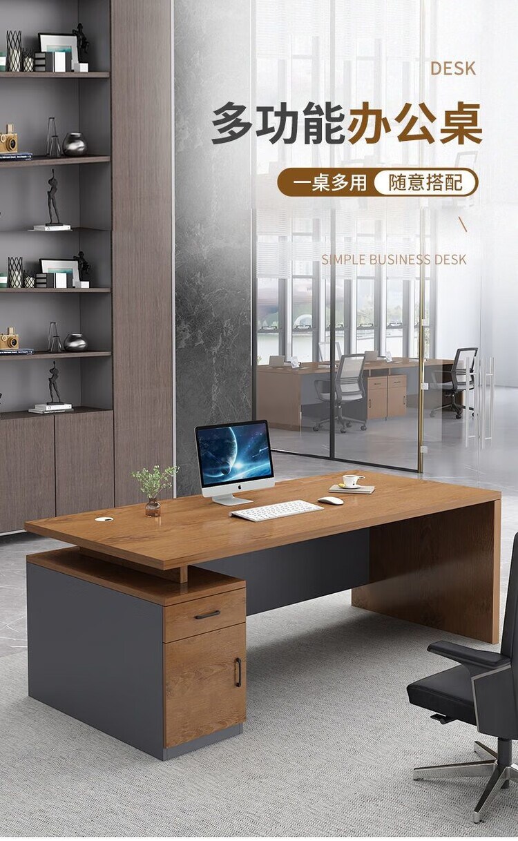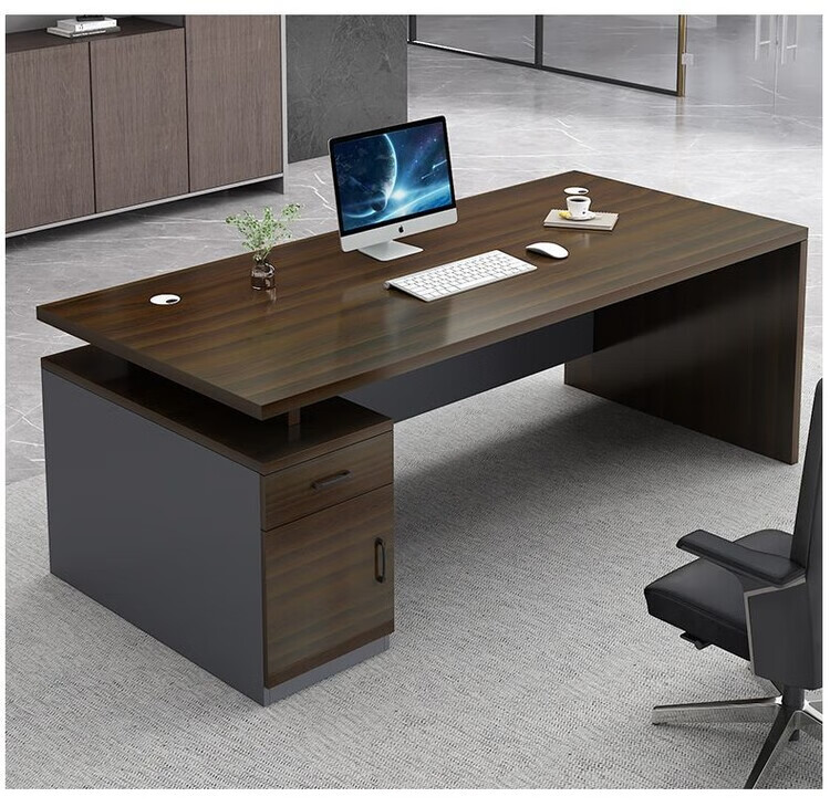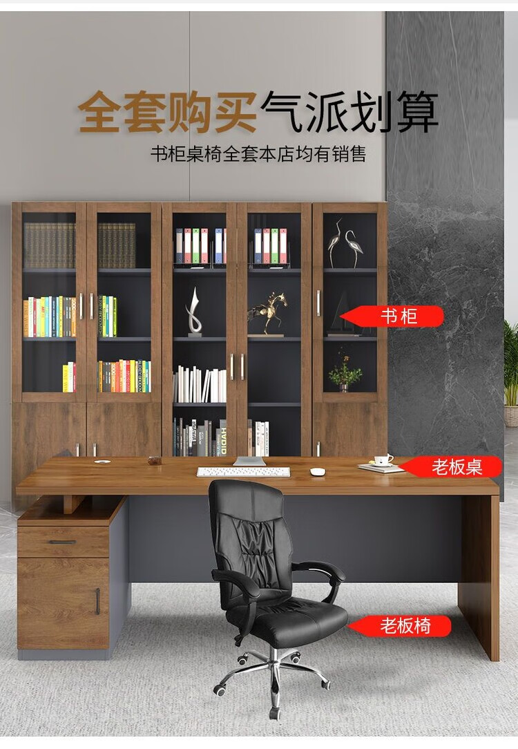 弘星隆办公桌简约现代办公室家具老板桌桌椅组合经理总裁单人桌子大班台 【现货速发】 【拿铁咖色】抽屉侧柜-长120宽60高75