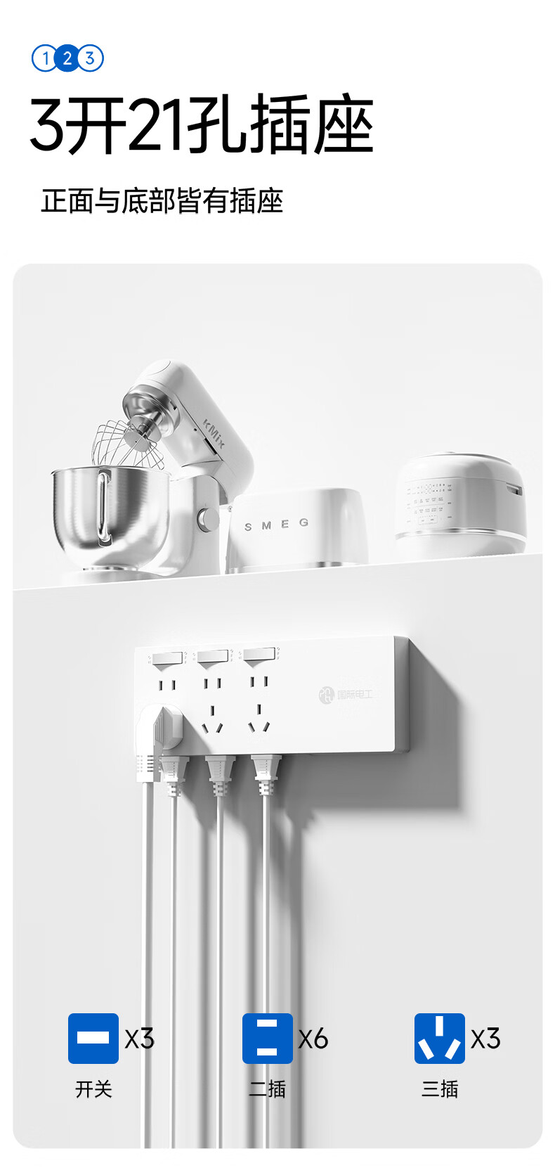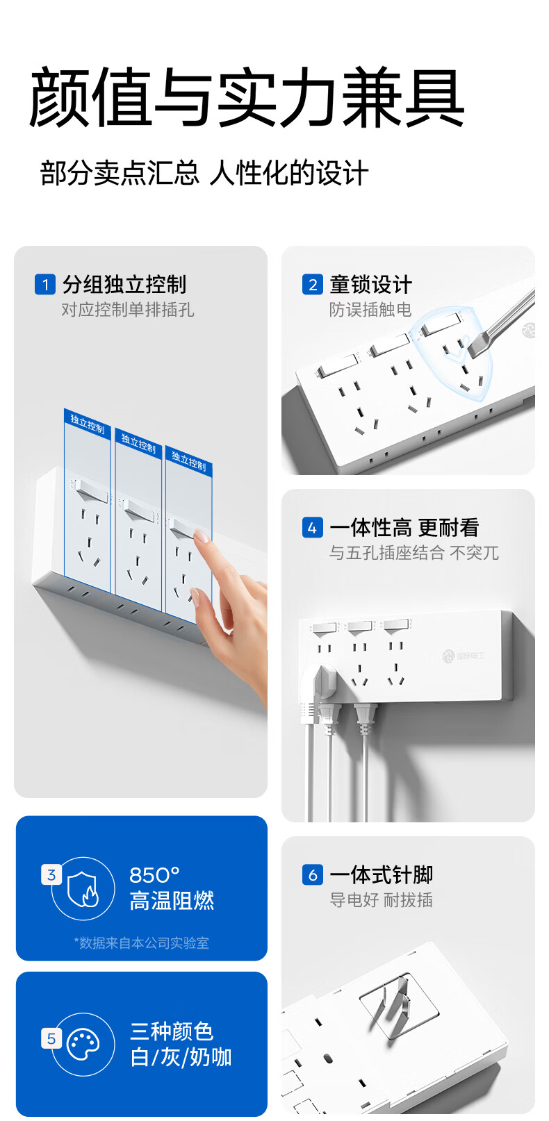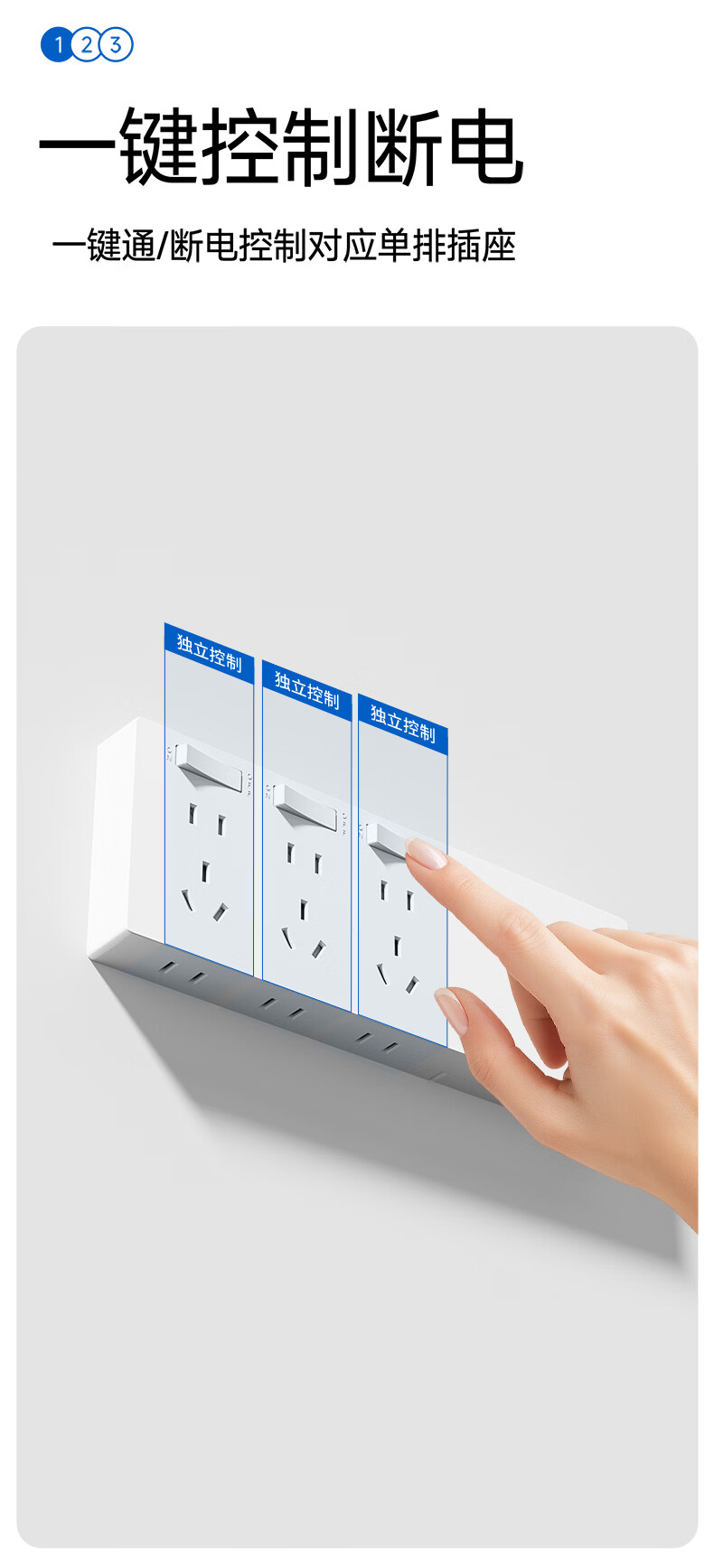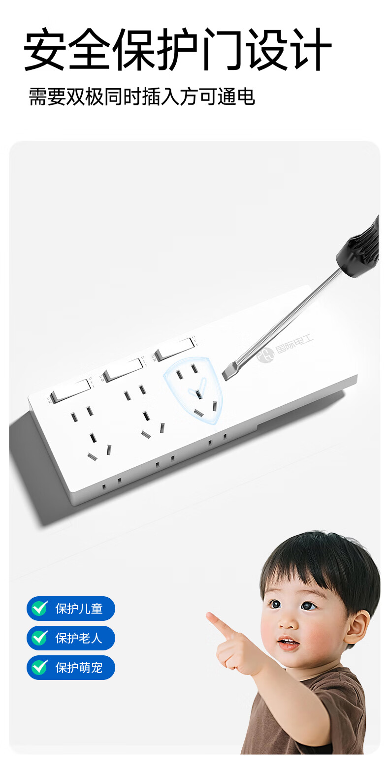 国际电工智能电动车充电保护器插头充满自动断电防过充保护电瓶带线插排 保护器插座二位十孔 0.8米【总控】