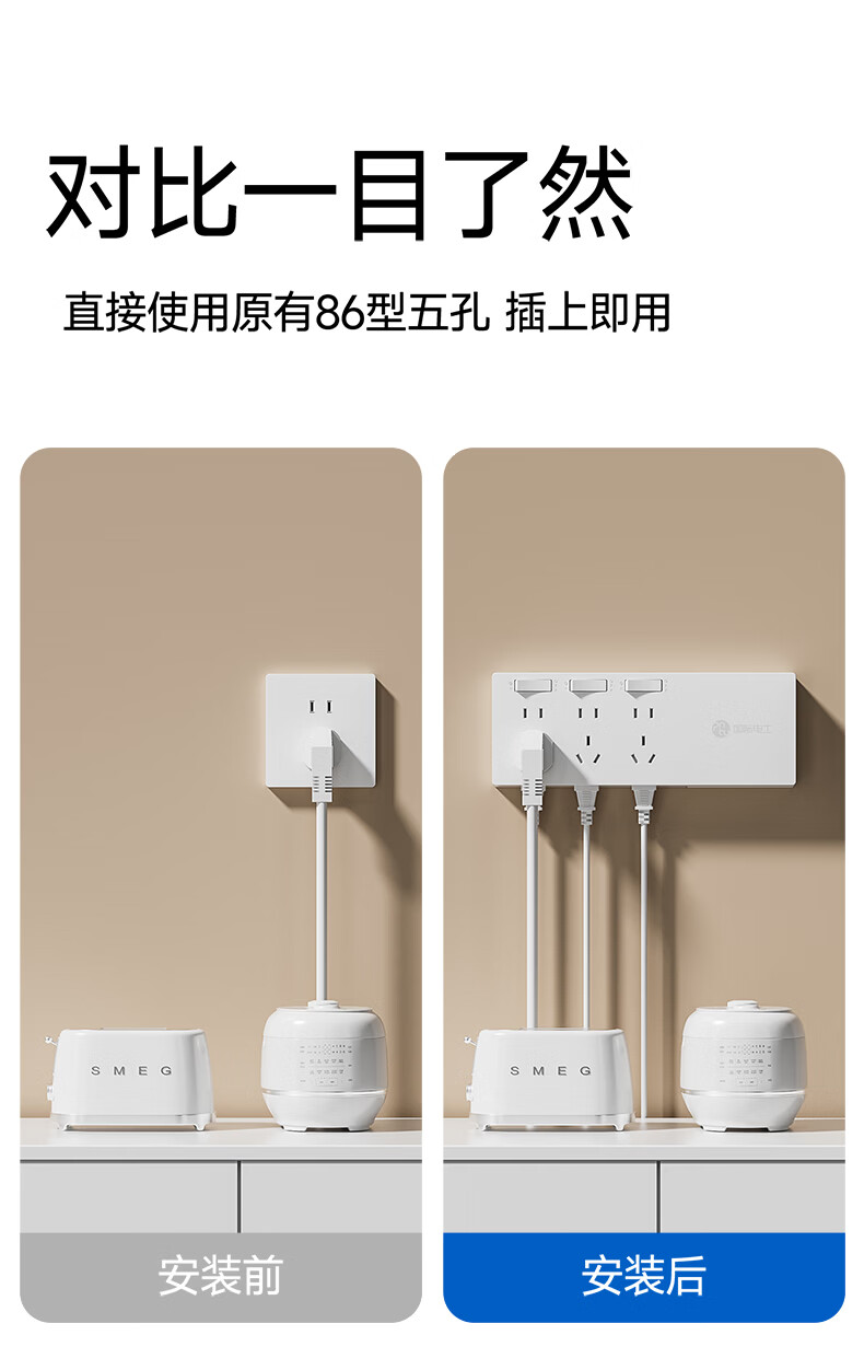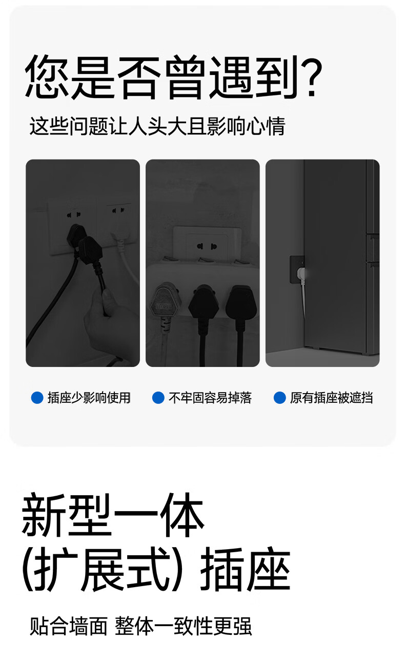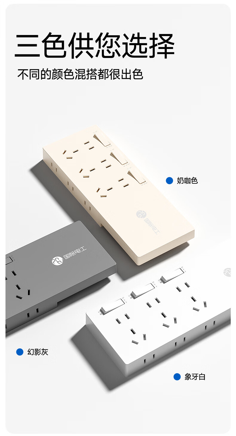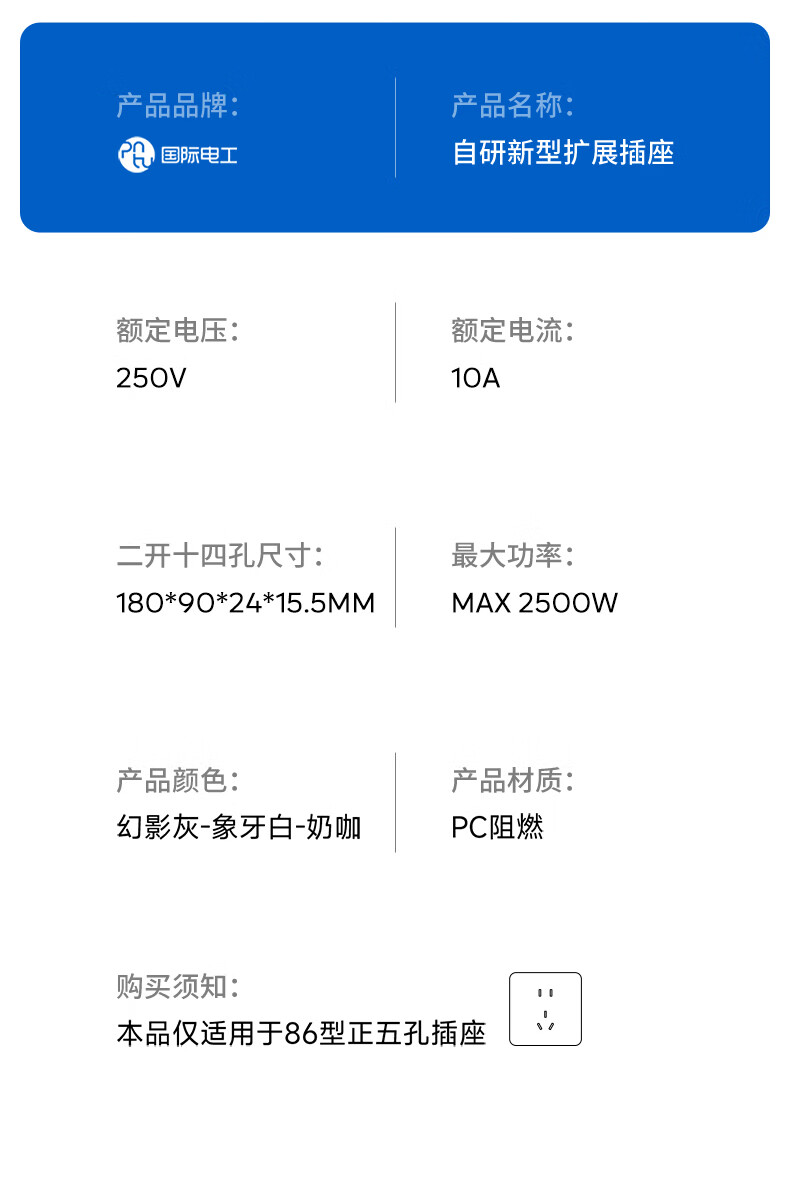 国际电工插座一转多扩展插座免打孔一转三多功能转换器插头拓展插排插线板 二开14孔向右扩展+免接线+免打孔【灰色】