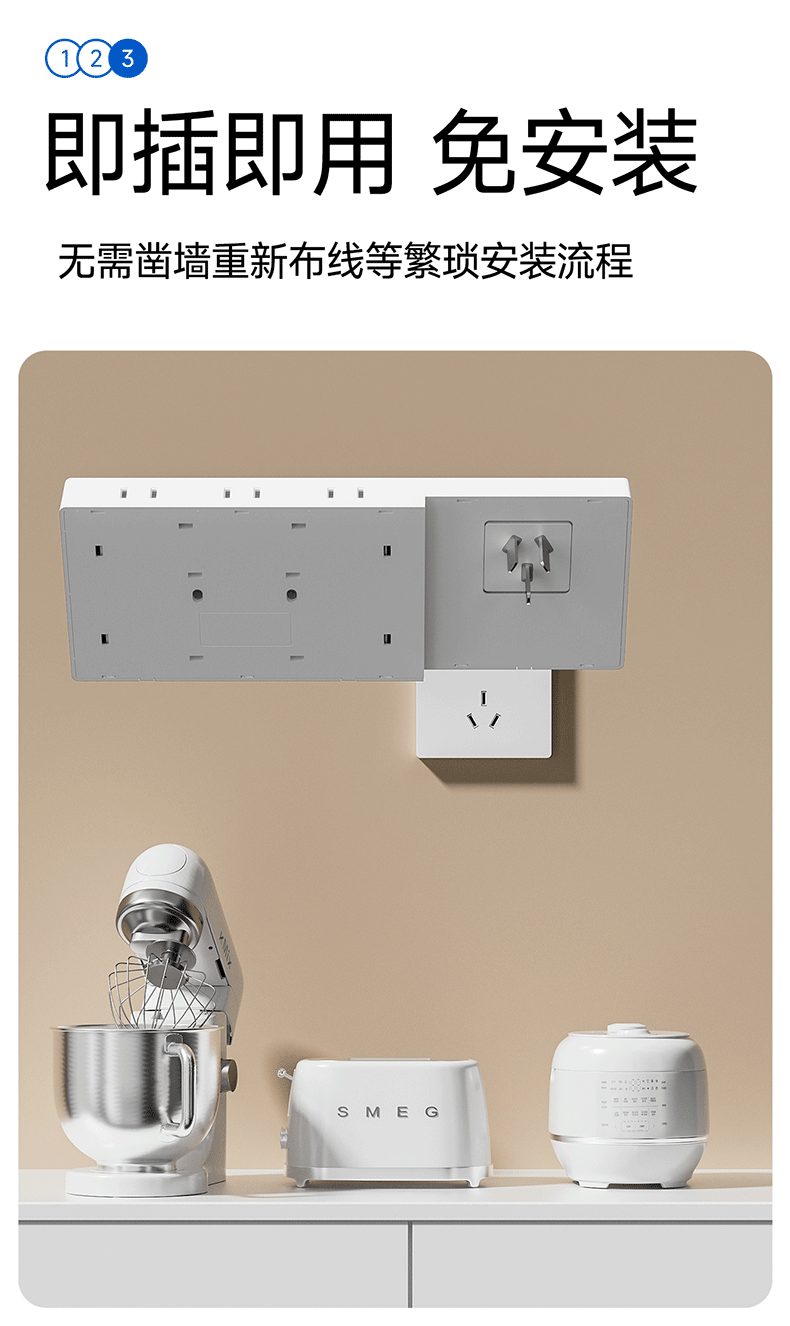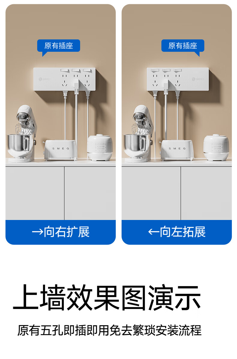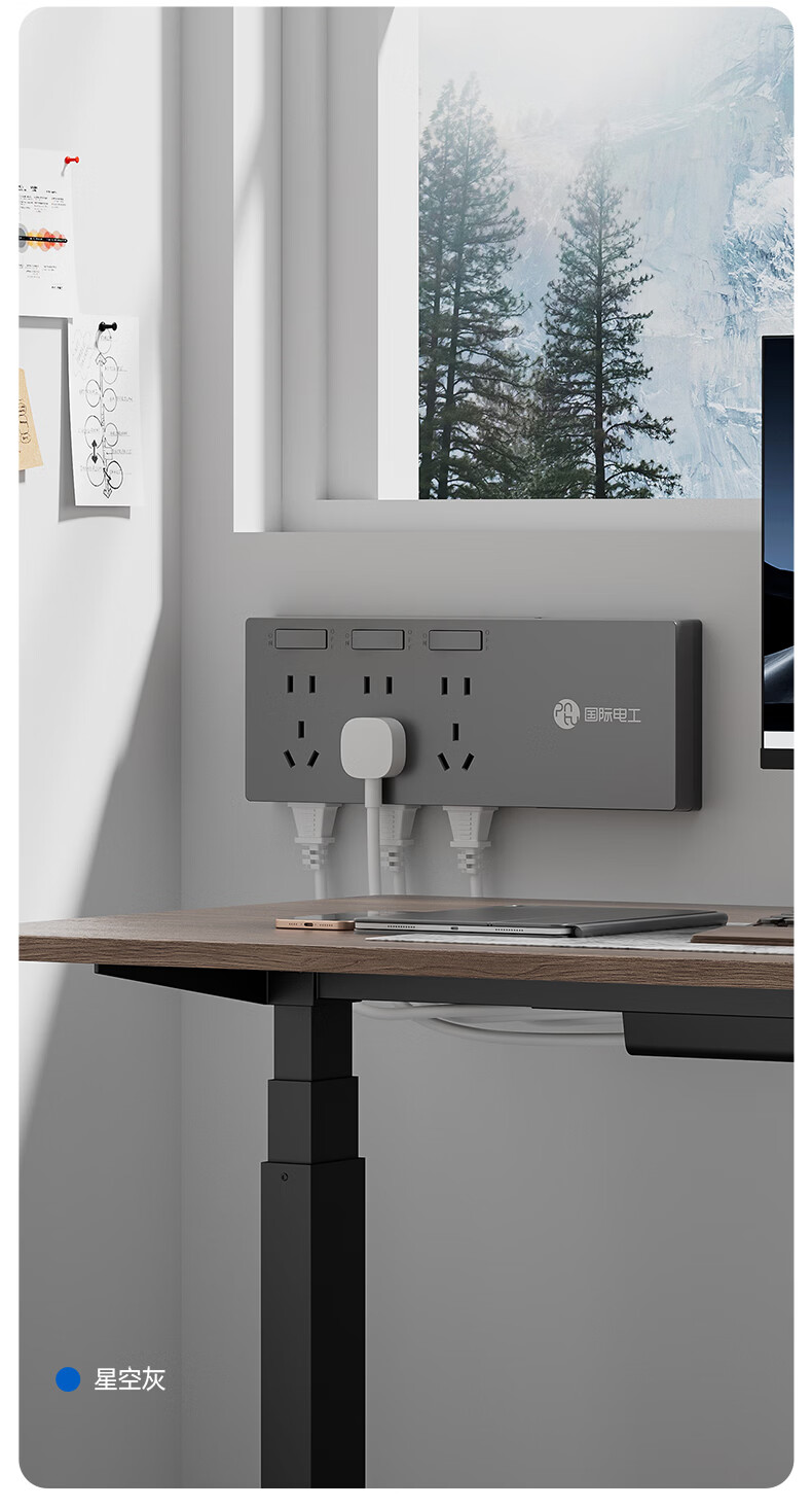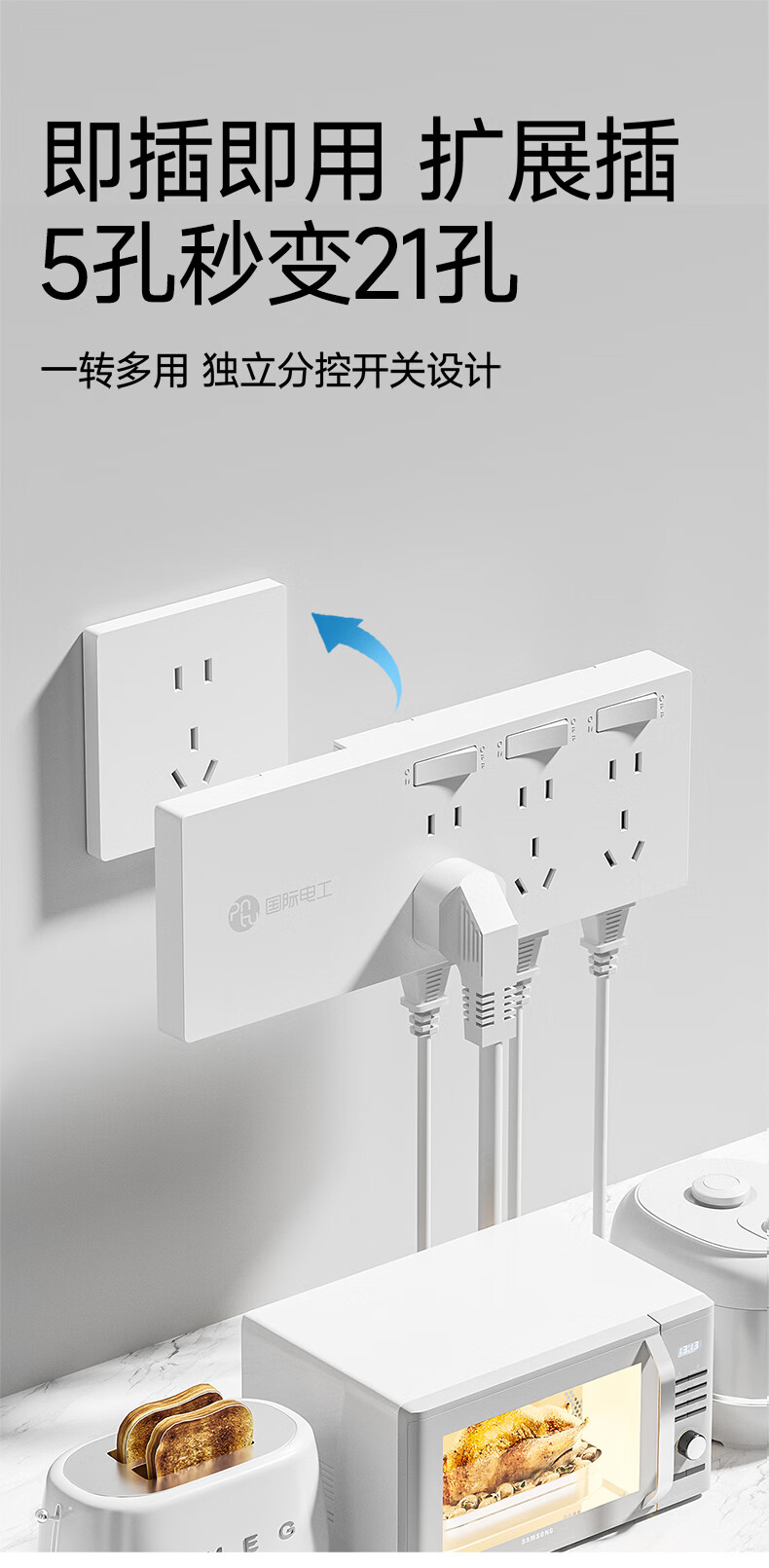 国际电工插座一转多扩展插座免打孔一转三多功能转换器插头拓展插排插线板 二开14孔向右扩展+免接线+免打孔【灰色】
