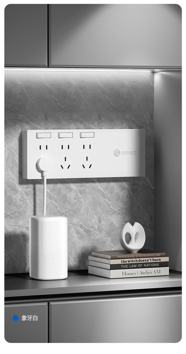 国际电工智能电动车充电保护器插头充满自动断电防过充保护电瓶带线插排 保护器插座一位五孔 0.2米【总控】