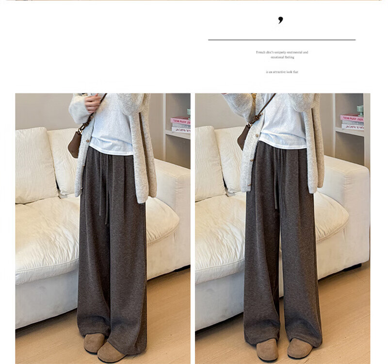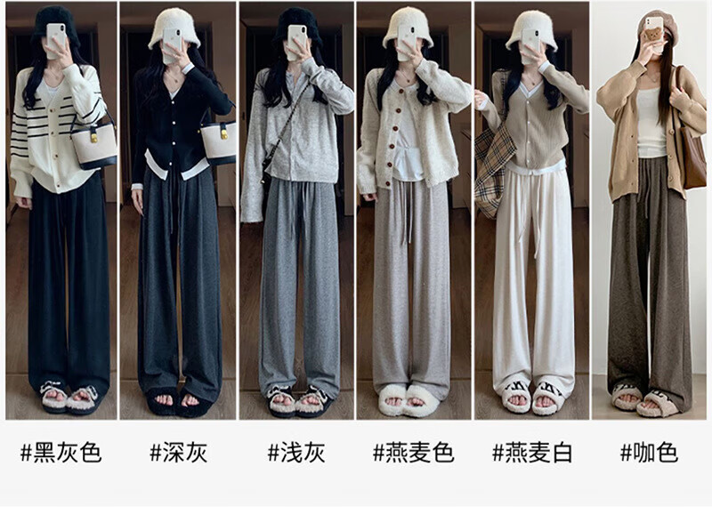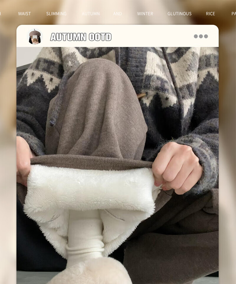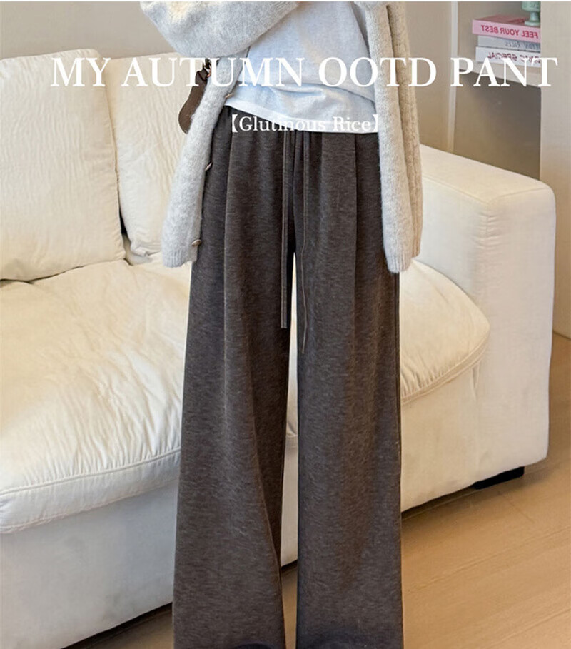 宝娜斯(BONAS)慵懒羊羔绒糯米裤子女秋冬加绒新款高腰休闲小个子直筒阔腿约450g 黑色羊羔绒 加绒【无口袋】 L 适合80-110