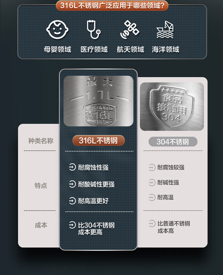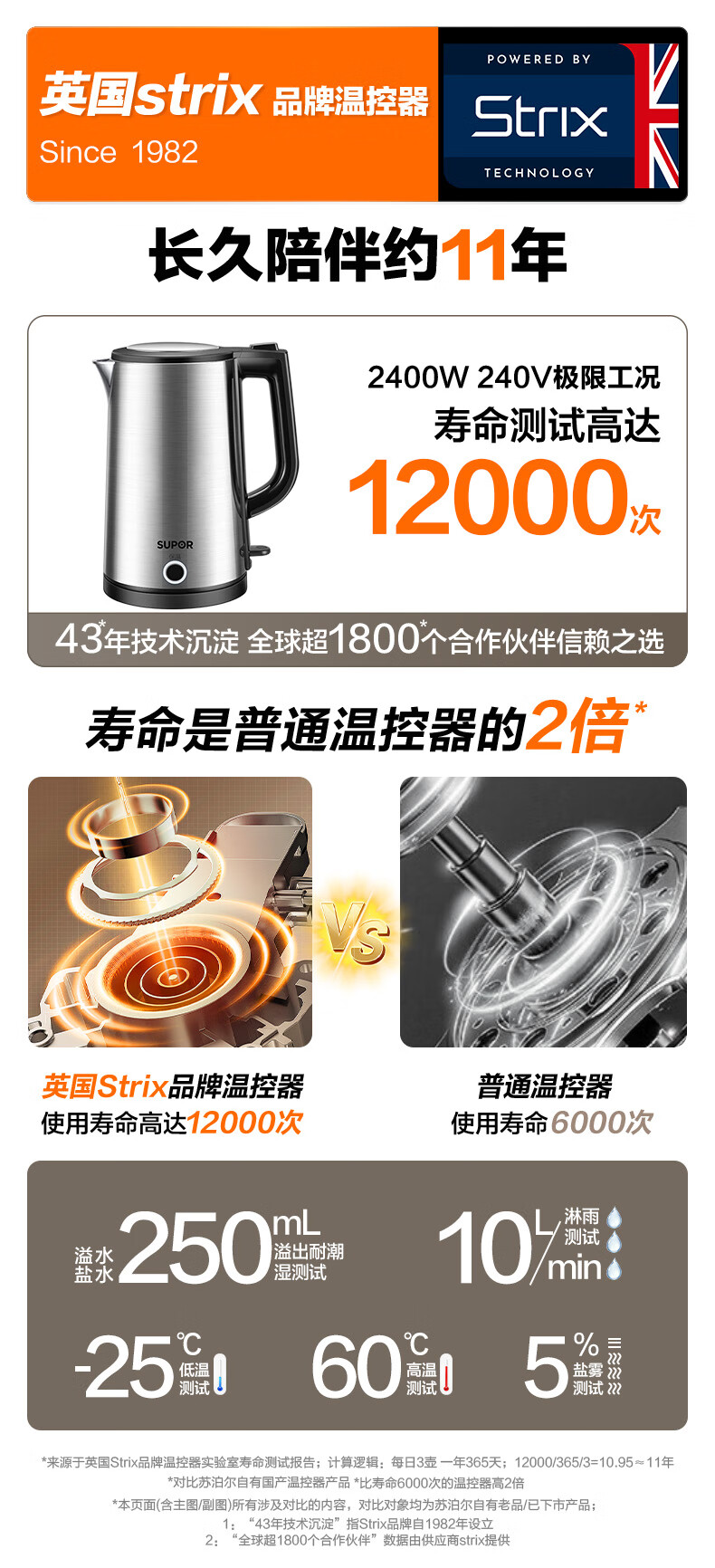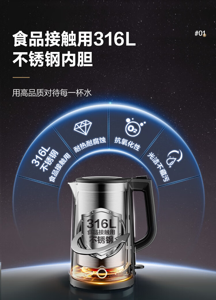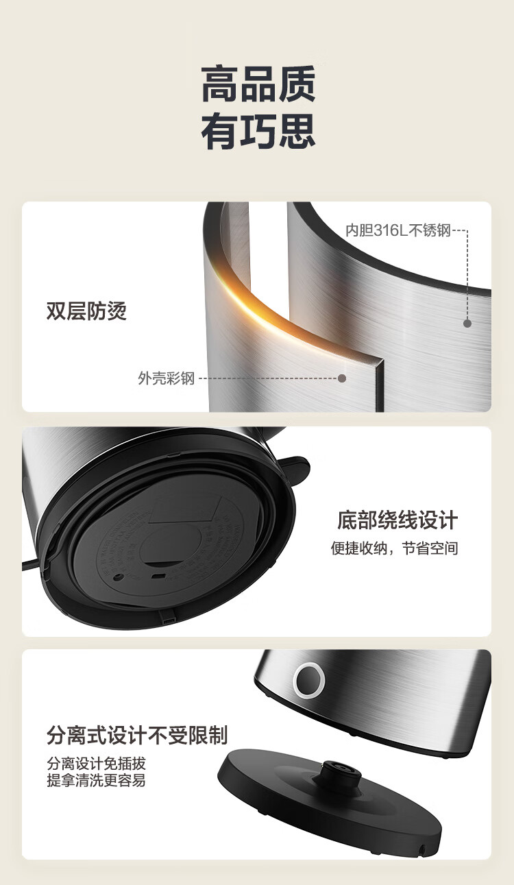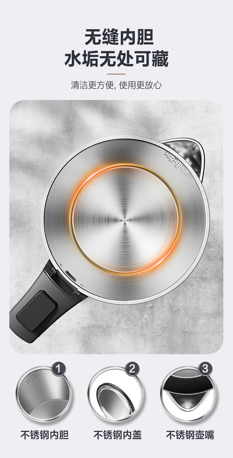 苏泊尔(SUPOR)电水壶热水壶 1.7L大容量 全钢无缝双层防烫电热水壶 316L不锈钢烧水壶 一键保温 SW-17J13P