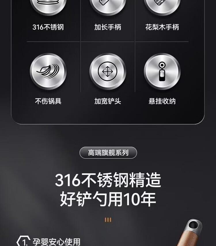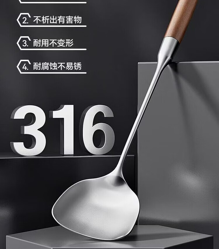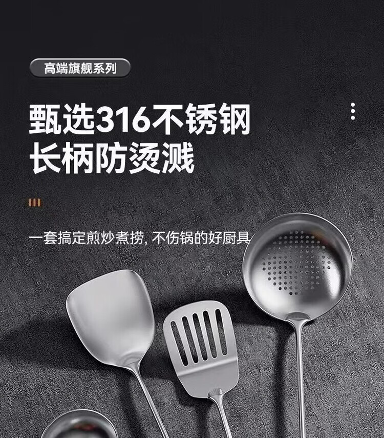咏夏德国316级不锈钢锅铲漏勺汤勺煎铲饭勺炒菜锅厨房家用品厨具套装 铲子 【一件】