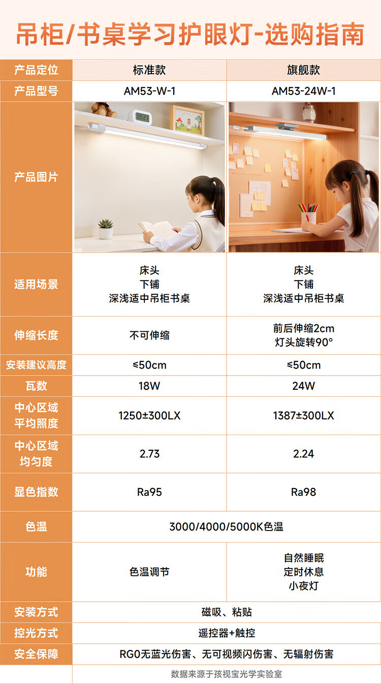孩视宝护眼台灯悬挂书架吊柜桌磁吸酷毙灯学生儿童学习阅读台灯 【性价比之选】18W读写磁吸灯 AM53-W-1