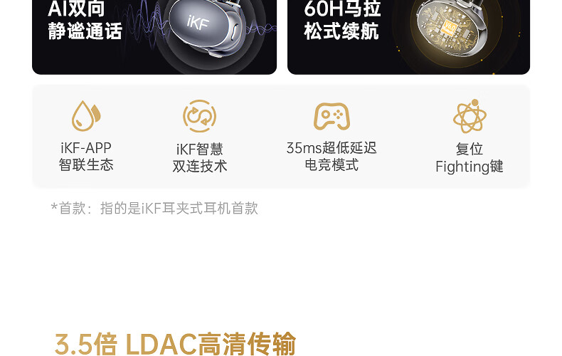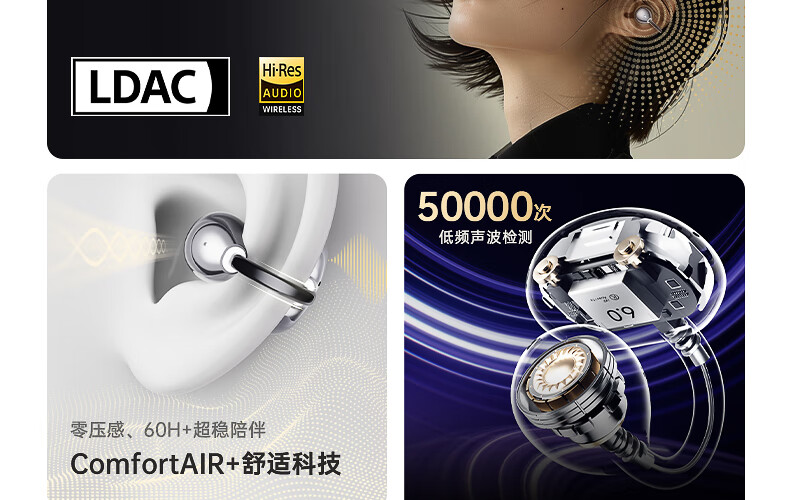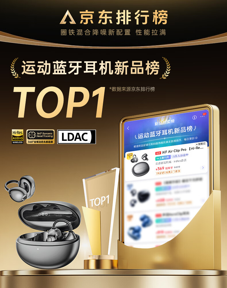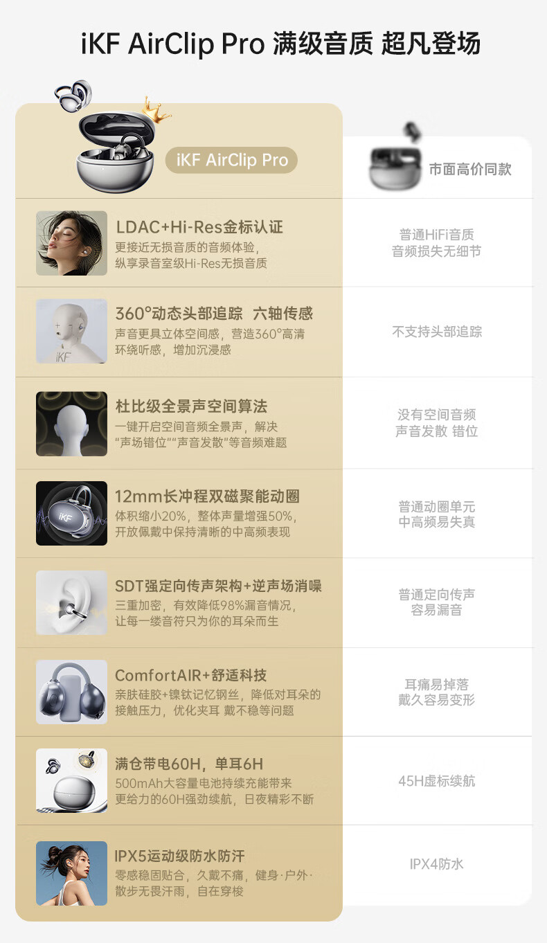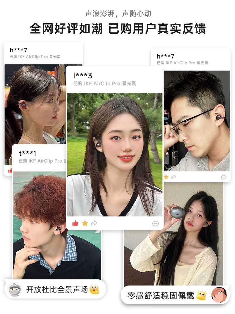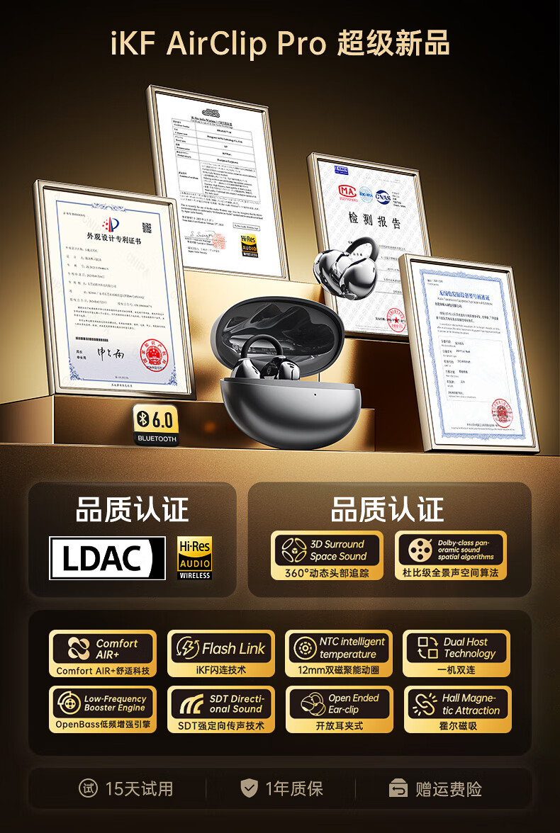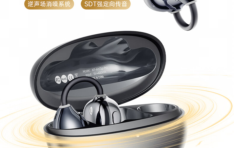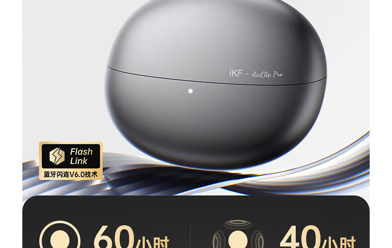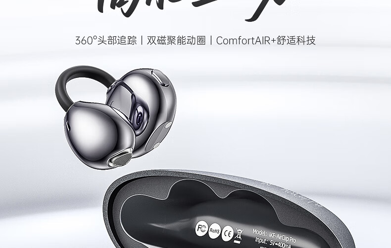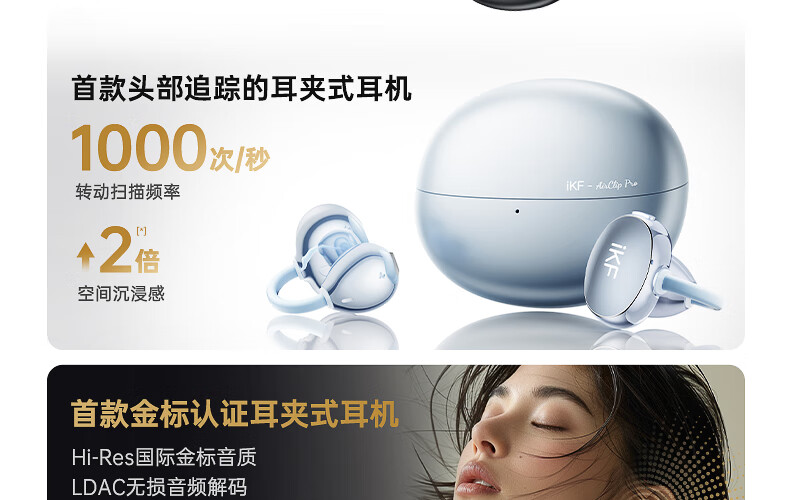 iKF AirClip Pro【头部追踪】耳夹式无线蓝牙耳机挂耳骨气传导LDAC双金标音乐运动适用于华为苹果 【星际黑】双磁聚能动圈+久戴无感