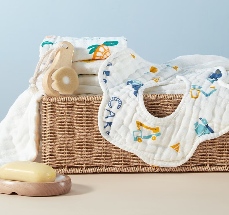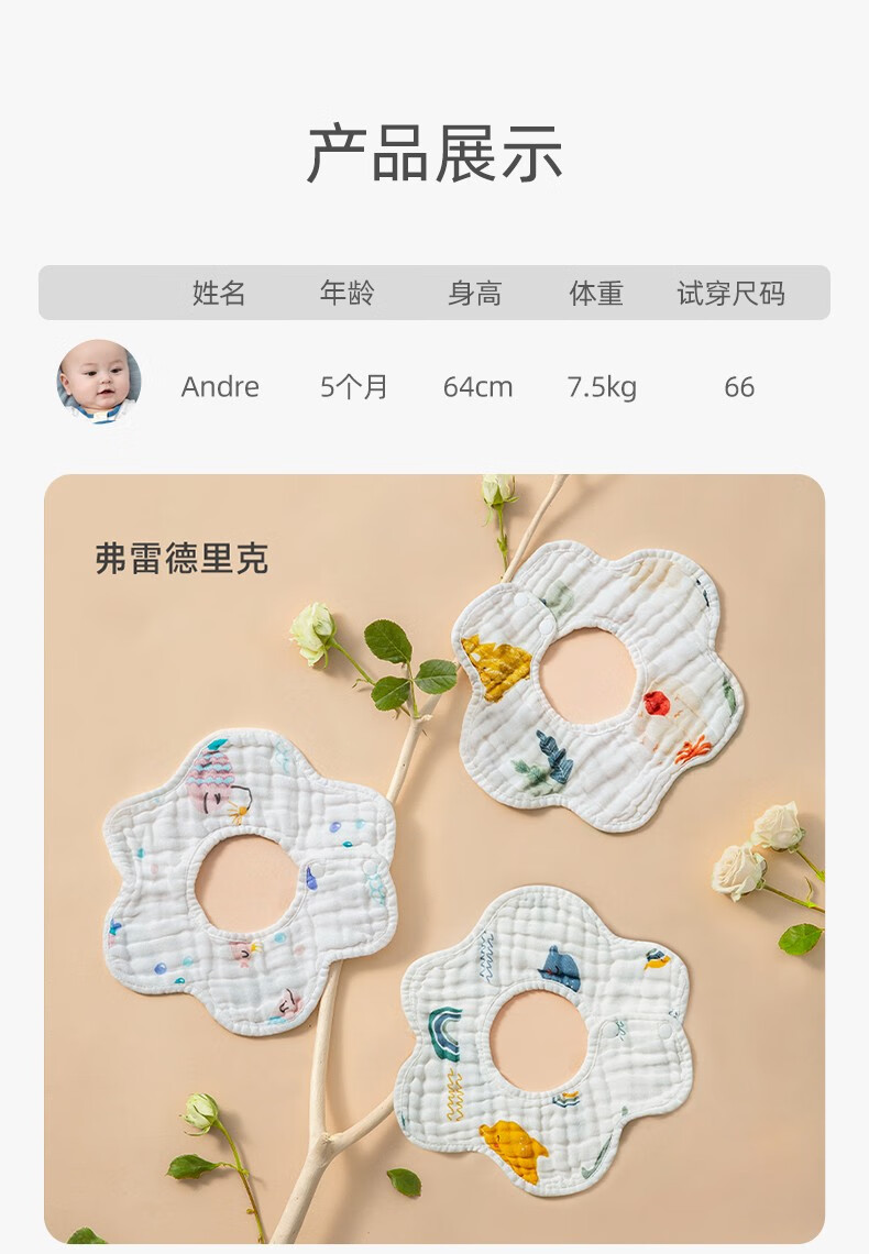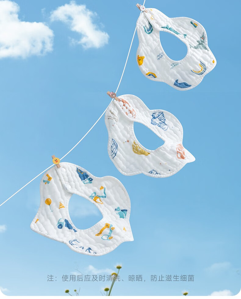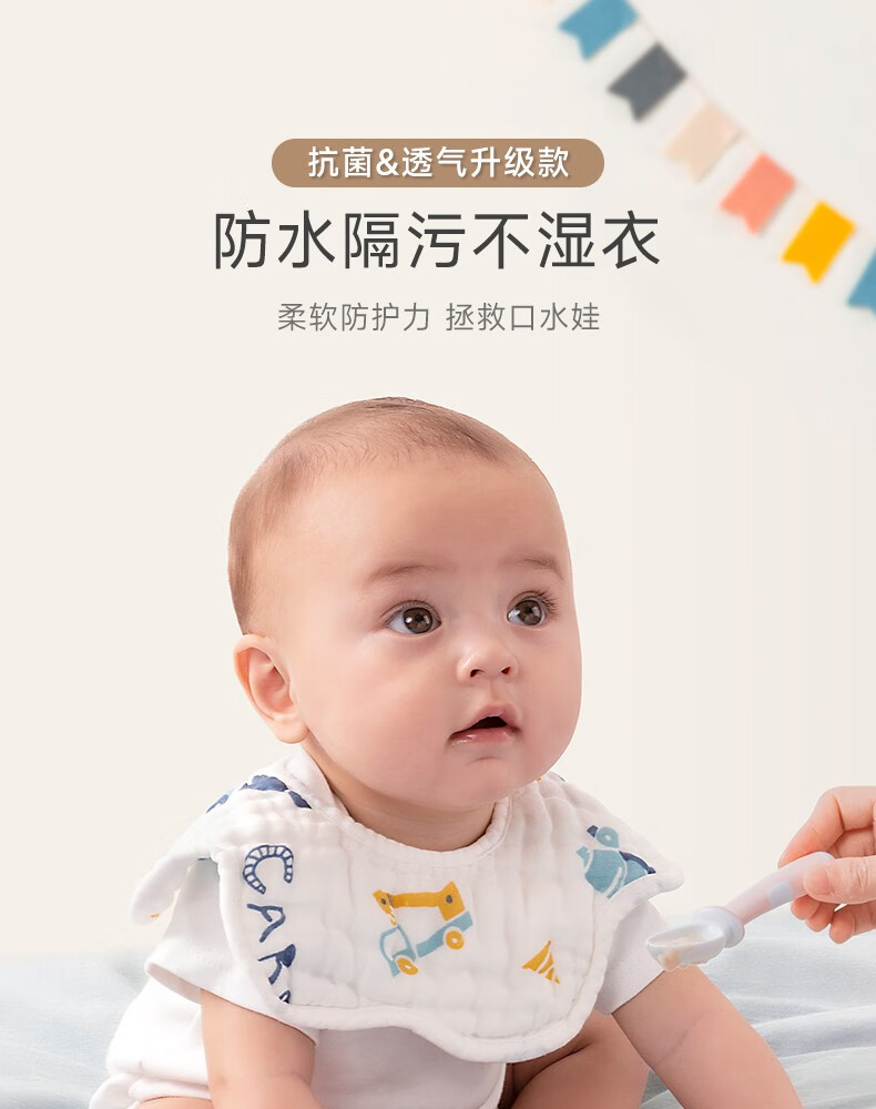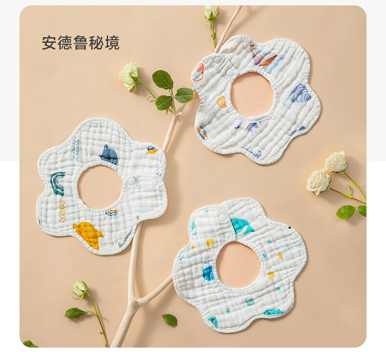 贝肽斯口水巾婴儿围嘴纯棉新生儿防水防吐奶宝宝饭兜围兜 4层*安德鲁秘境【抑菌透气】 【基础款*25×25cm】3条装