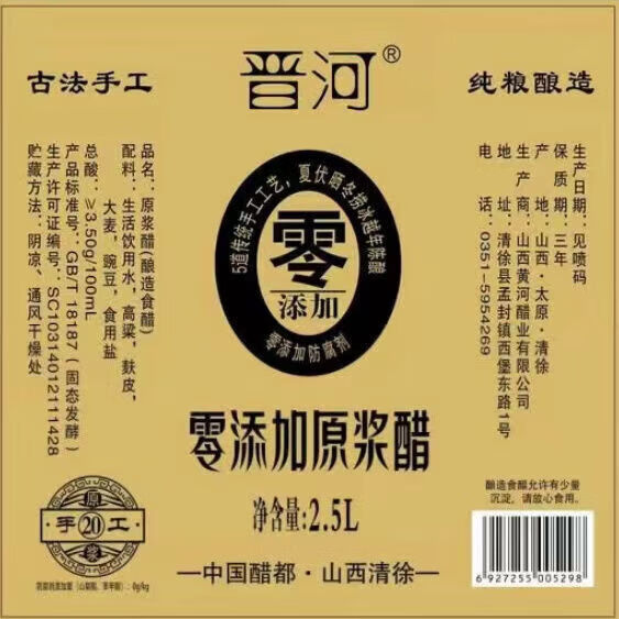 食怀山西晋河原浆醋纯粮食酿造5斤装家用更放心营养丰富健康美味 1桶3.5度 白醋