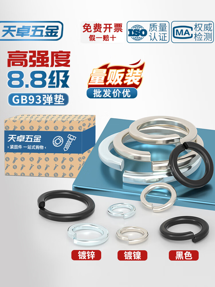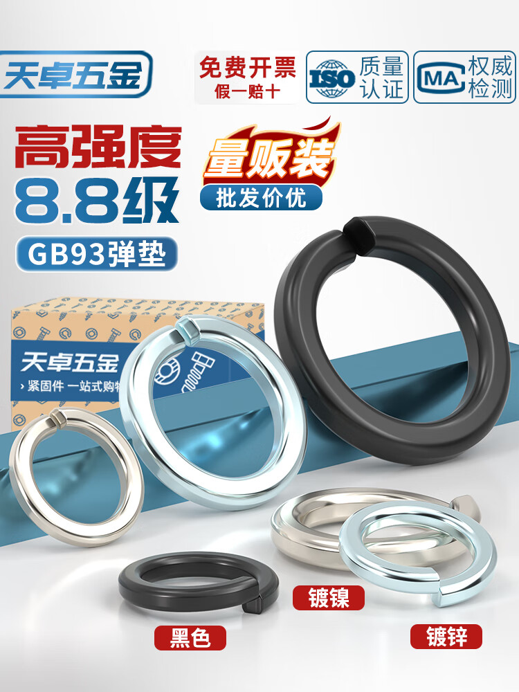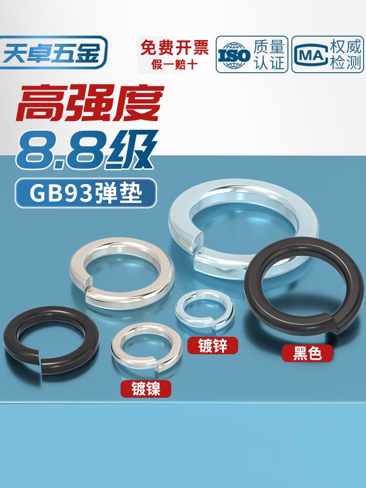 天卓五金国标8.8级65MN锰加硬黑色弹垫镀锌镀镍弹簧垫圈M3M4M5M6M8M10-M48 黑色M5-500个