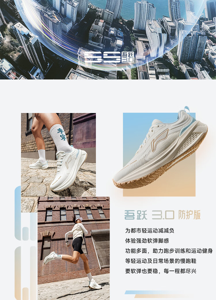 李宁吾跃3.0防护版丨防泼水跑步鞋女25秋冬反光休闲慢跑鞋ARSV094