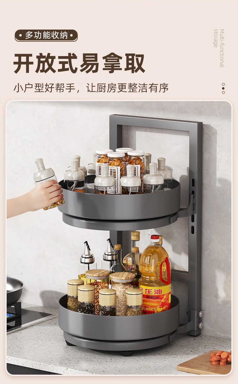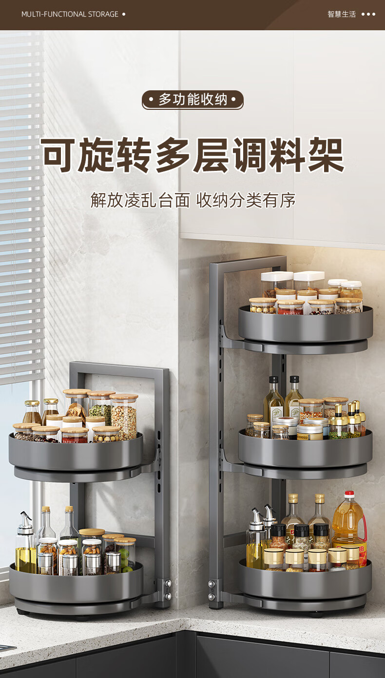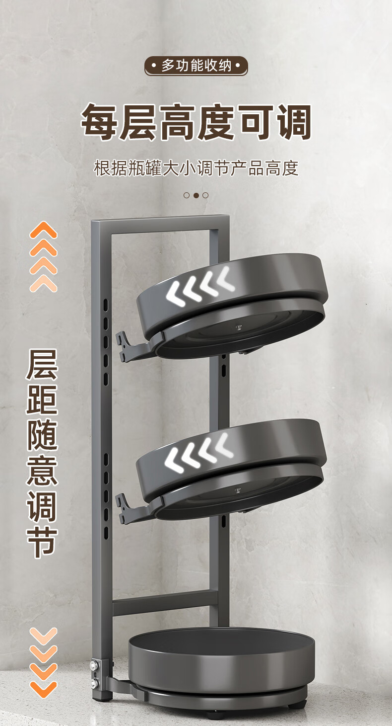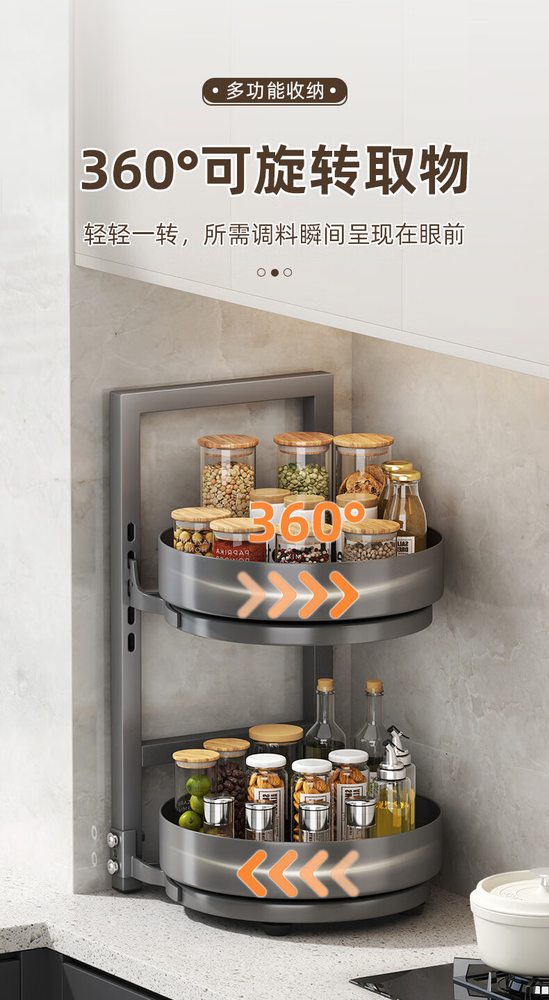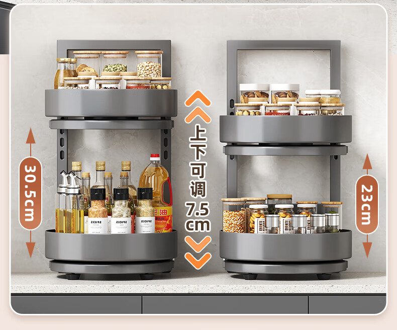 居厨厨旋转调料架厨房置物架调料置物架双层家用台面调味品收纳架 枪灰色【360°旋转-层距任意调】双层