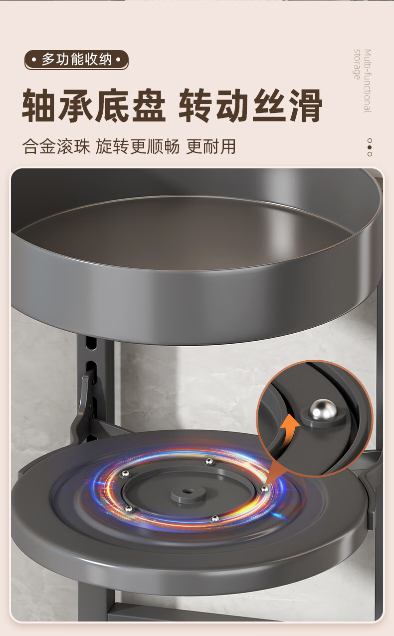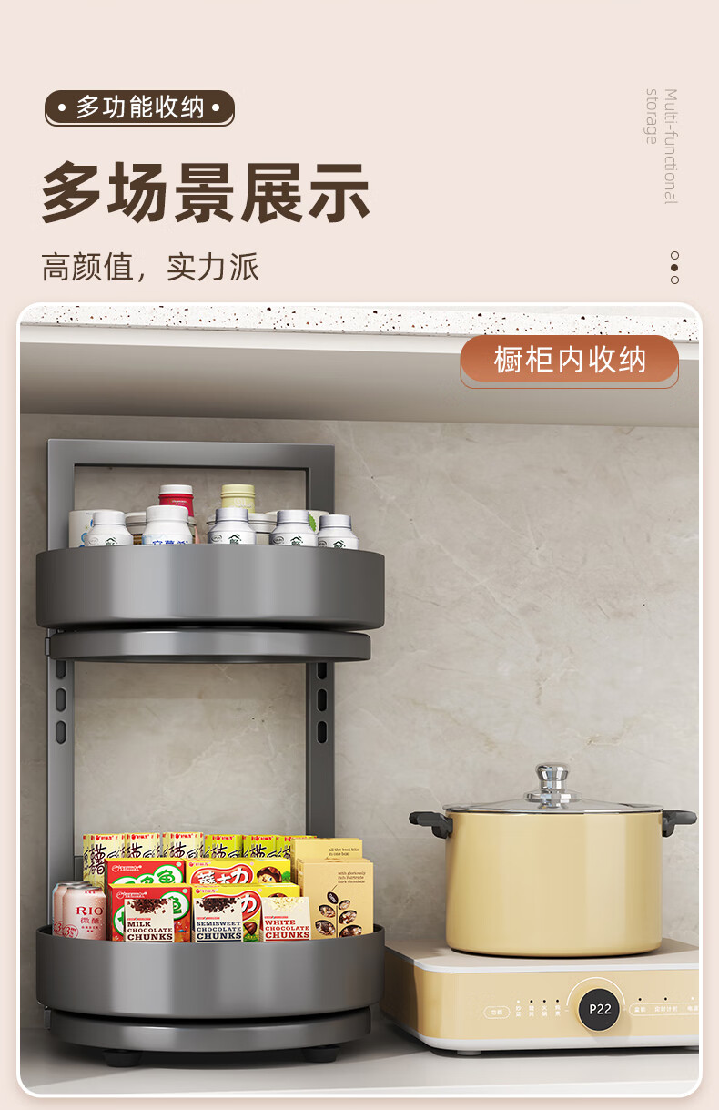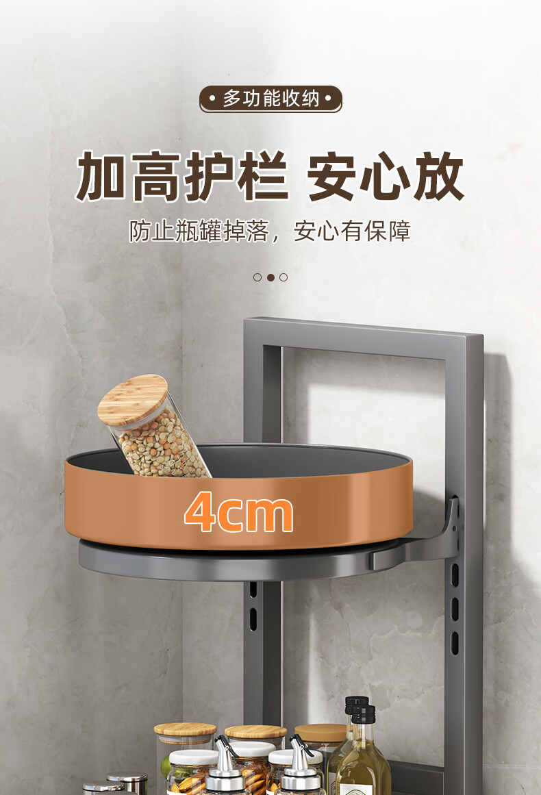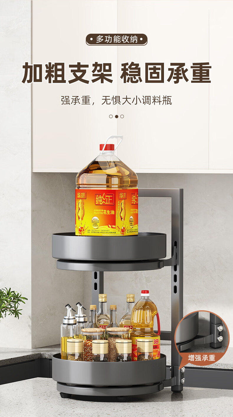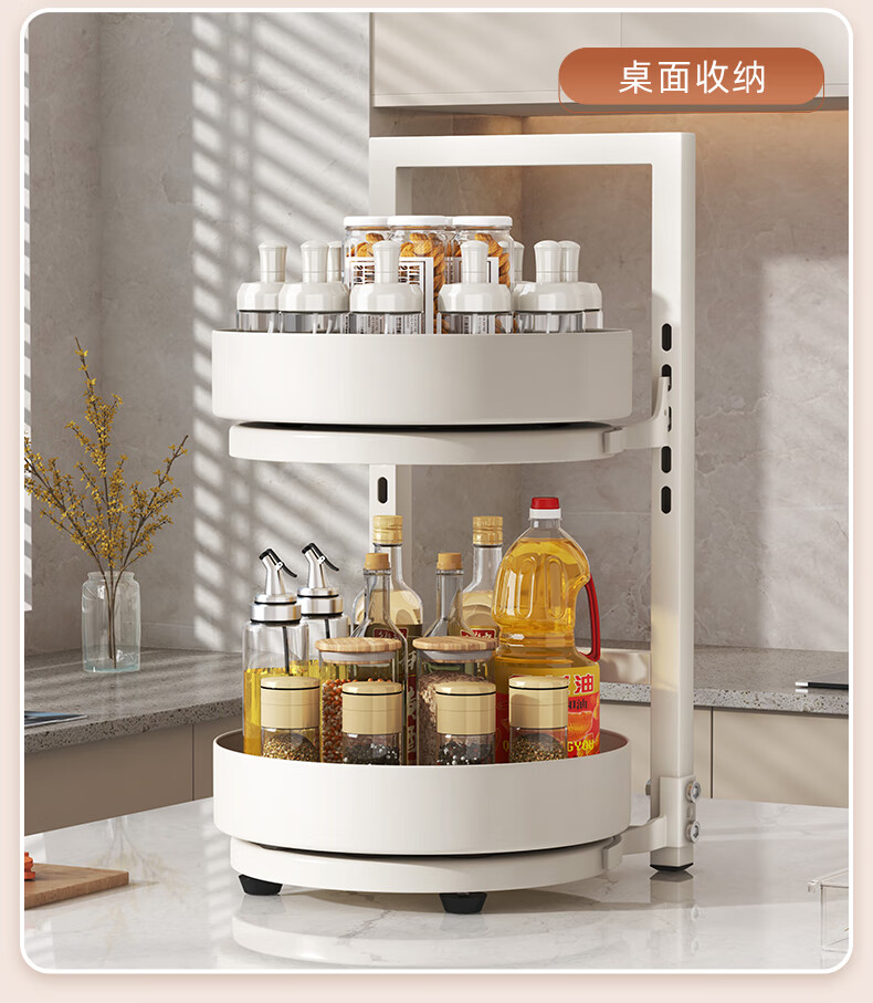居厨厨旋转调料架厨房置物架调料置物架双层家用台面调味品收纳架 枪灰色【360°旋转-层距任意调】双层