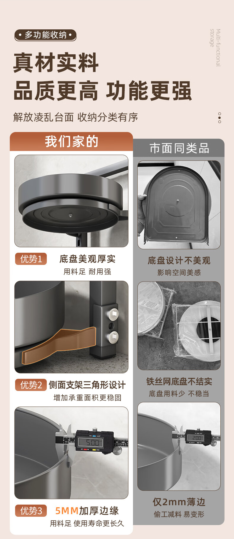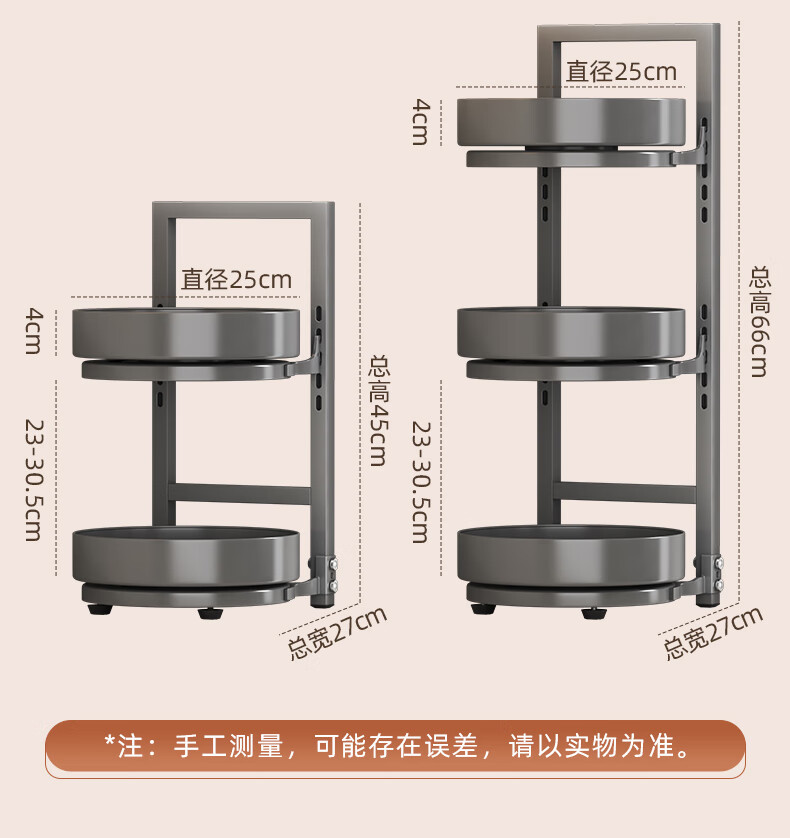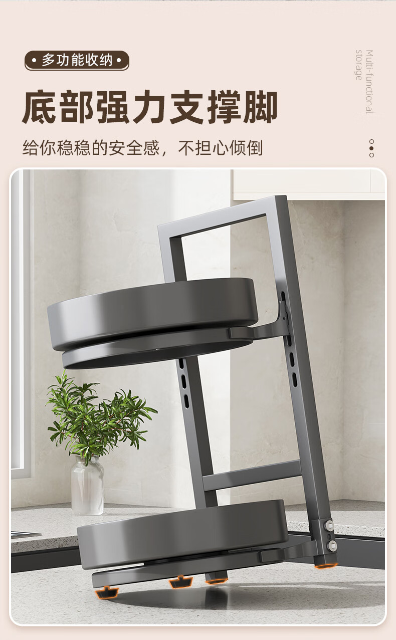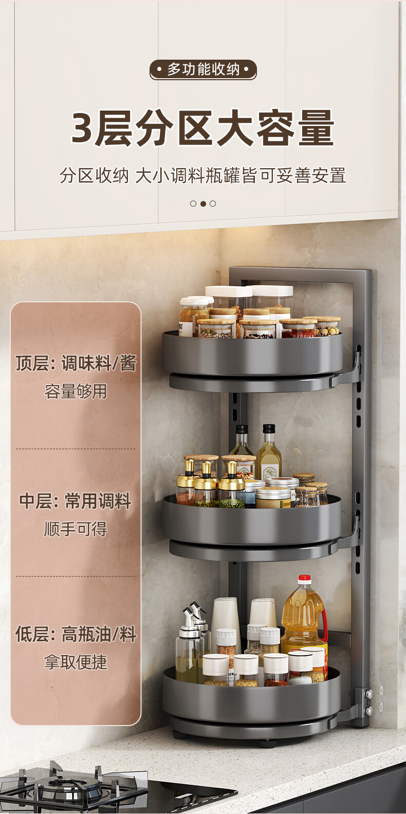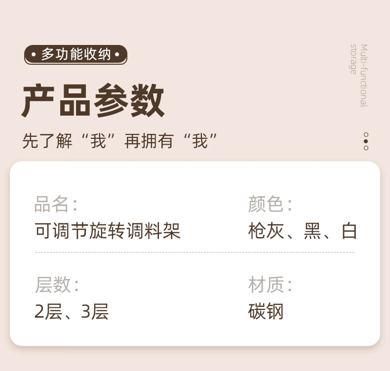 居厨厨旋转调料架厨房置物架调料置物架双层家用台面调味品收纳架 枪灰色【360°旋转-层距任意调】双层