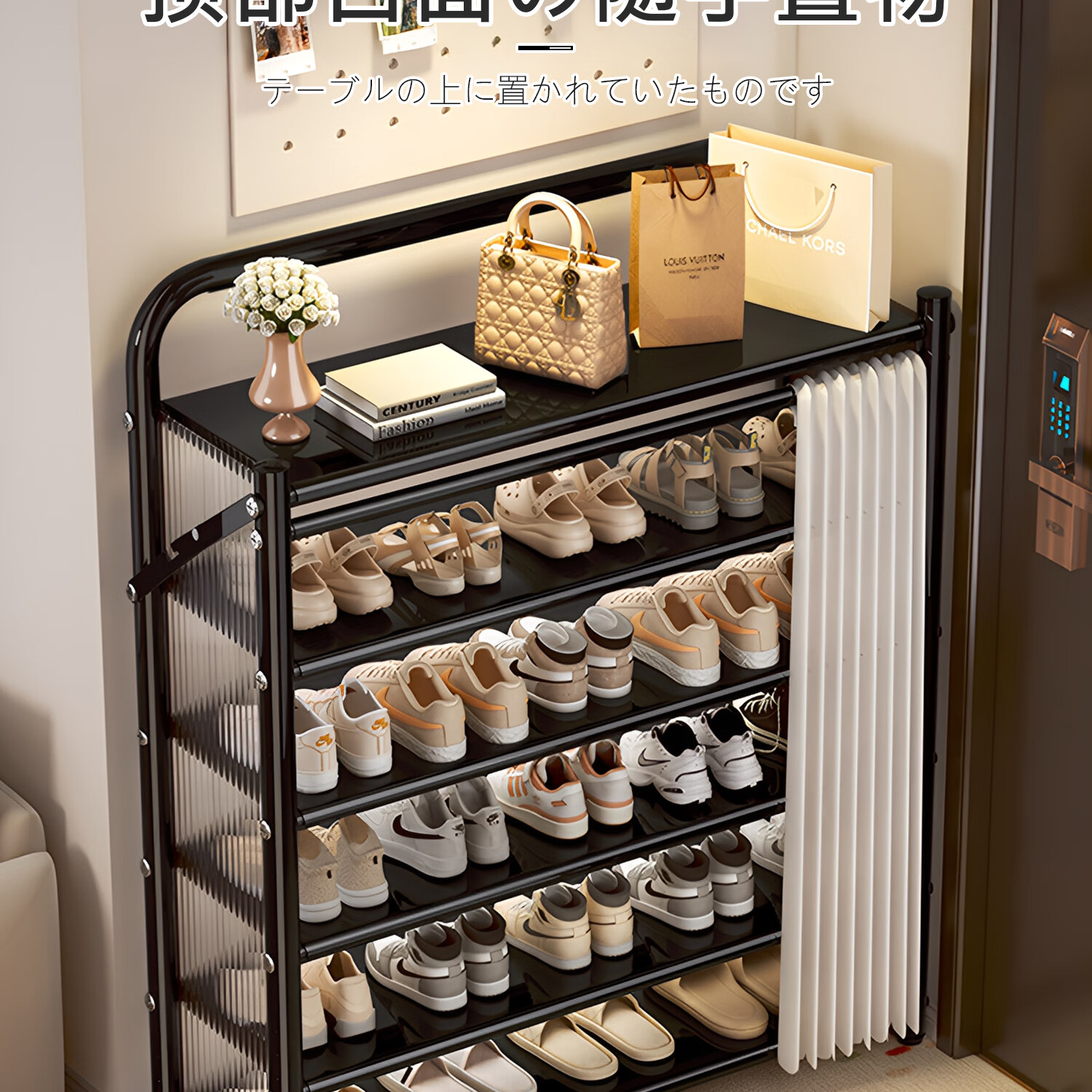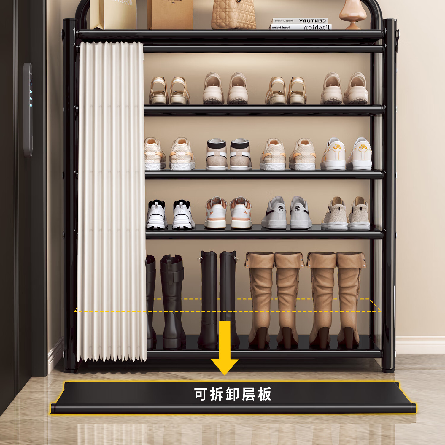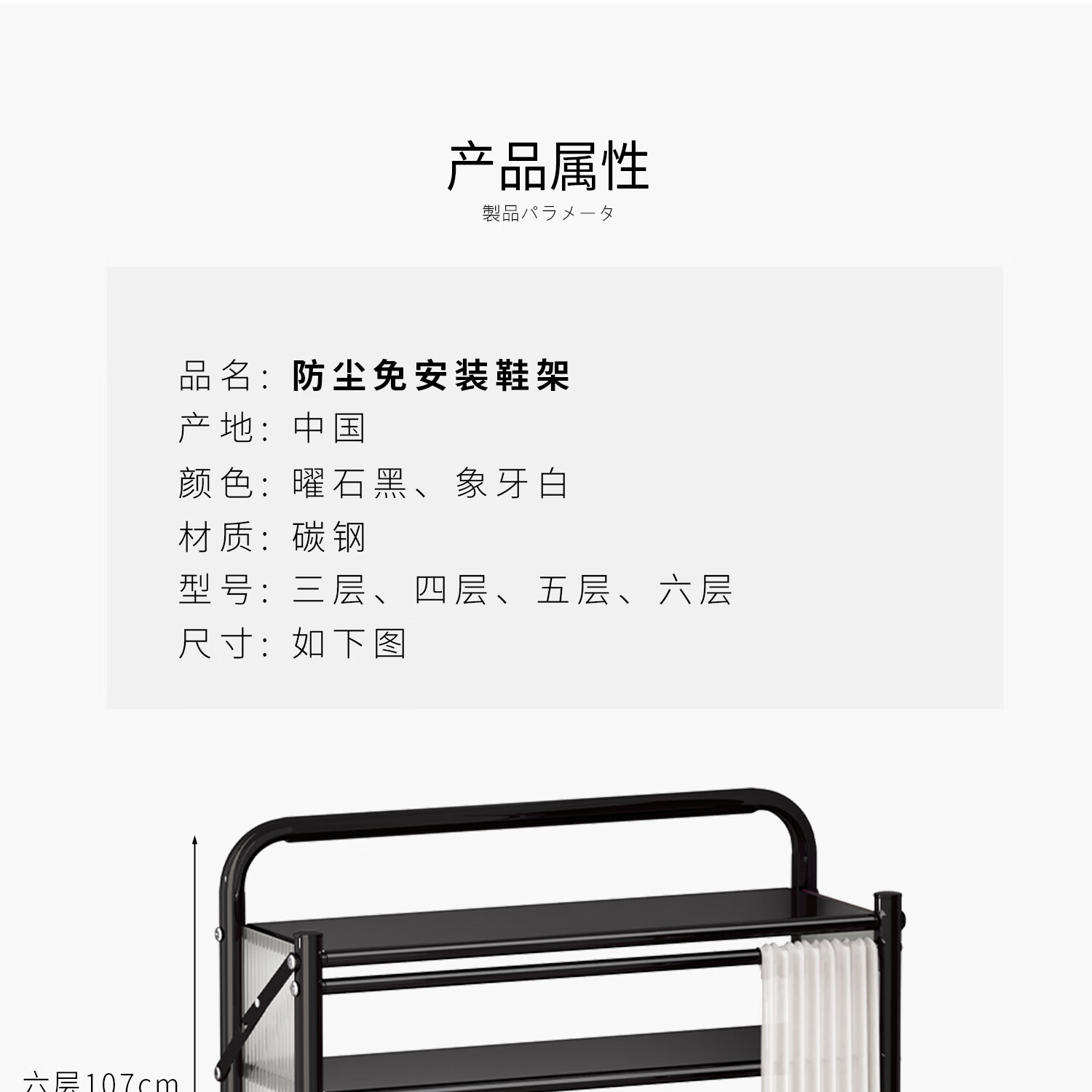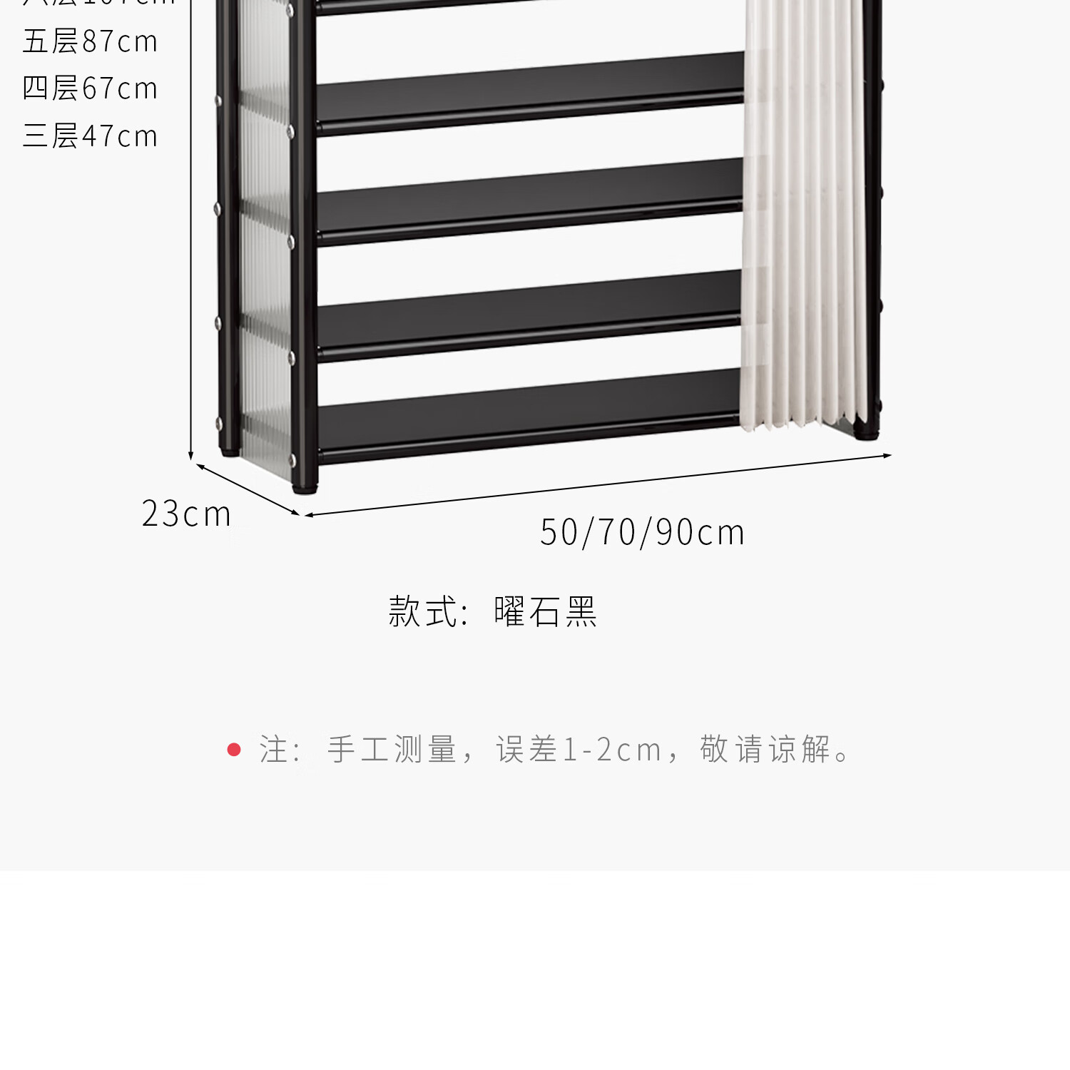 吱凡日本鞋架多层家用门口小窄入户超薄折叠鞋架子室内简易置物架鞋柜 【6层长50cm】曜石黑【顶部置物稳固不倒】