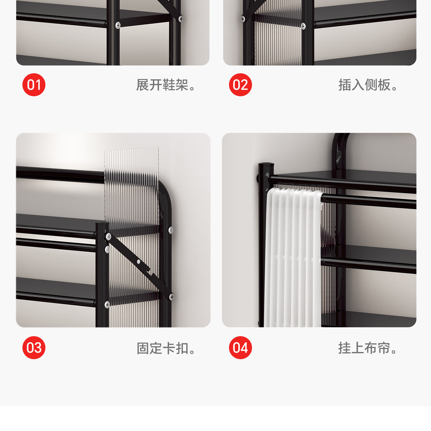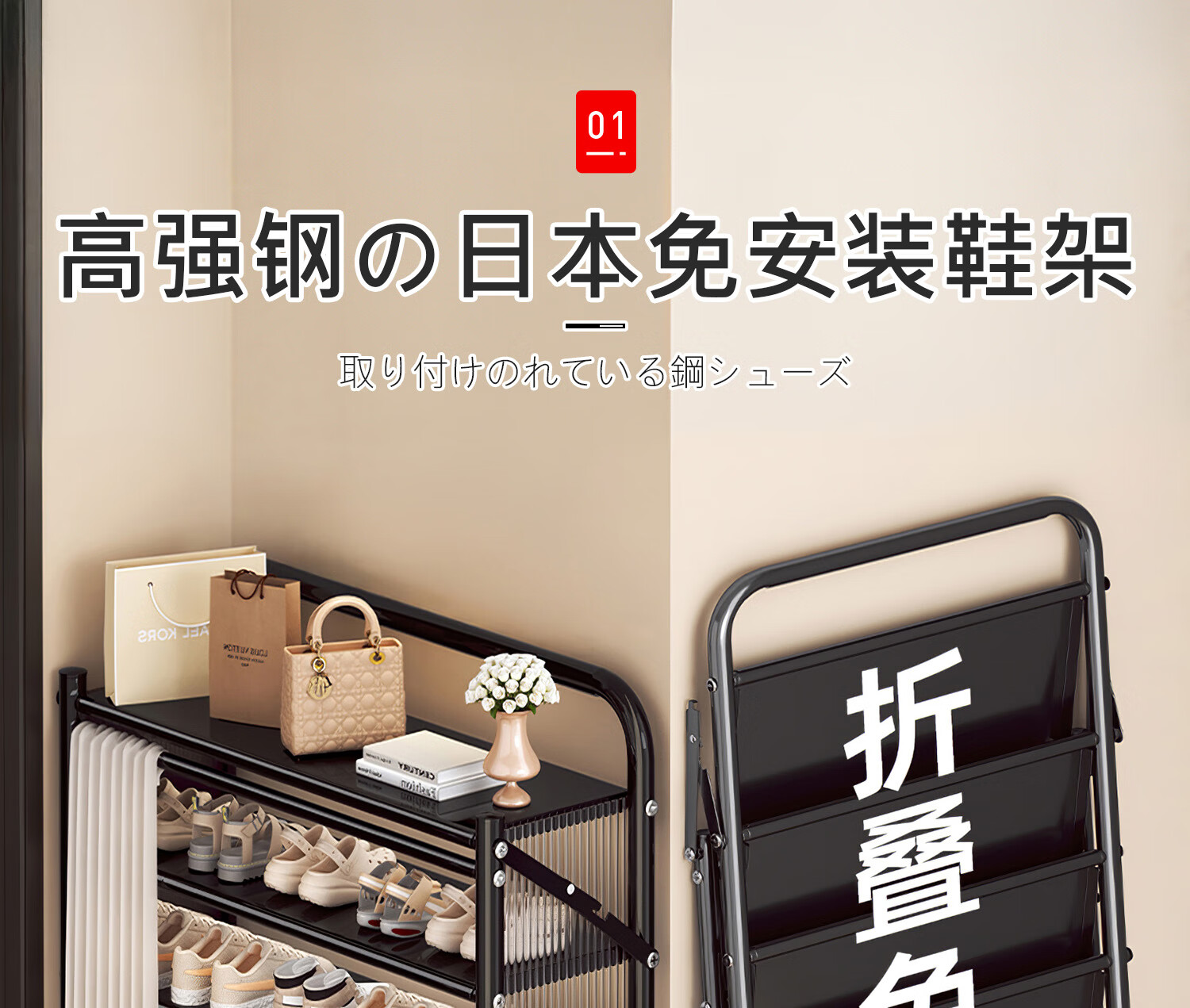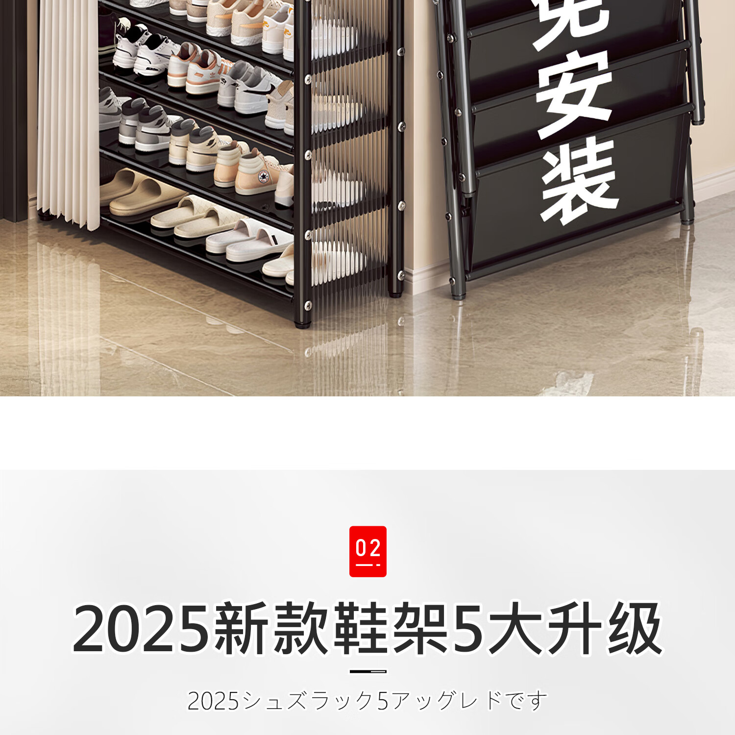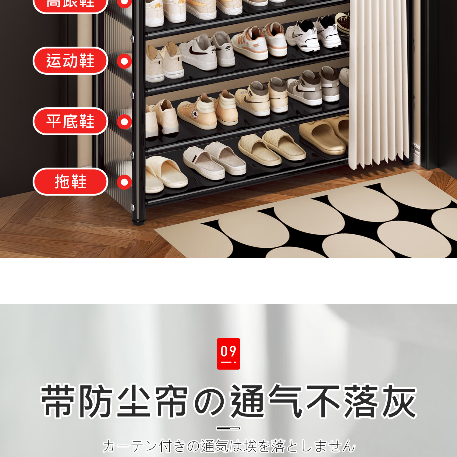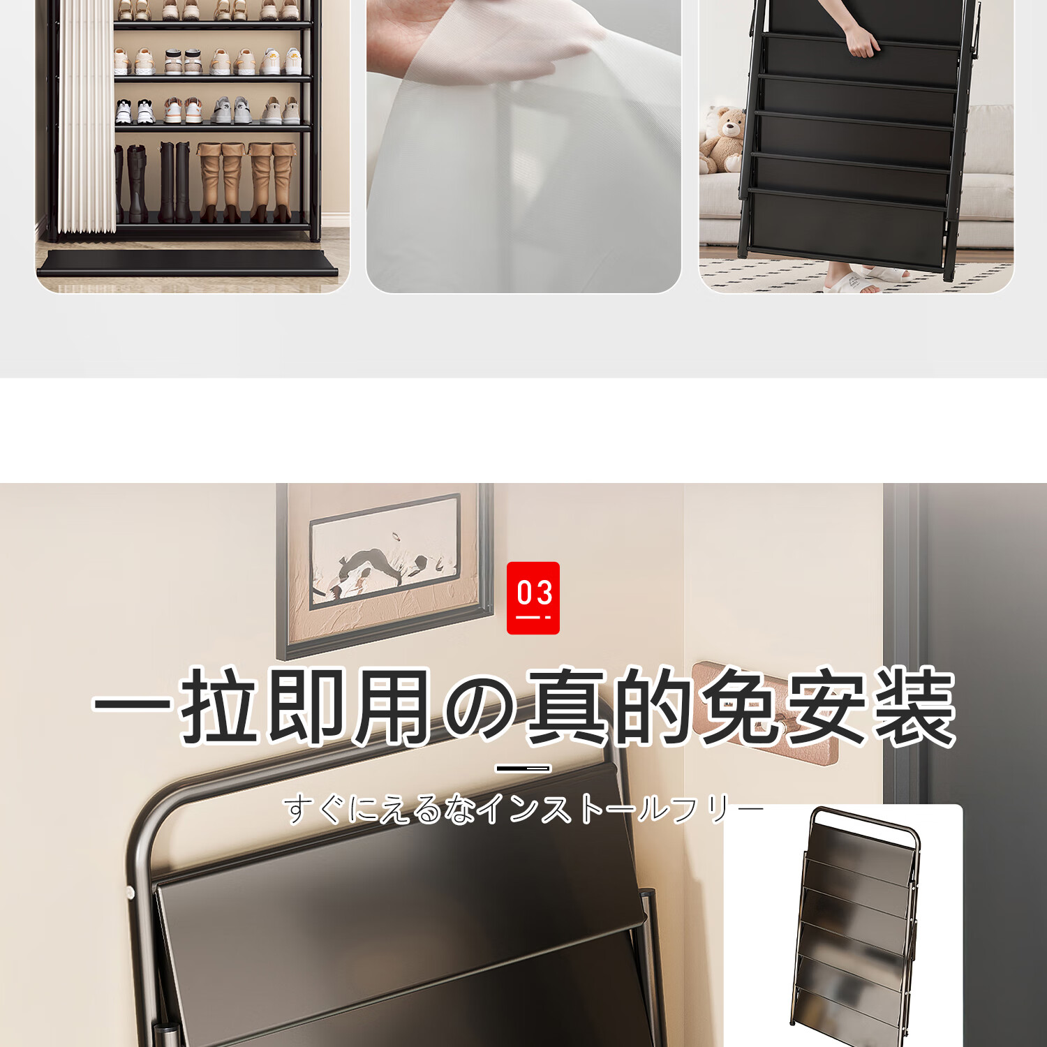 吱凡日本鞋架多层家用门口小窄入户超薄折叠鞋架子室内简易置物架鞋柜 【6层长50cm】曜石黑【顶部置物稳固不倒】