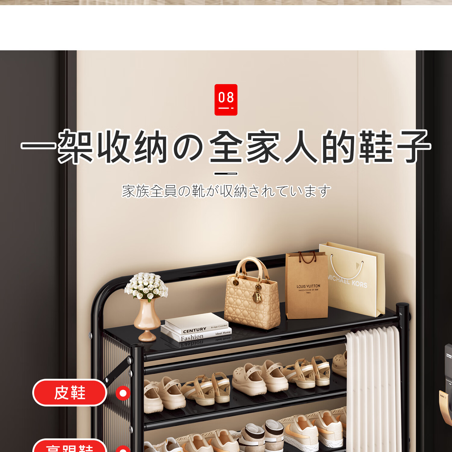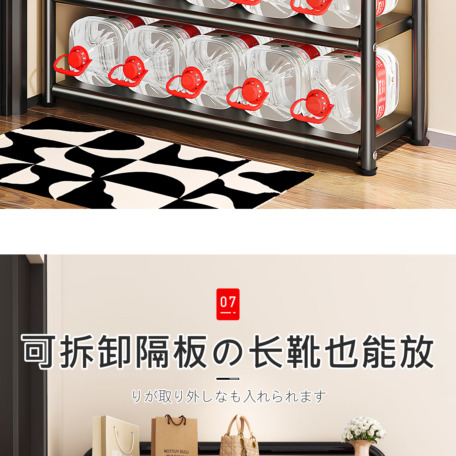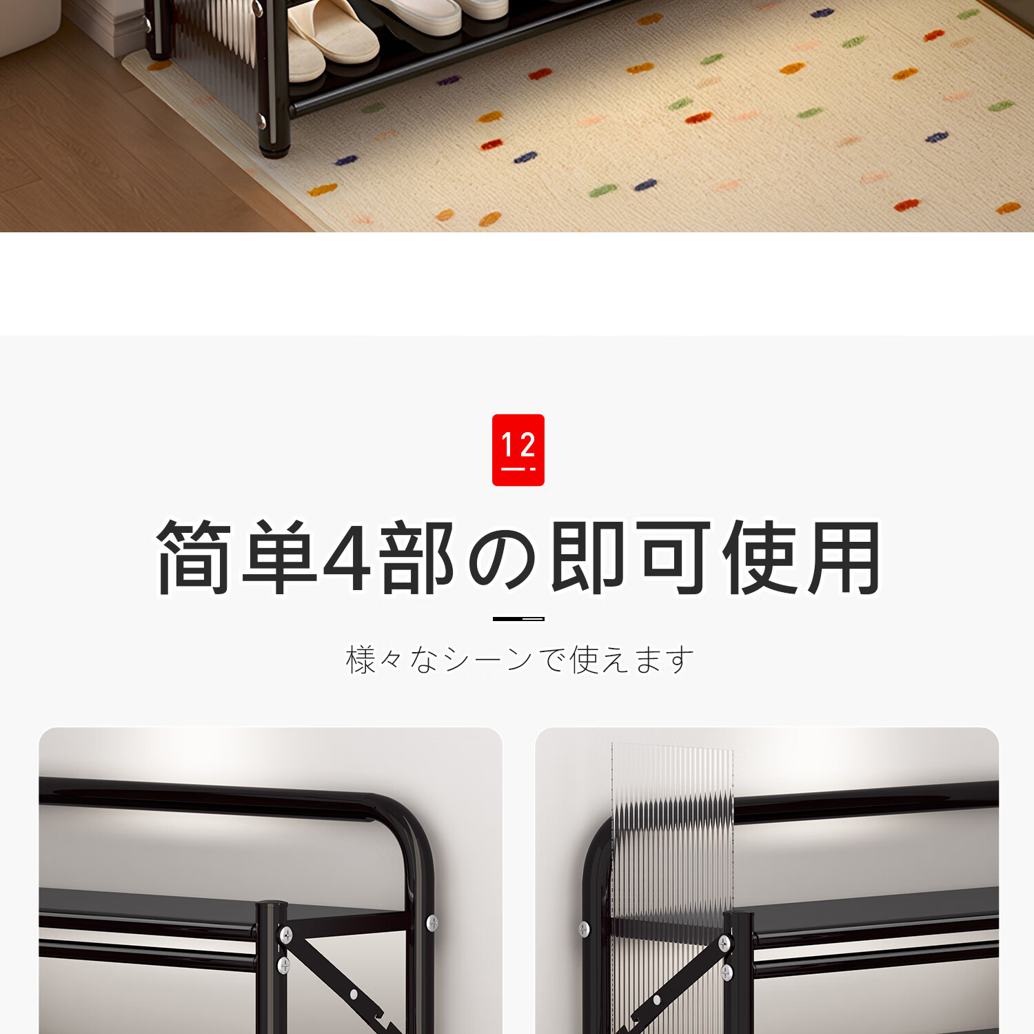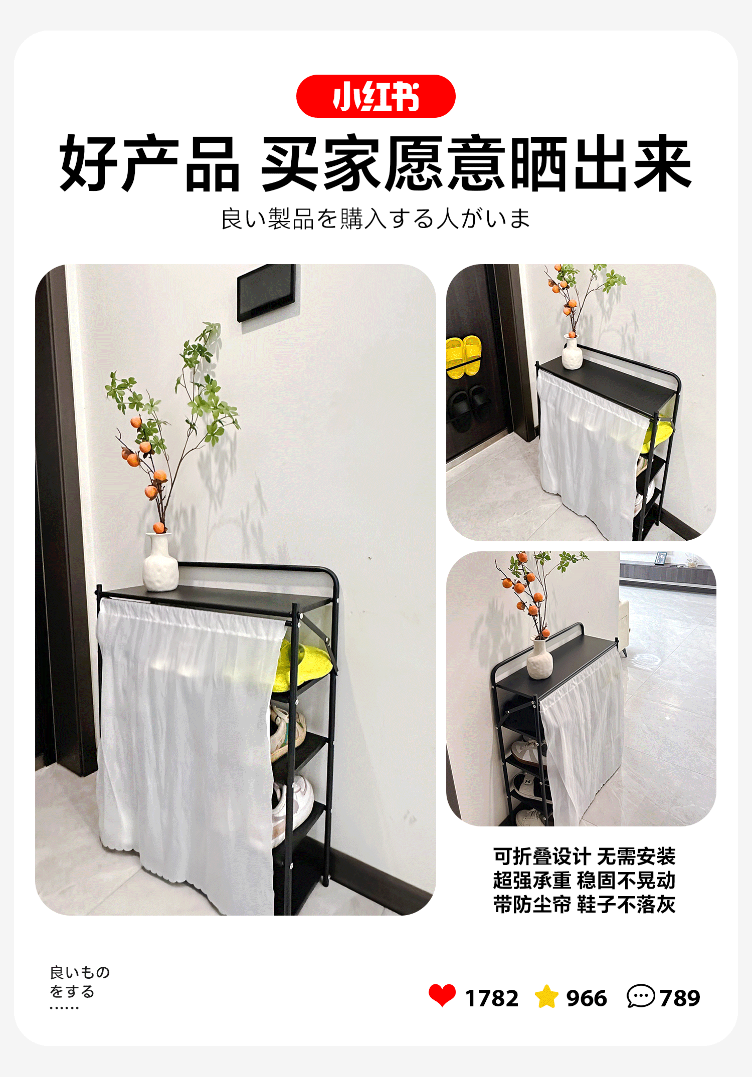 吱凡日本鞋架多层家用门口小窄入户超薄折叠鞋架子室内简易置物架鞋柜 【6层长50cm】曜石黑【顶部置物稳固不倒】