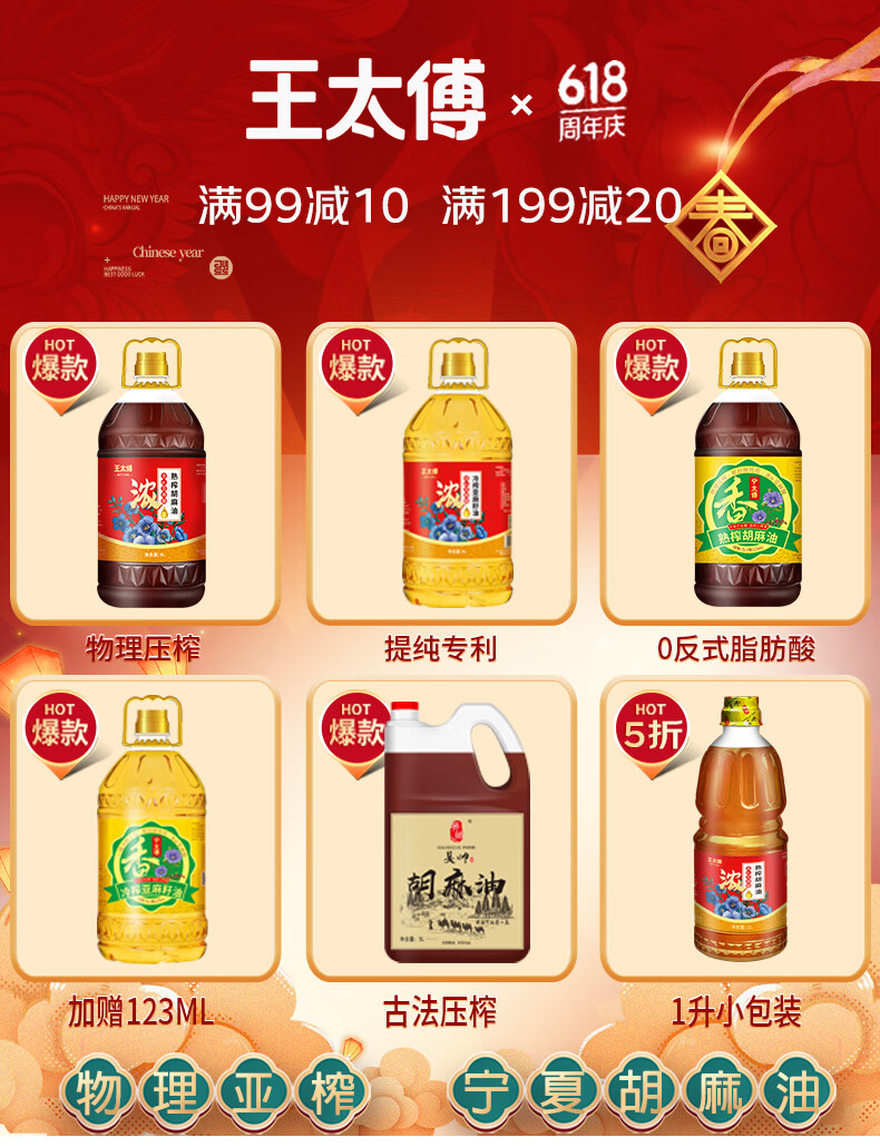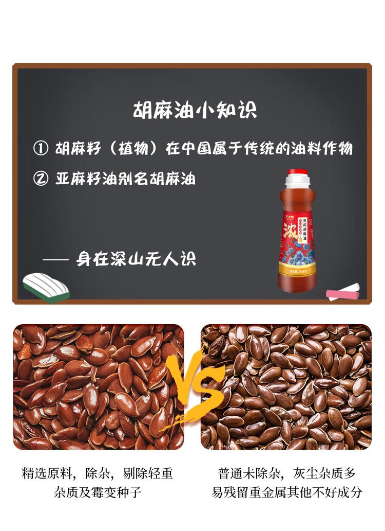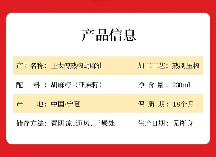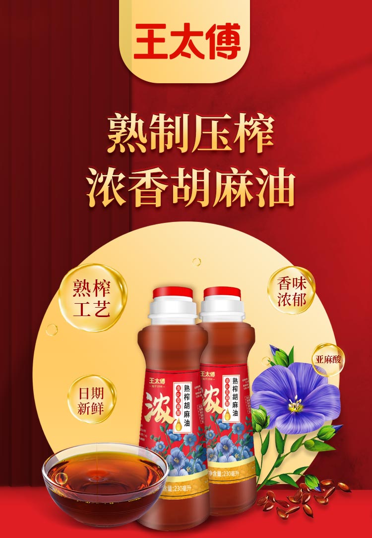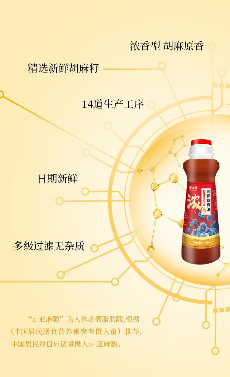 王太傅正宗宁夏胡麻油食用油熟制压榨家用熟榨亚麻籽油230ML小瓶装