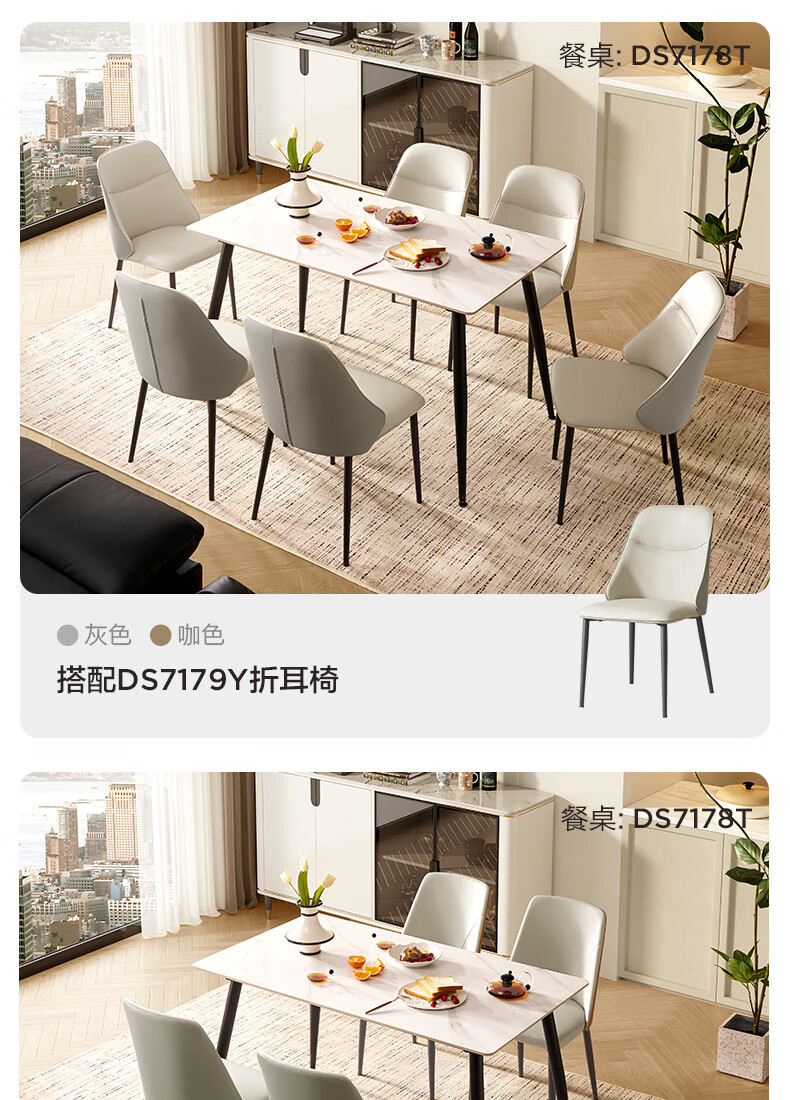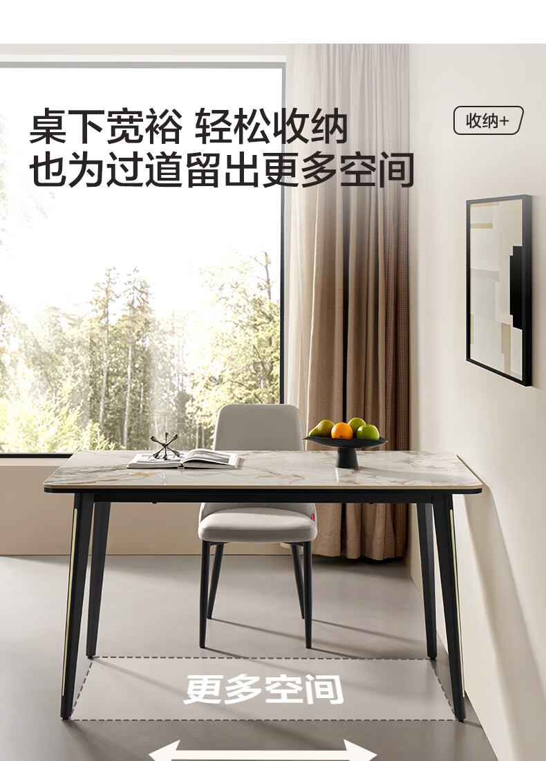全友家居 现代奶油风餐桌椅子全套客厅多功能可折叠伸缩饭桌家用4-6人